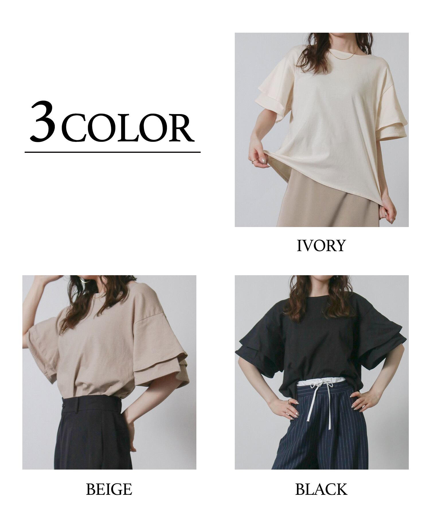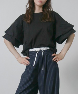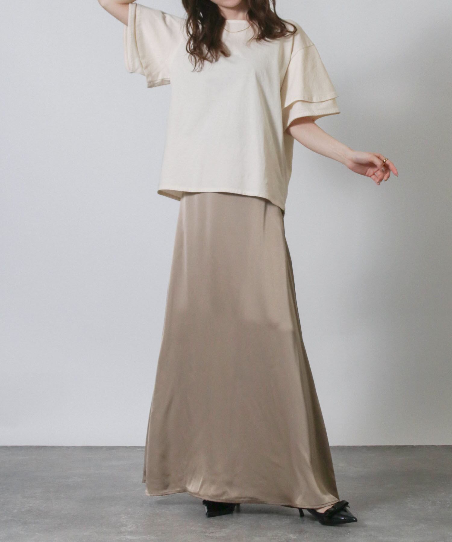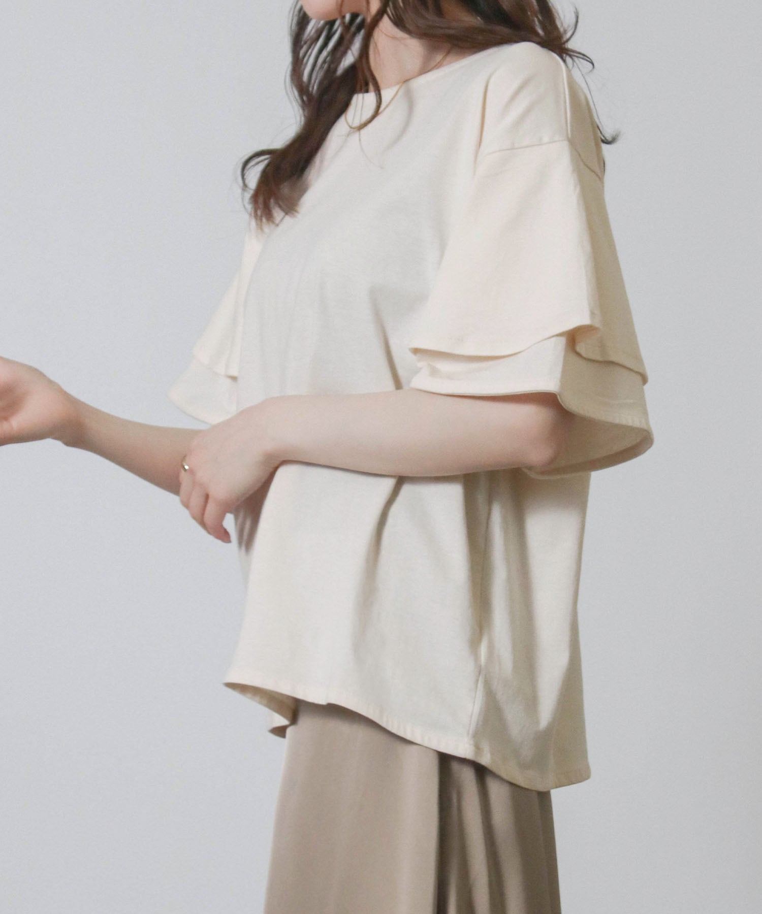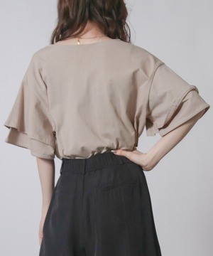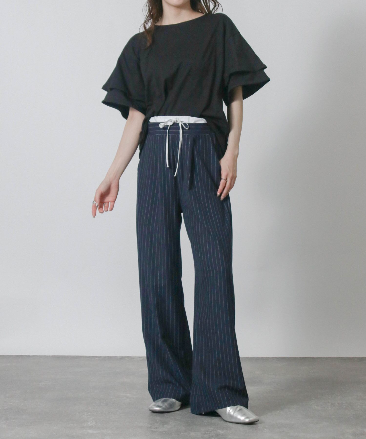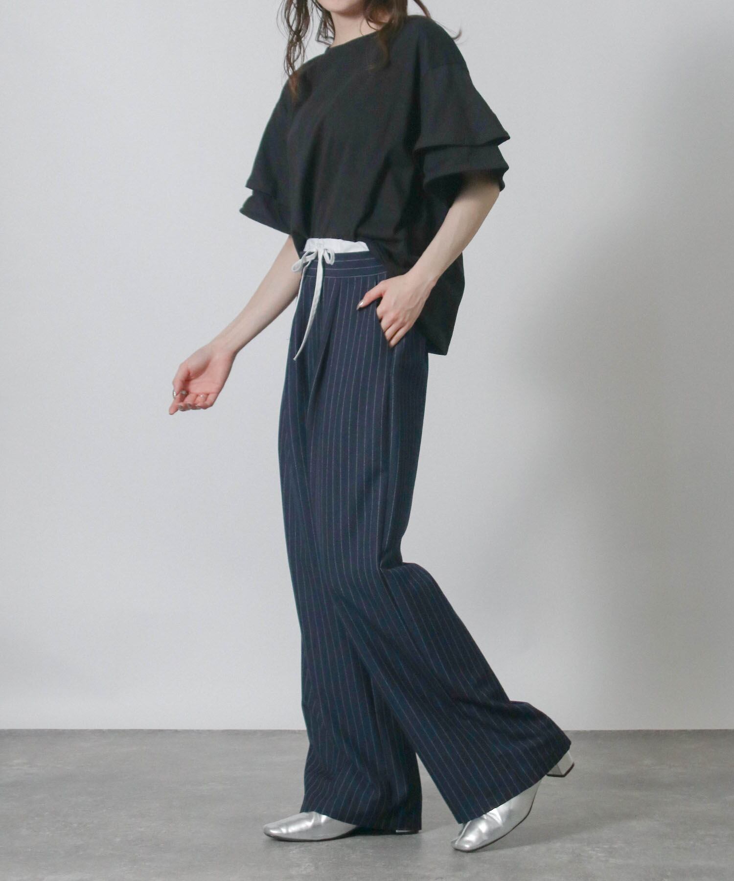 フリルスリーブが女性らしさを引き立てエレガントな印象に、二の腕をさりげなくカバーしてくれるため気になる部分を気にせず着こなせます。