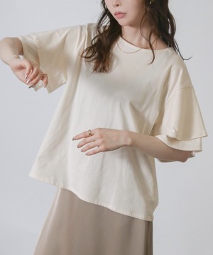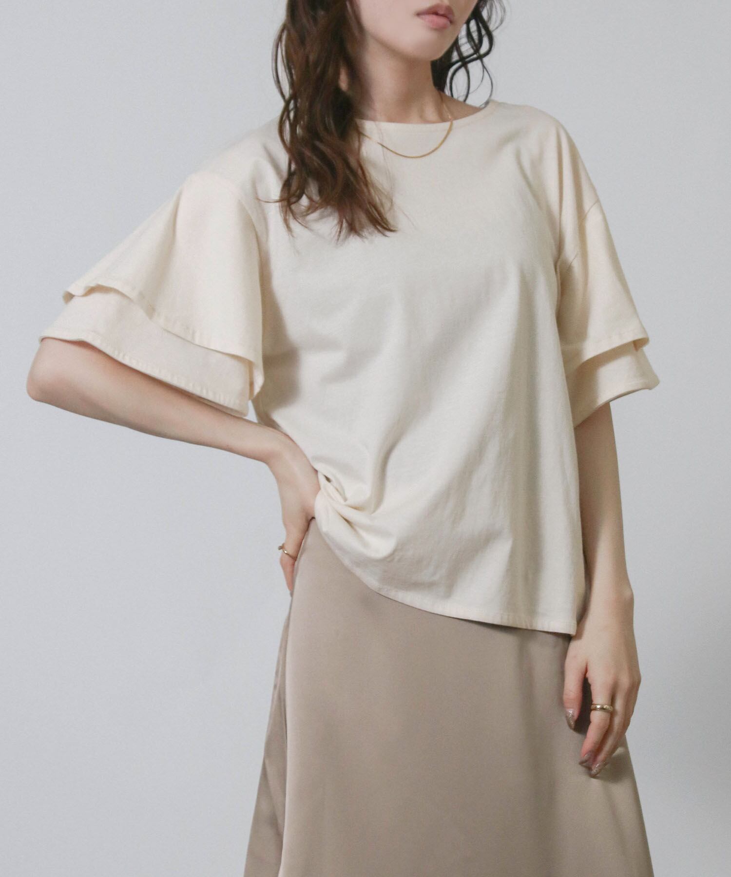レディース シンプル Tシャツ tシャツ 上品 大人可愛い フリル フリルスリーブ コットン100% 吸収性 速乾性 ストレスフリー 10代20代30代40代 ふんわり 無地