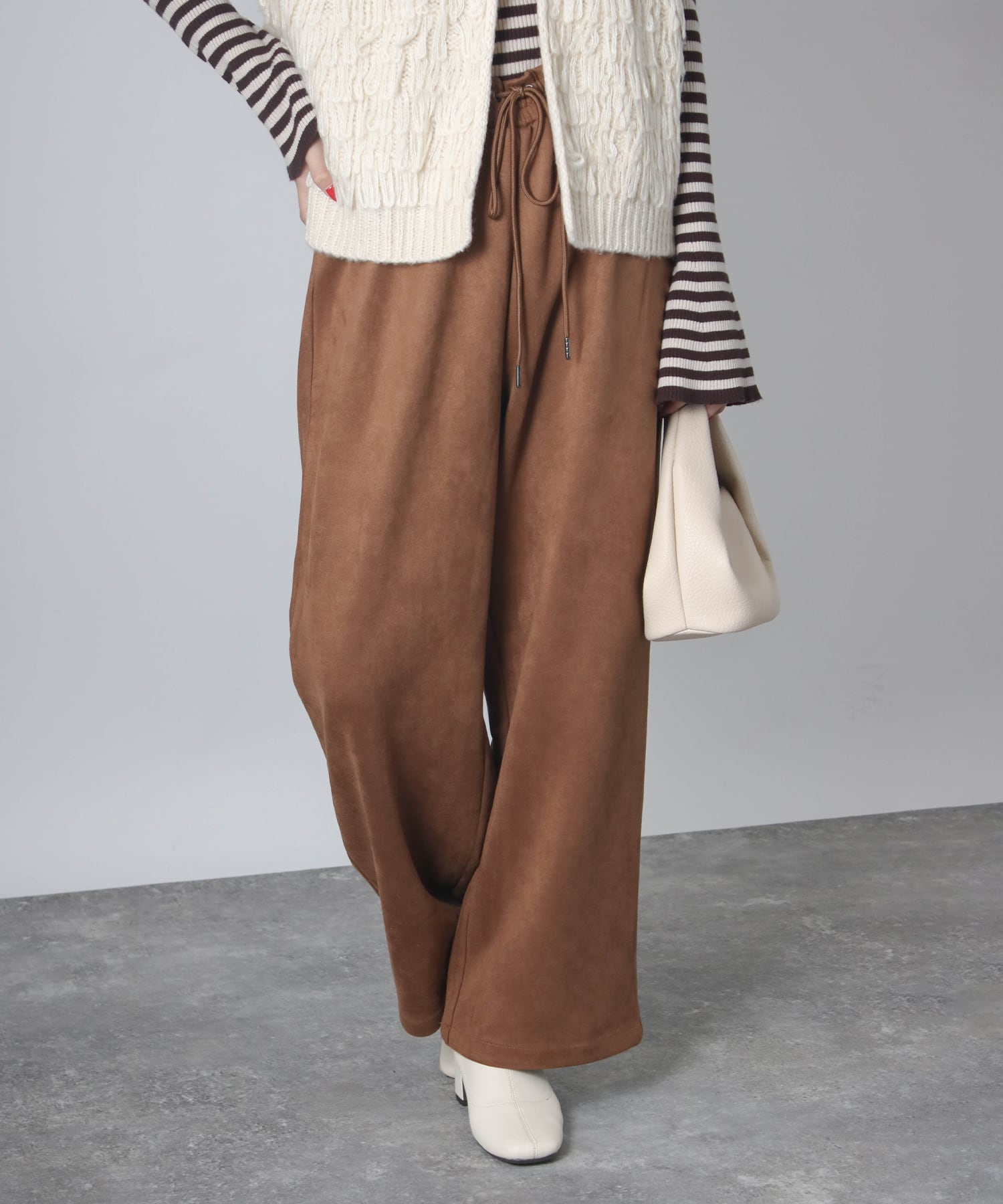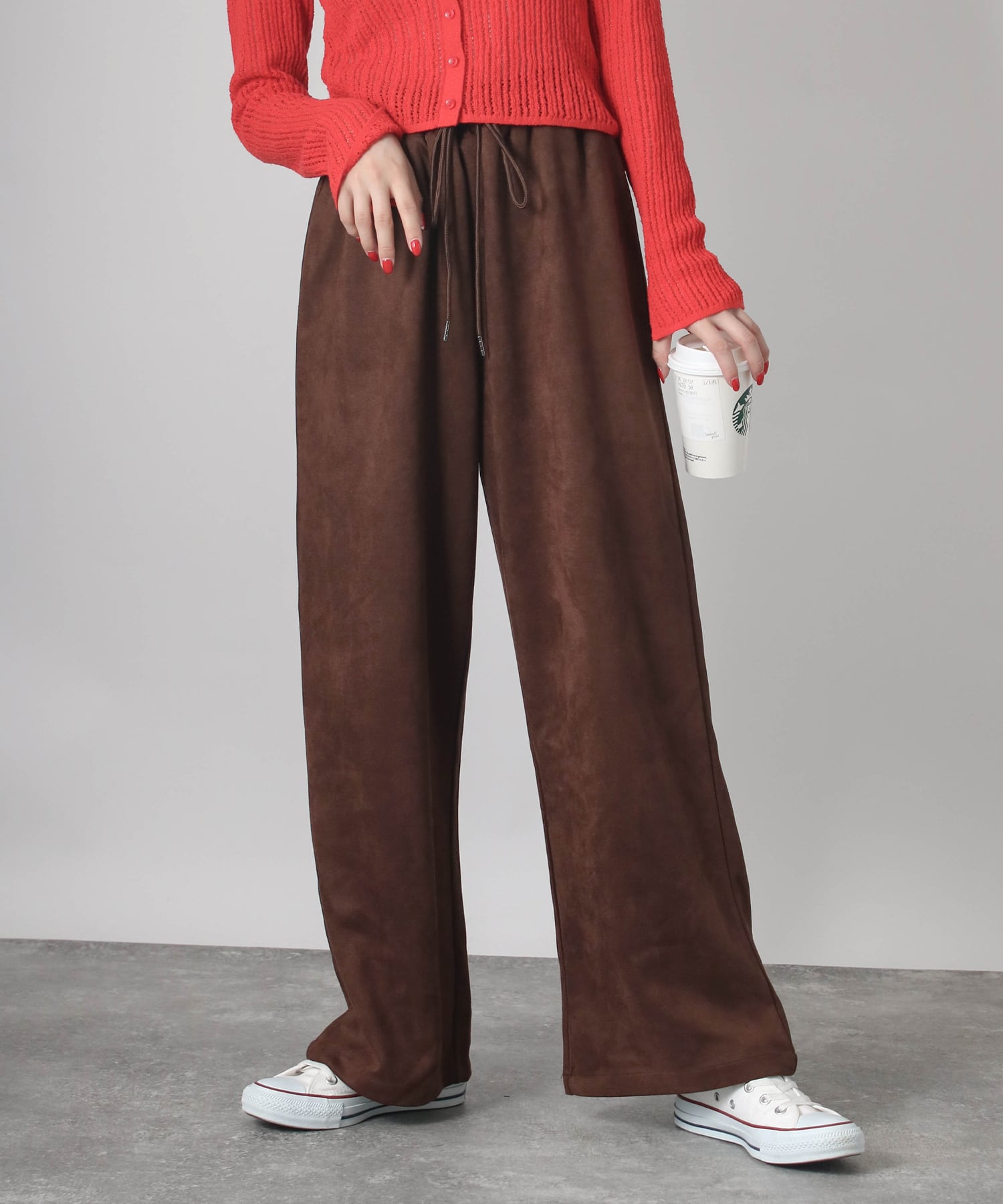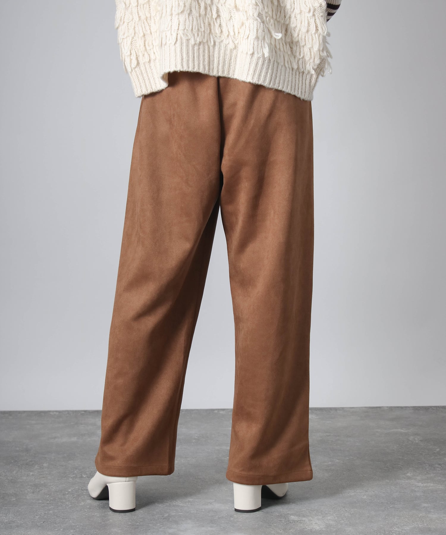 レディース 秋冬ボトム パンツ スエードパンツ イージーパンツ ストレートパンツ ウエストゴム リラクシー 着回し シンプル 高級感 大人カジュアル 上品 楽