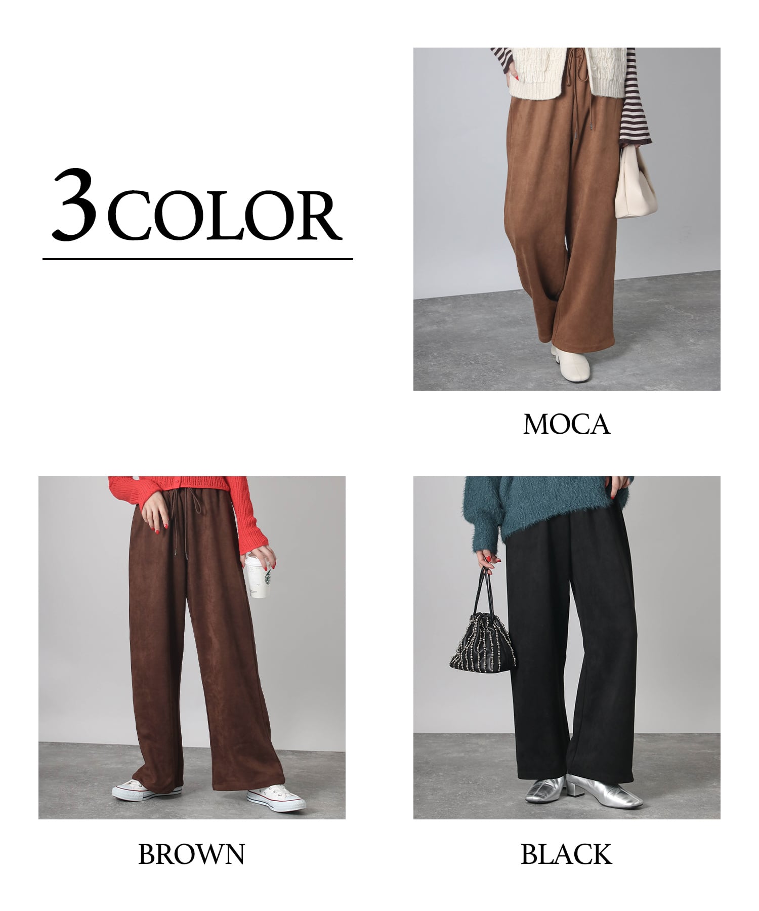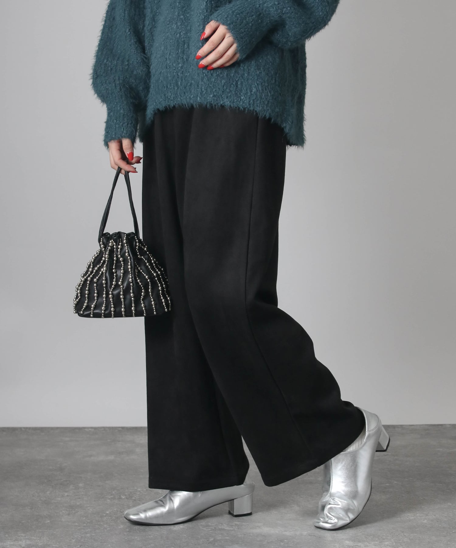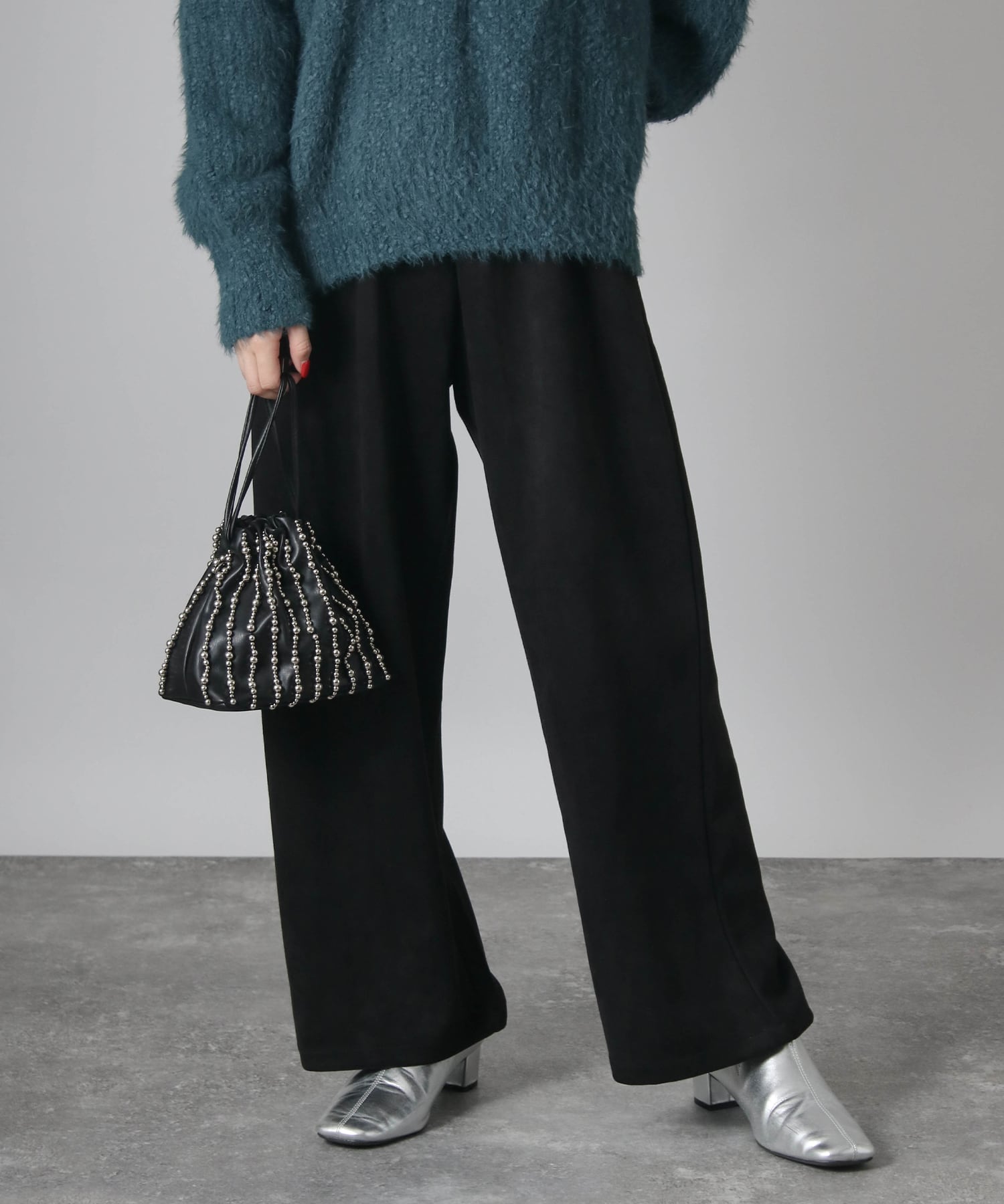レディース 秋冬ボトム パンツ スエードパンツ イージーパンツ ストレートパンツ ウエストゴム リラクシー 着回し シンプル 高級感 大人カジュアル 上品 楽