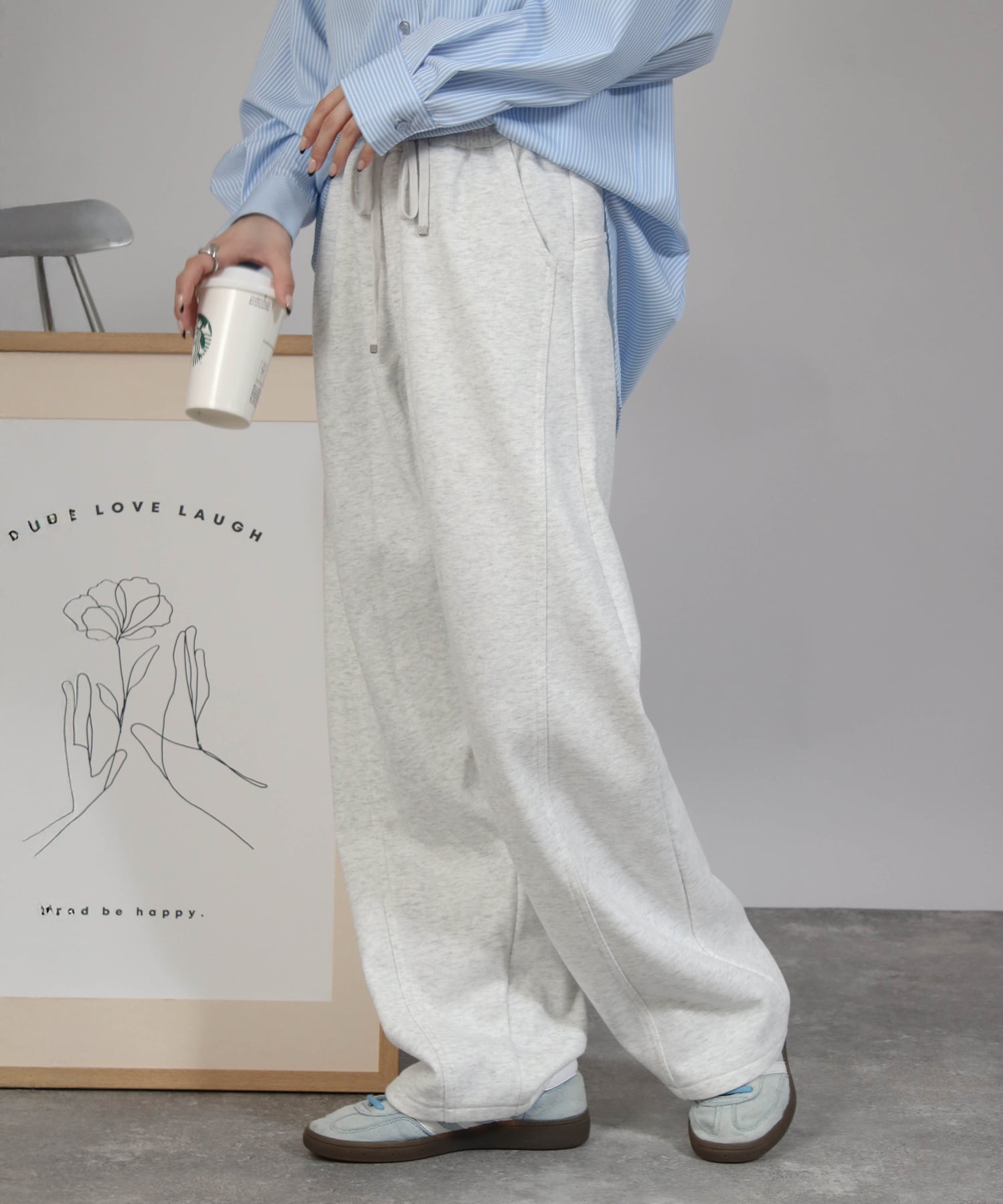 部屋着としても外出用としても使え、オンオフ問わず着回せる万能パンツです。