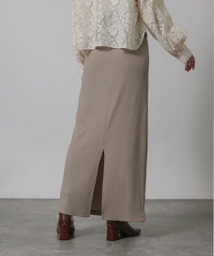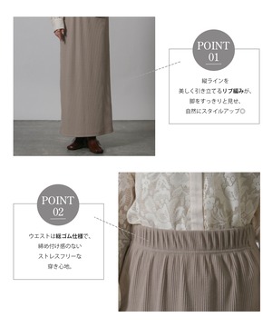 縦ラインを美しく引き立てるリブ編みが、自然とスタイルアップを叶えるテレコナロースカート。