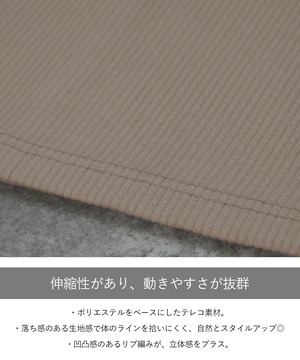 ポリエステルをベースにしたテレコ素材は、伸縮性があり動きやすさも抜群。