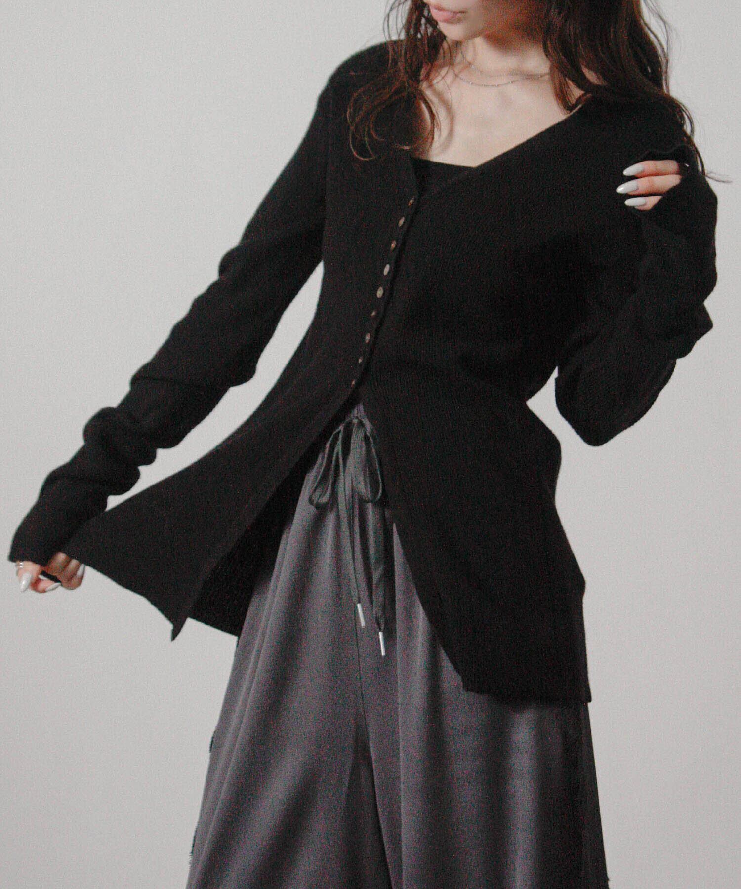 前を開けても閉じてもバランスが取りやすく、着こなしの幅が広がるデザインです。