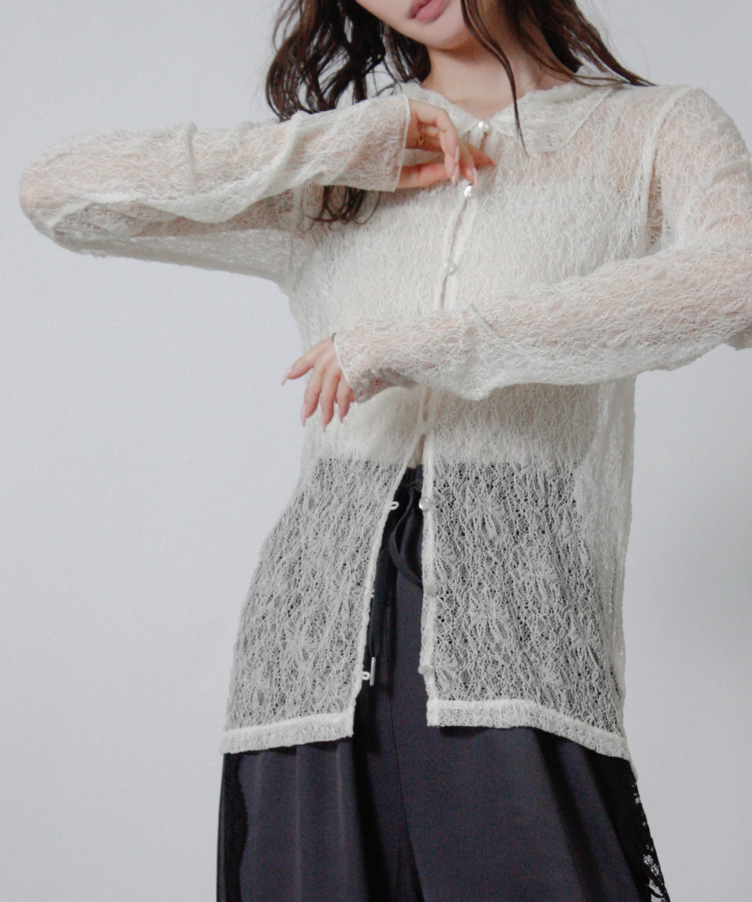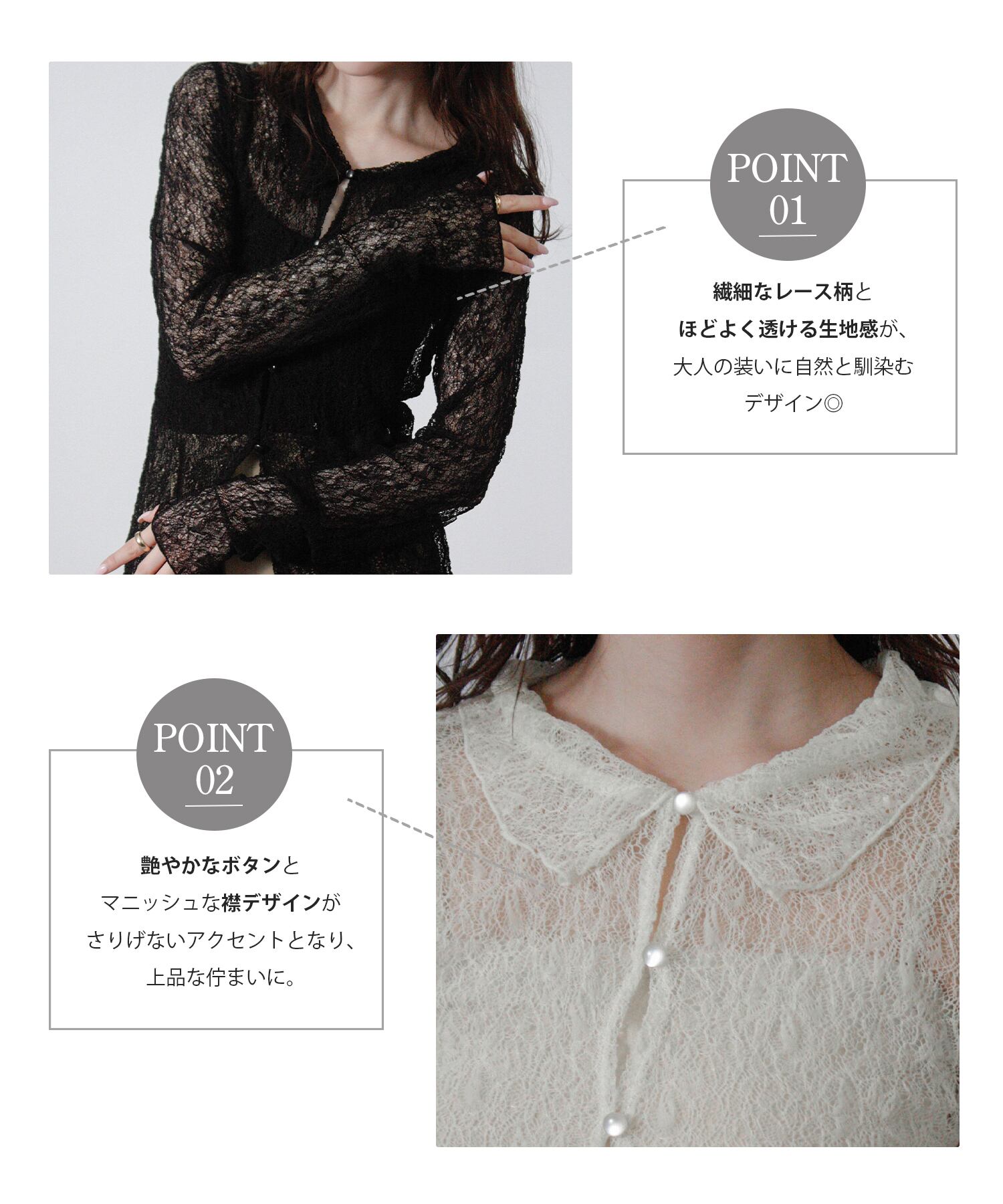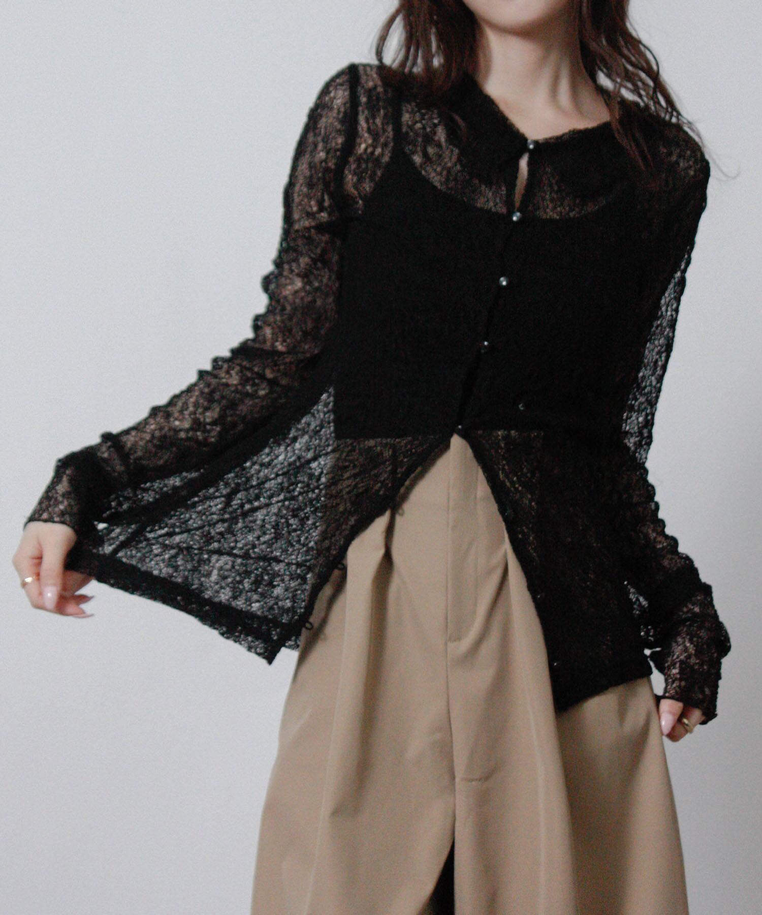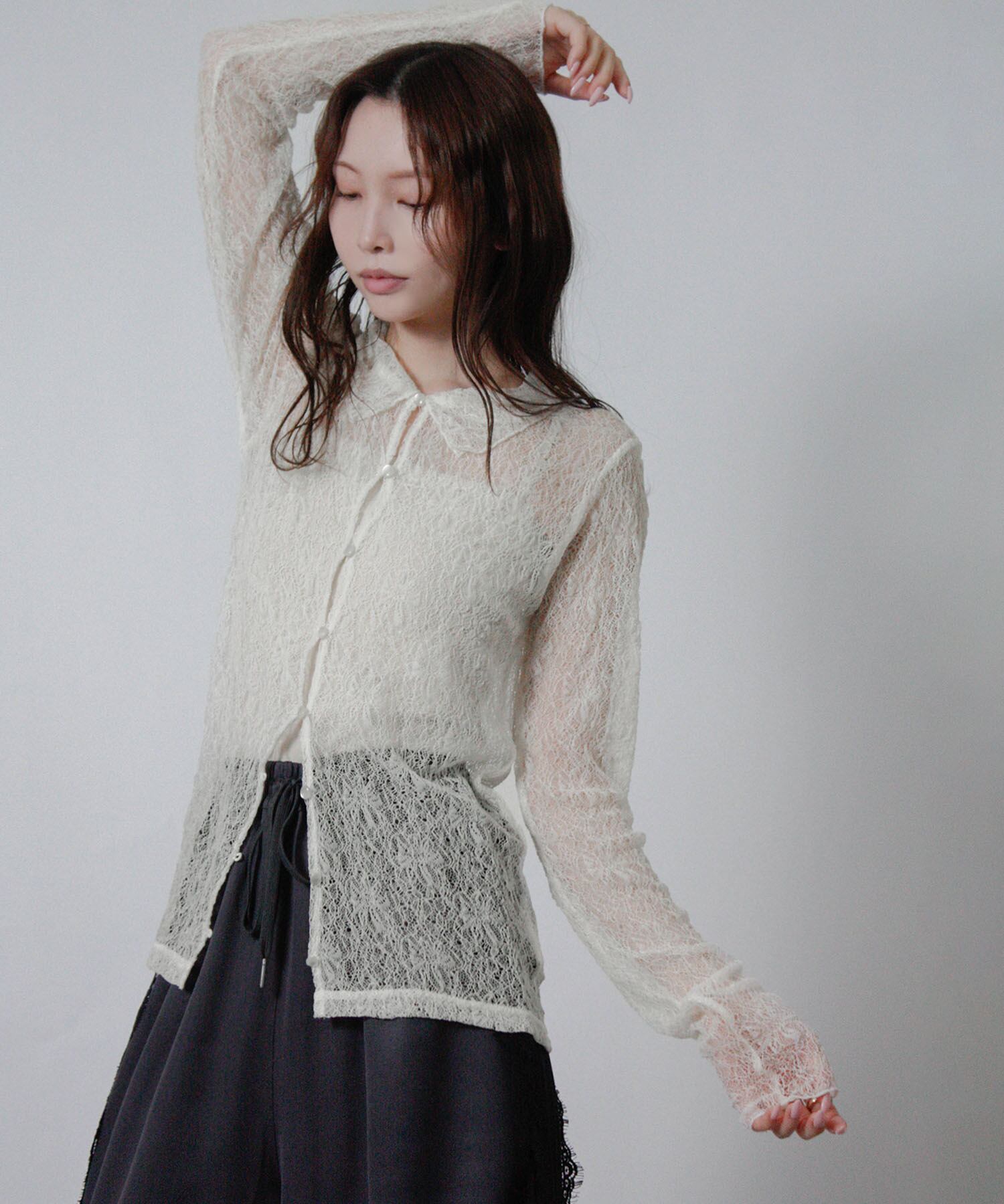 繊細レースで、軽やかに整う大人のシアーシャツ。