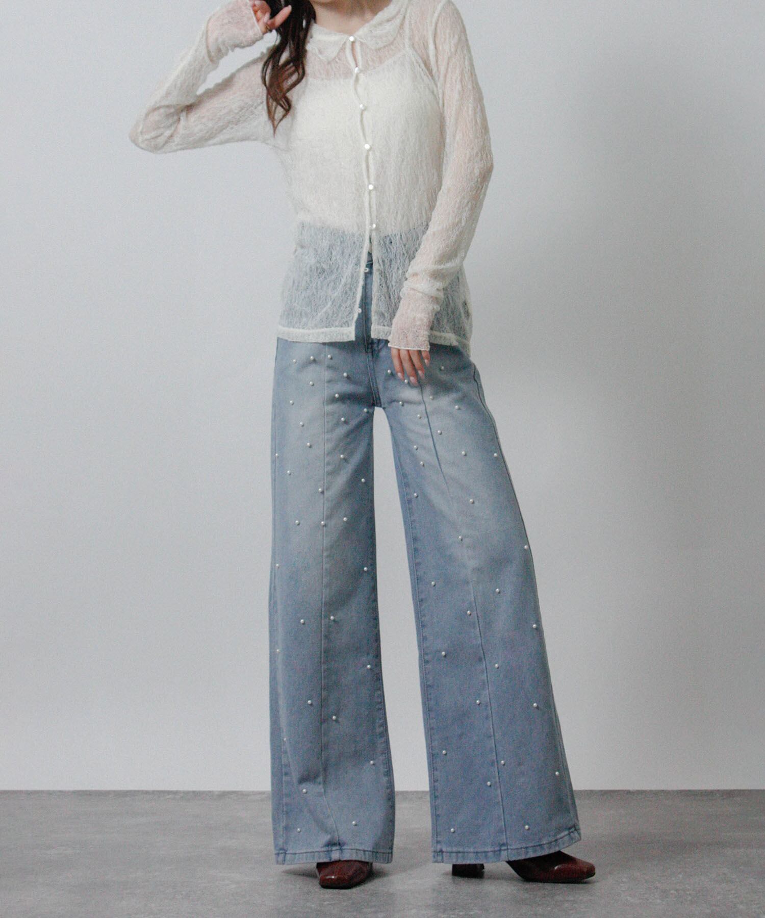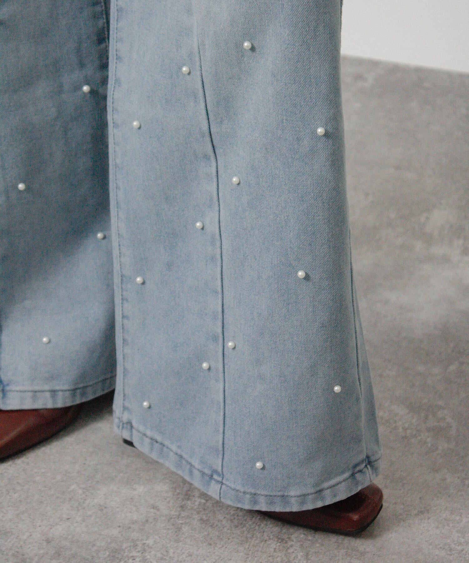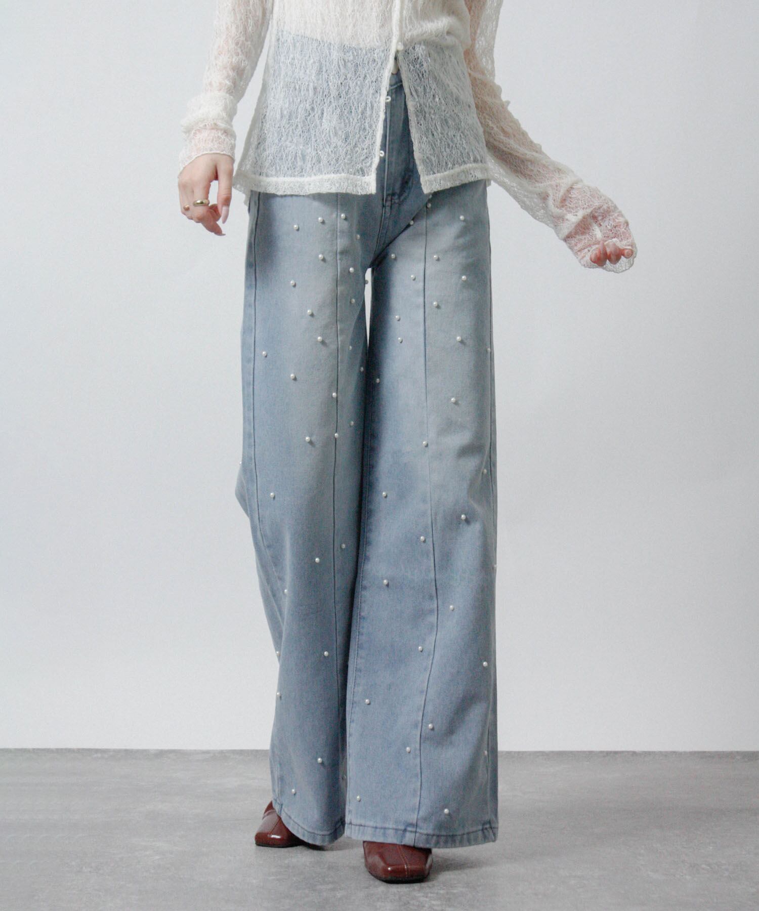 「前後のパールでさりげなく華やぐ、大人のデニム。」