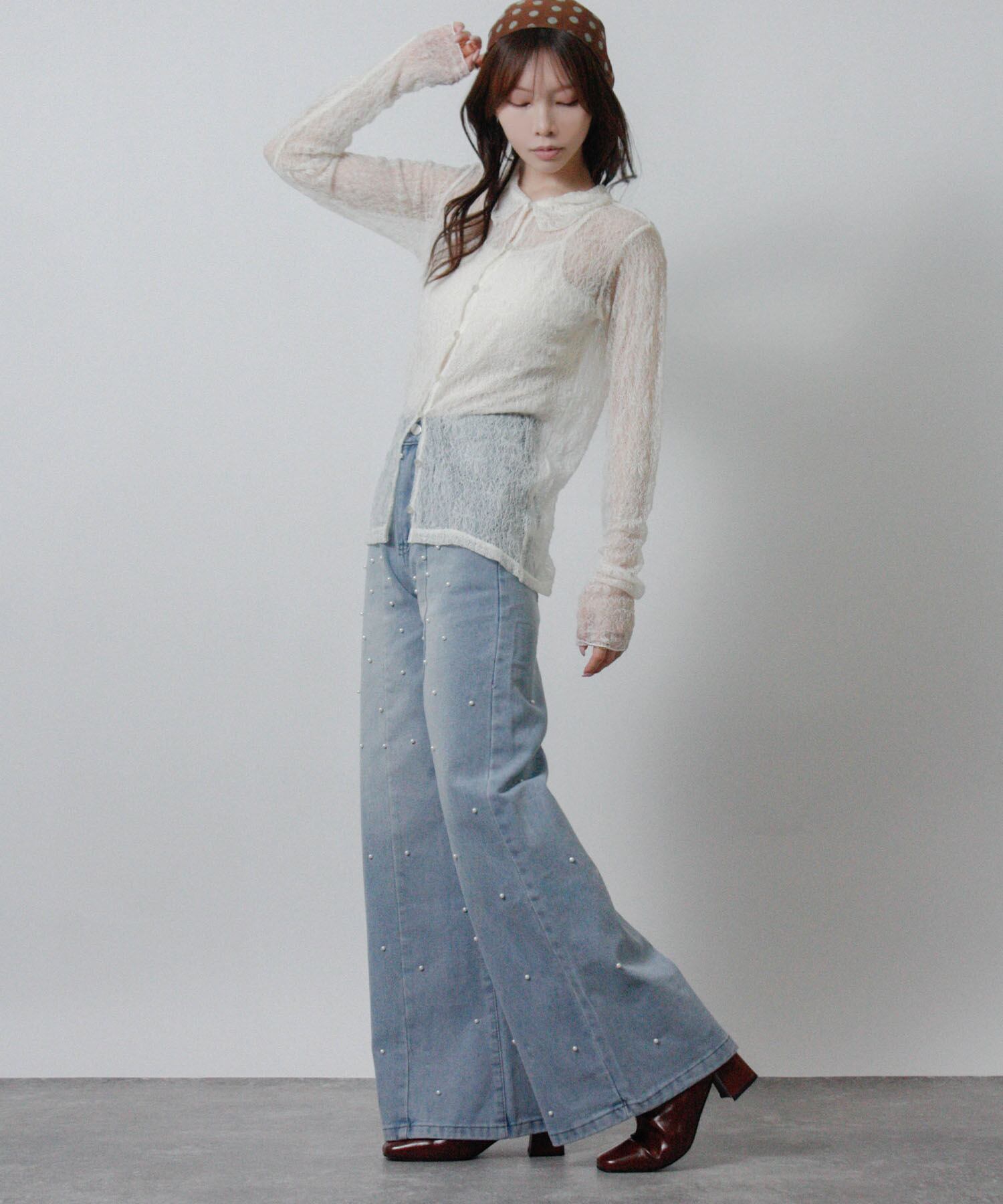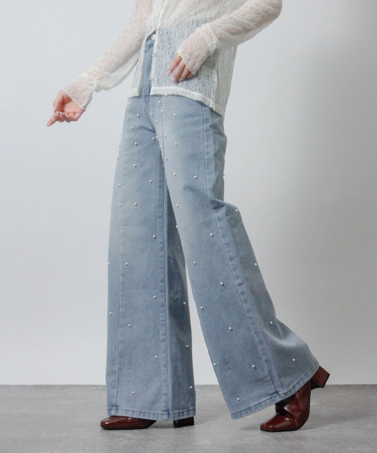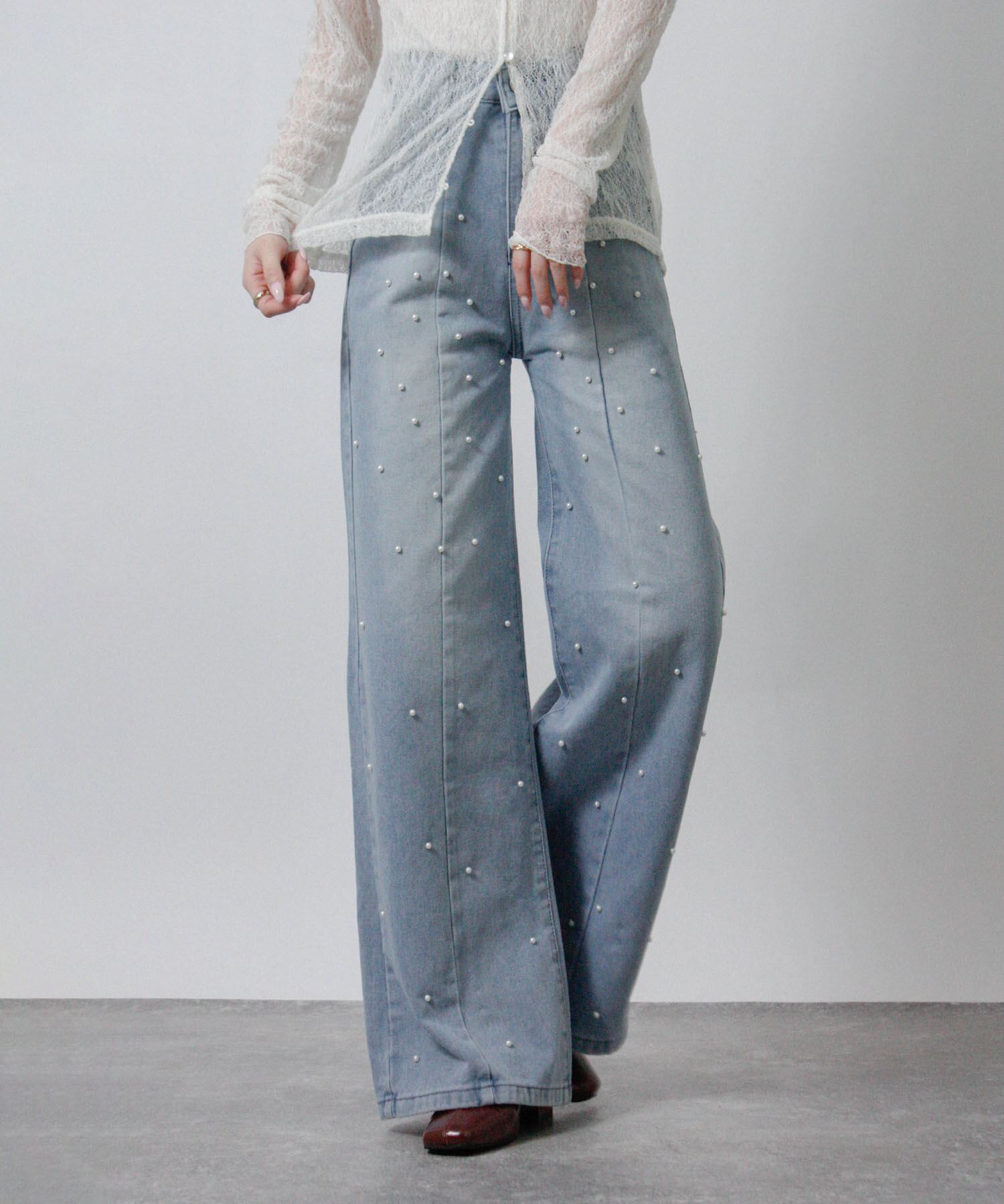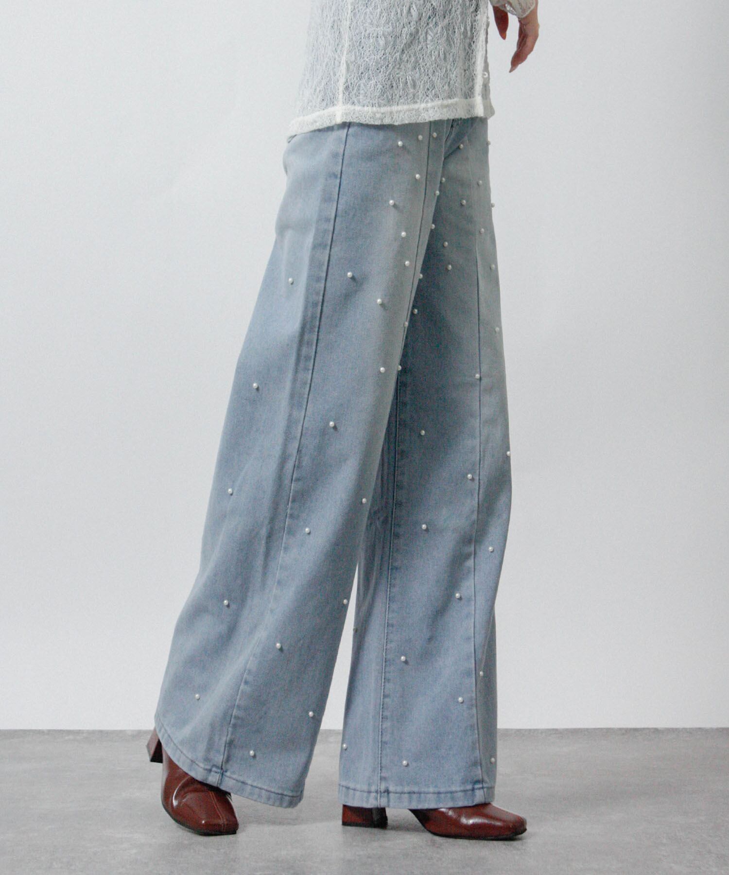 「前後のパールでさりげなく華やぐ、大人のデニム。」