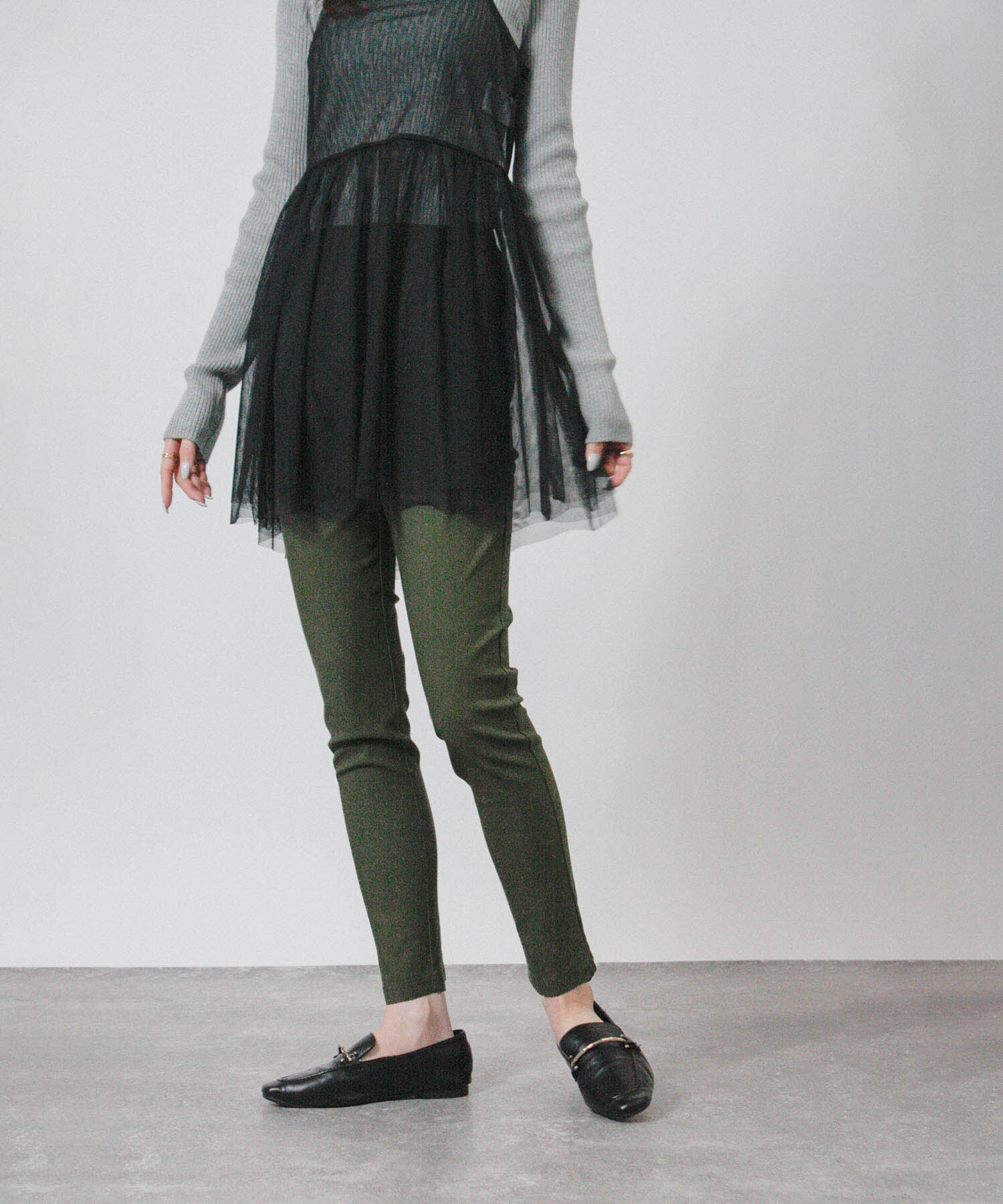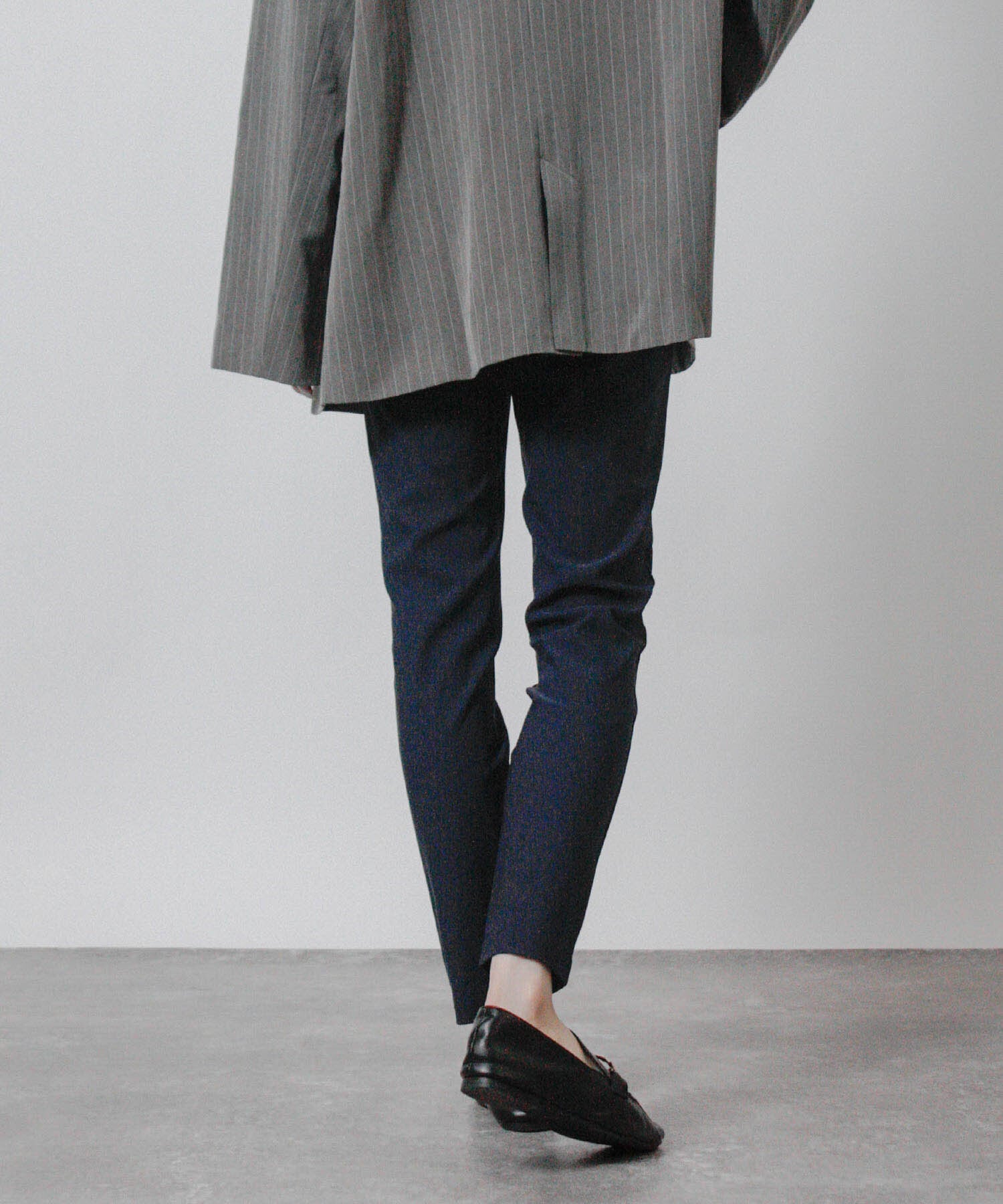 ・気になる太ももは余裕を持たせ、足首見せでバランスのよいシルエットを実現