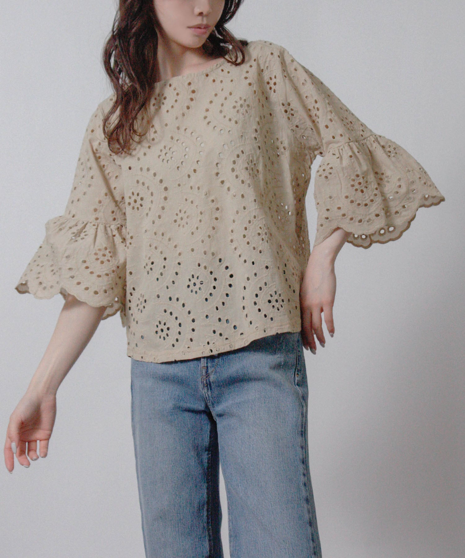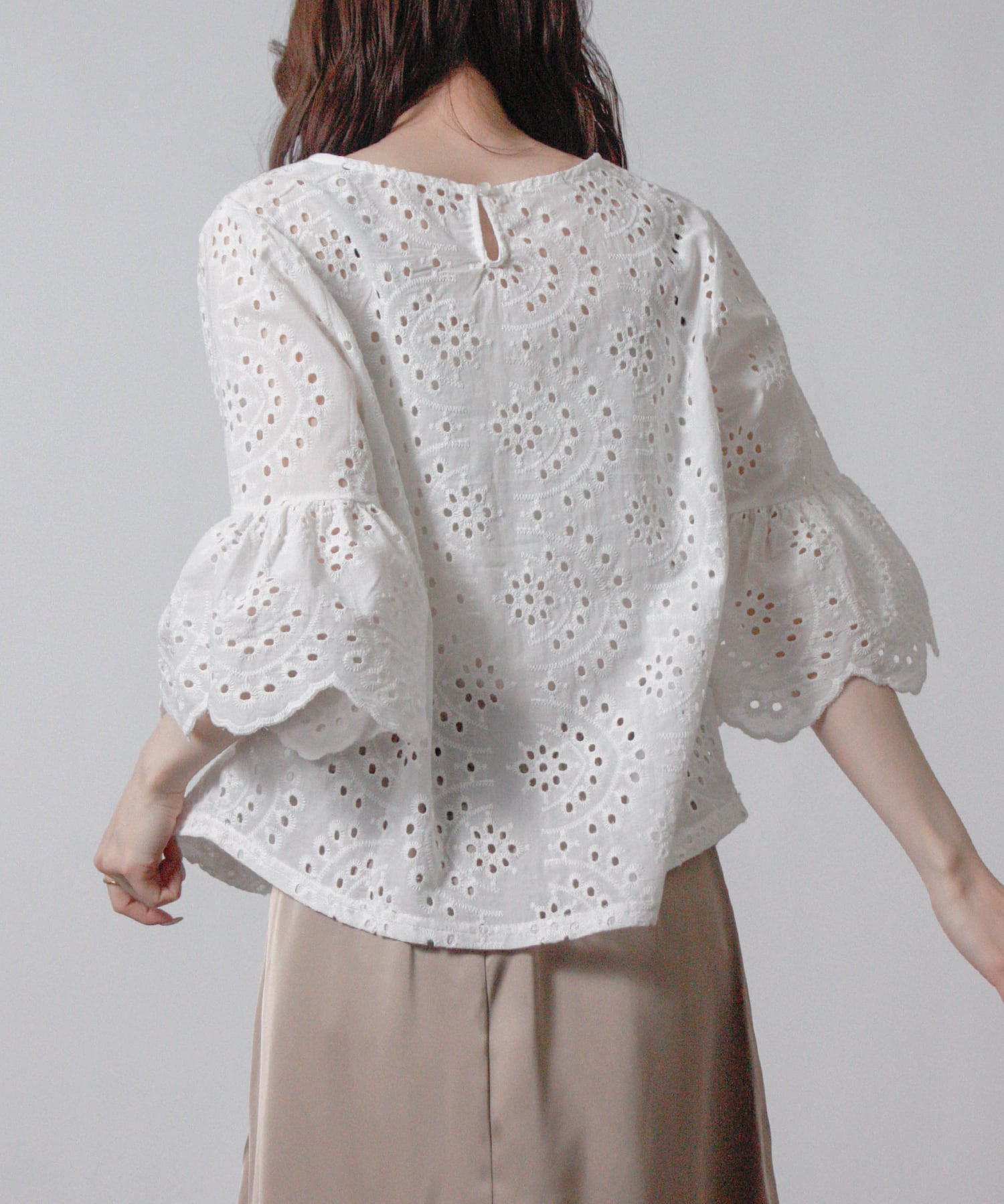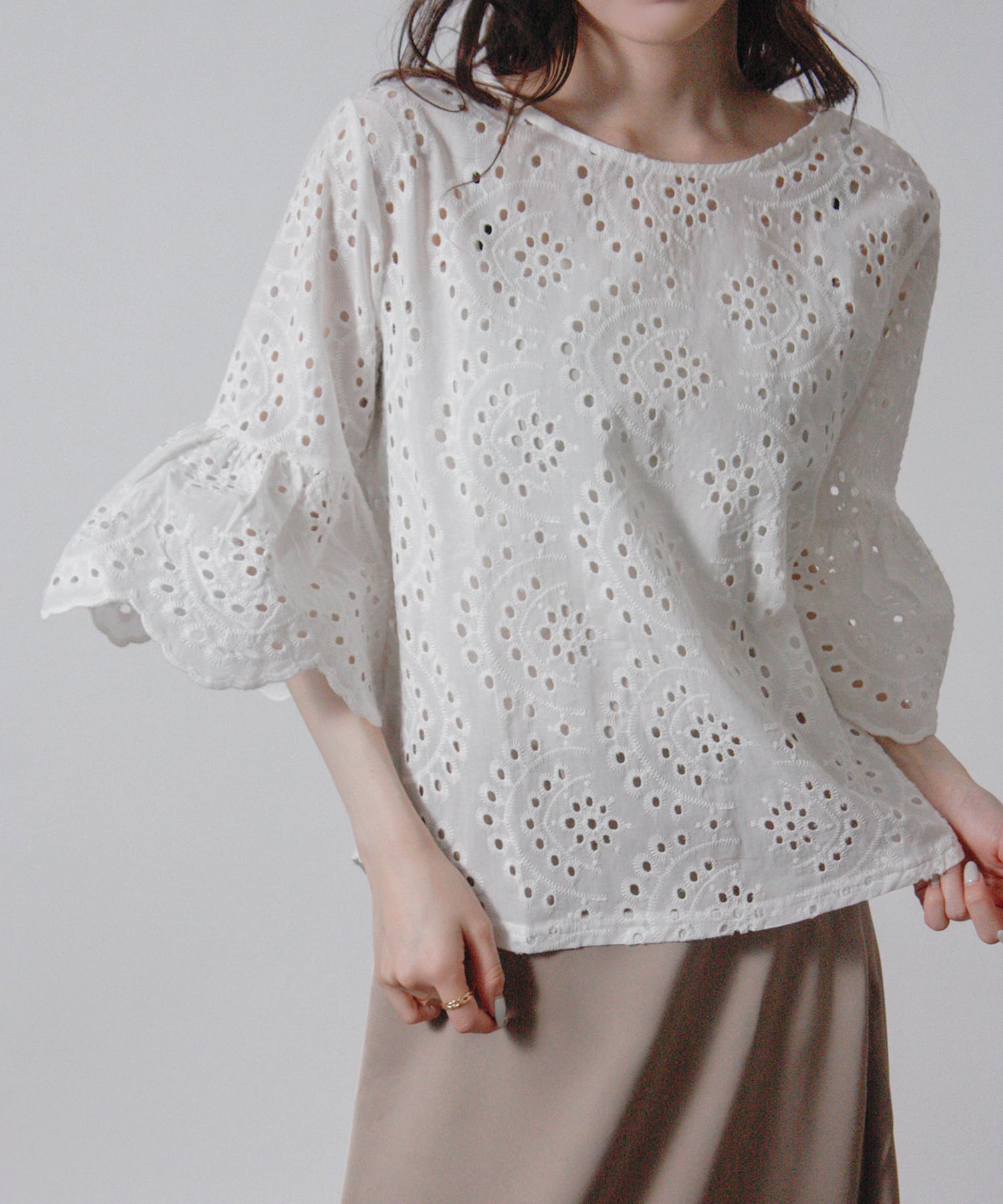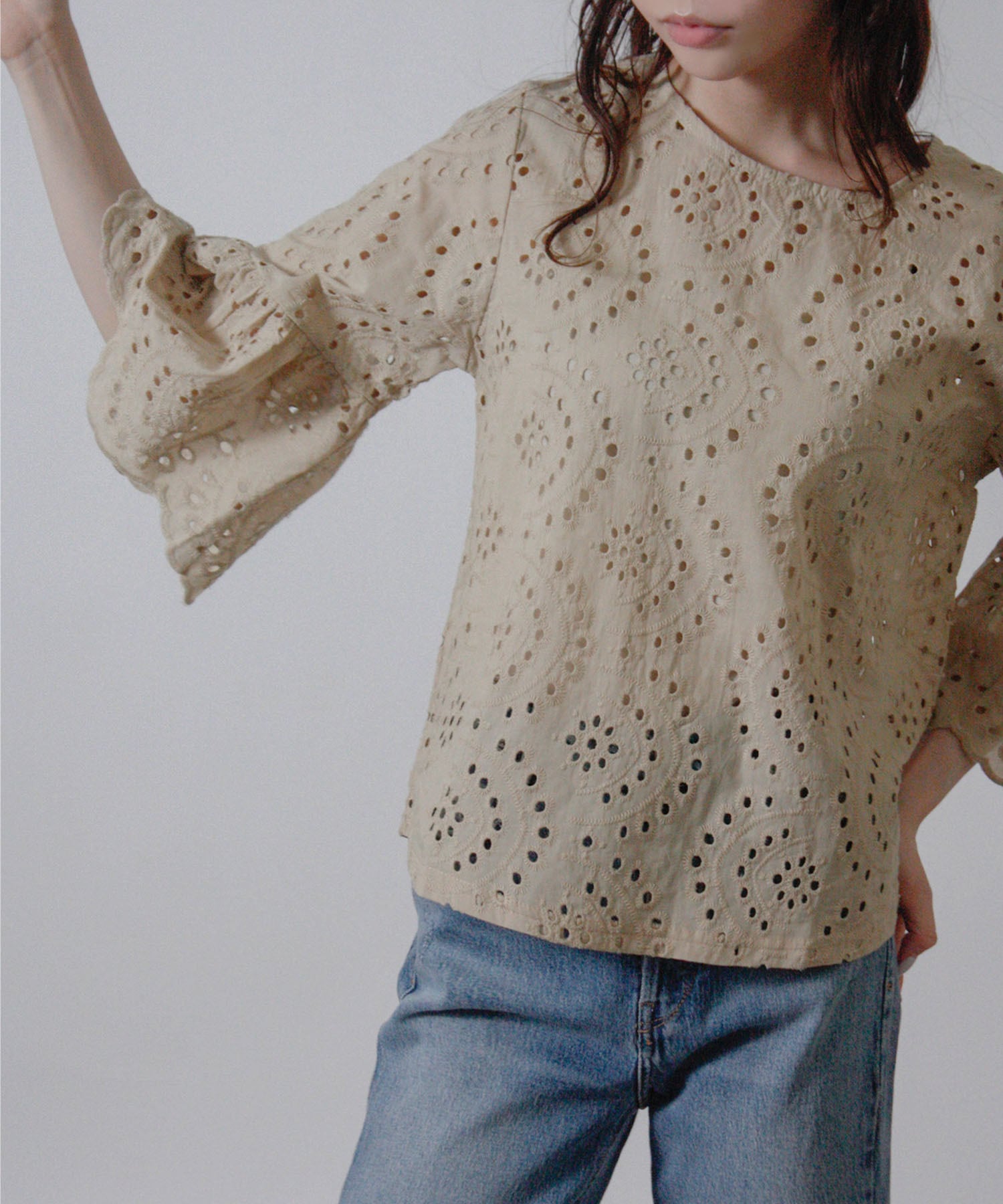 独特なエレガントさを醸し出し、繊細で独特な風合いのブラウス。