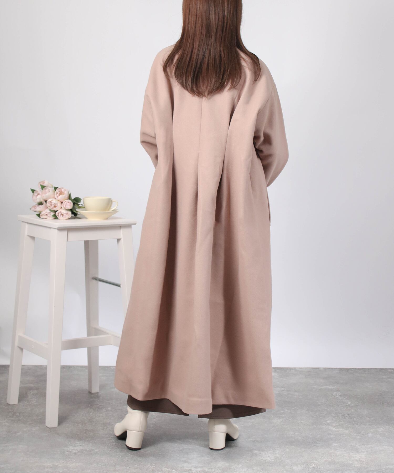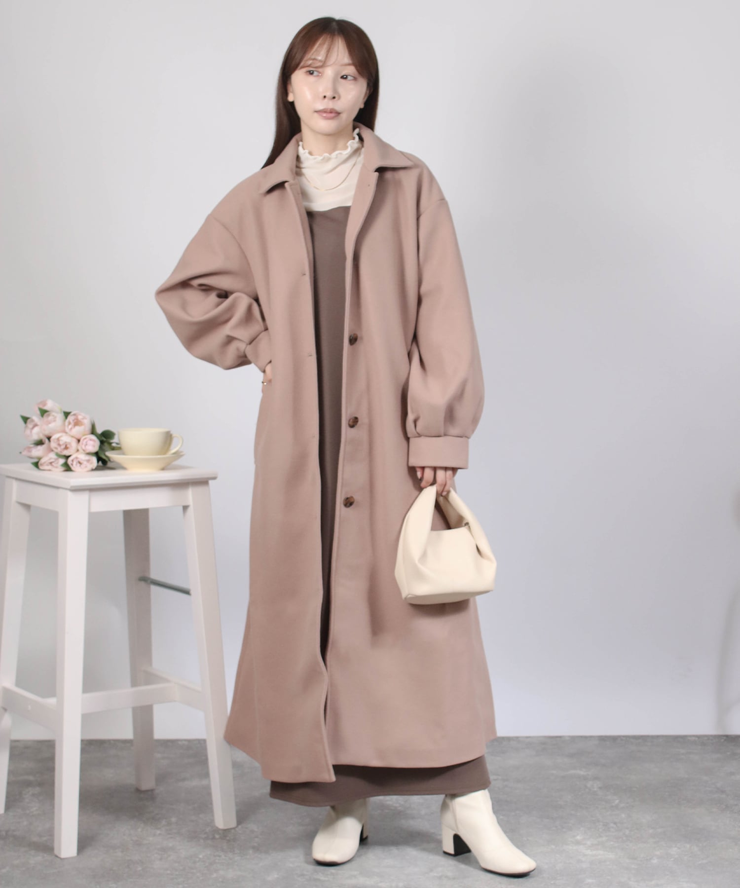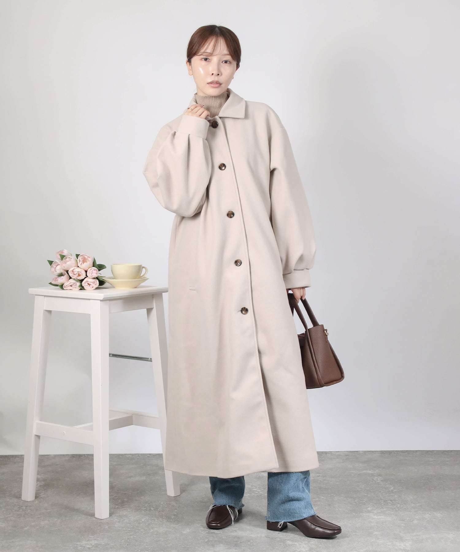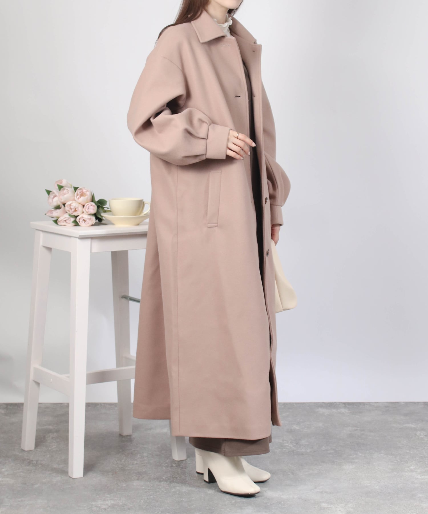 首元が暖かいステンカラーの大きめ襟がマニッシュな印象