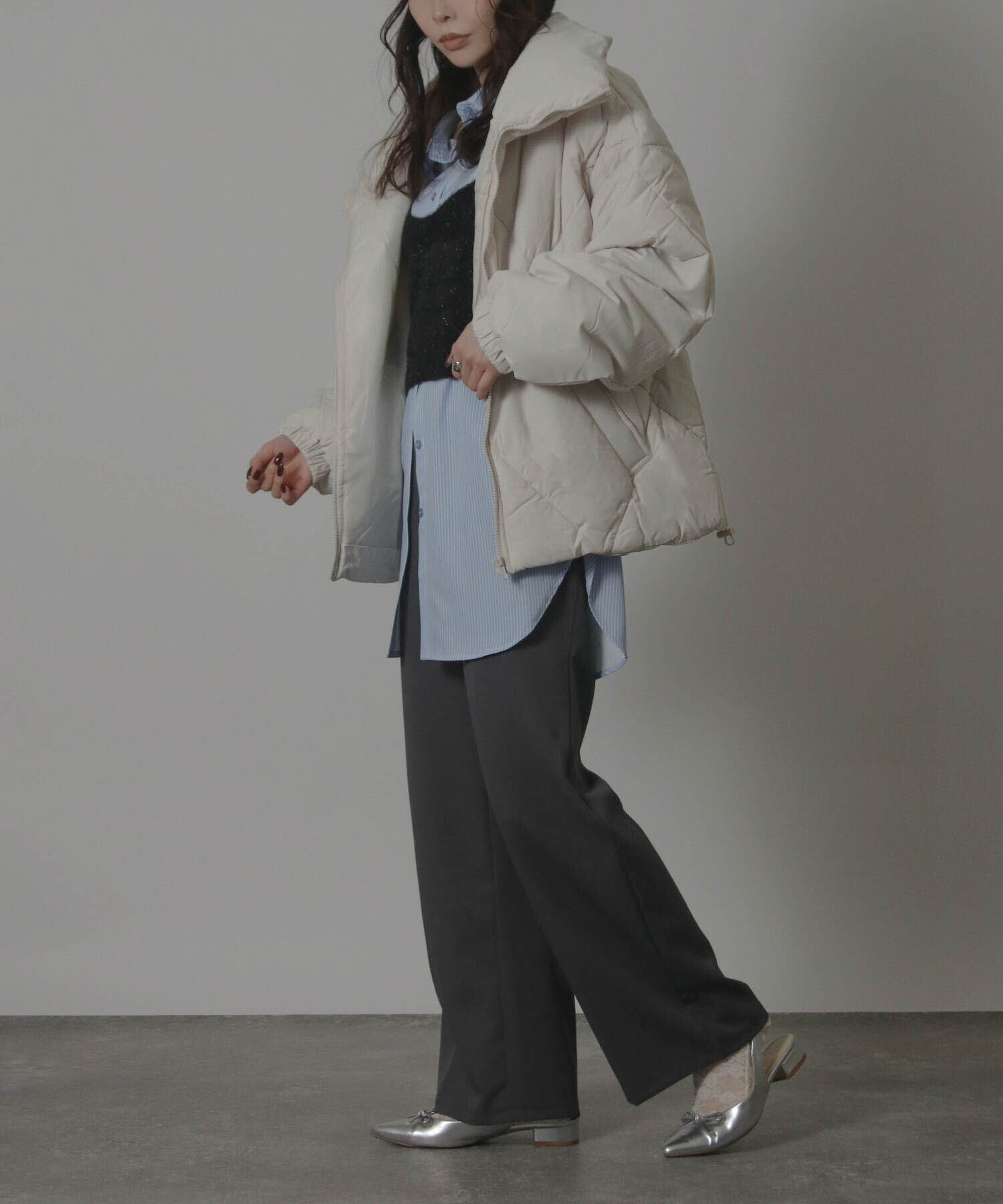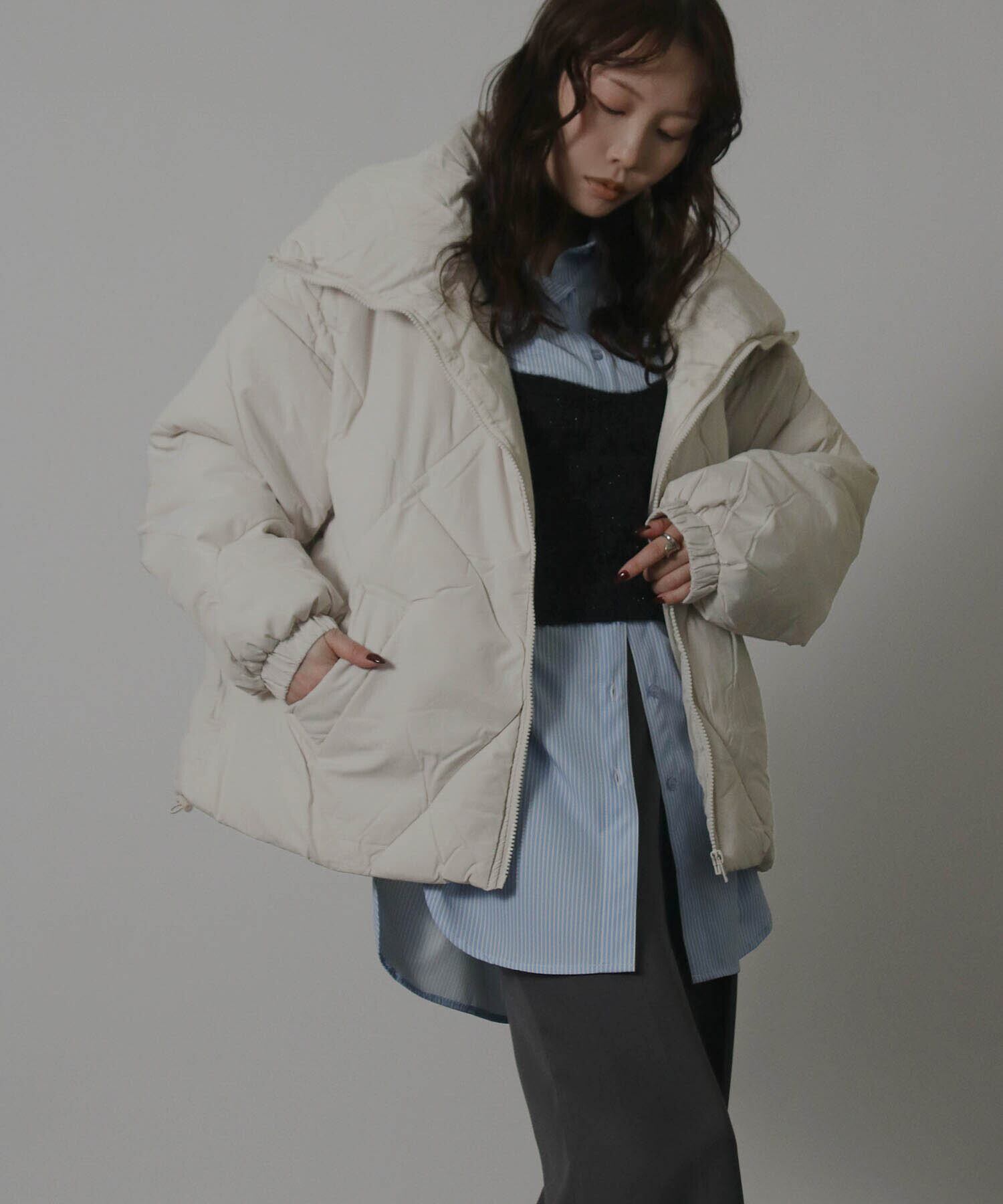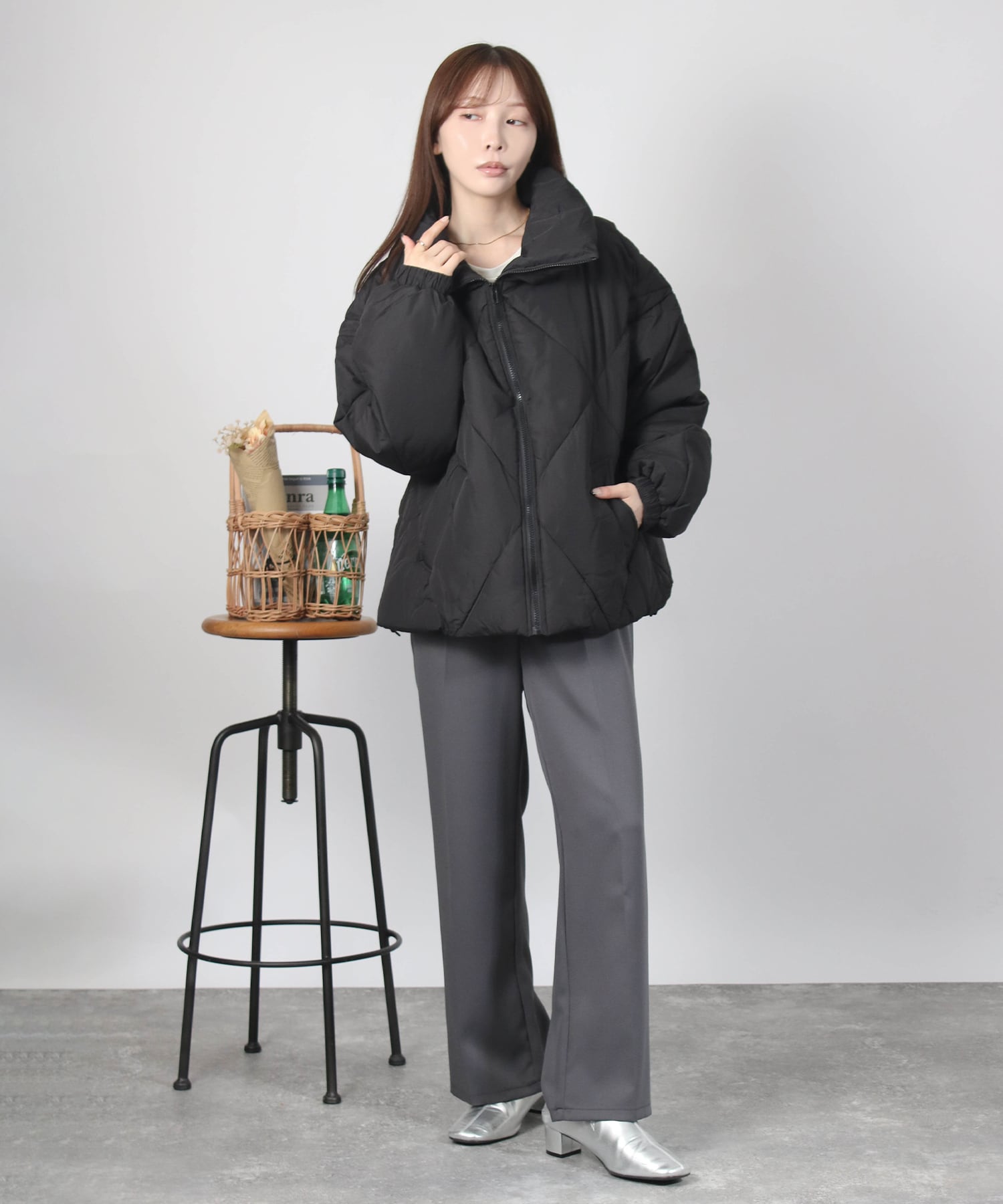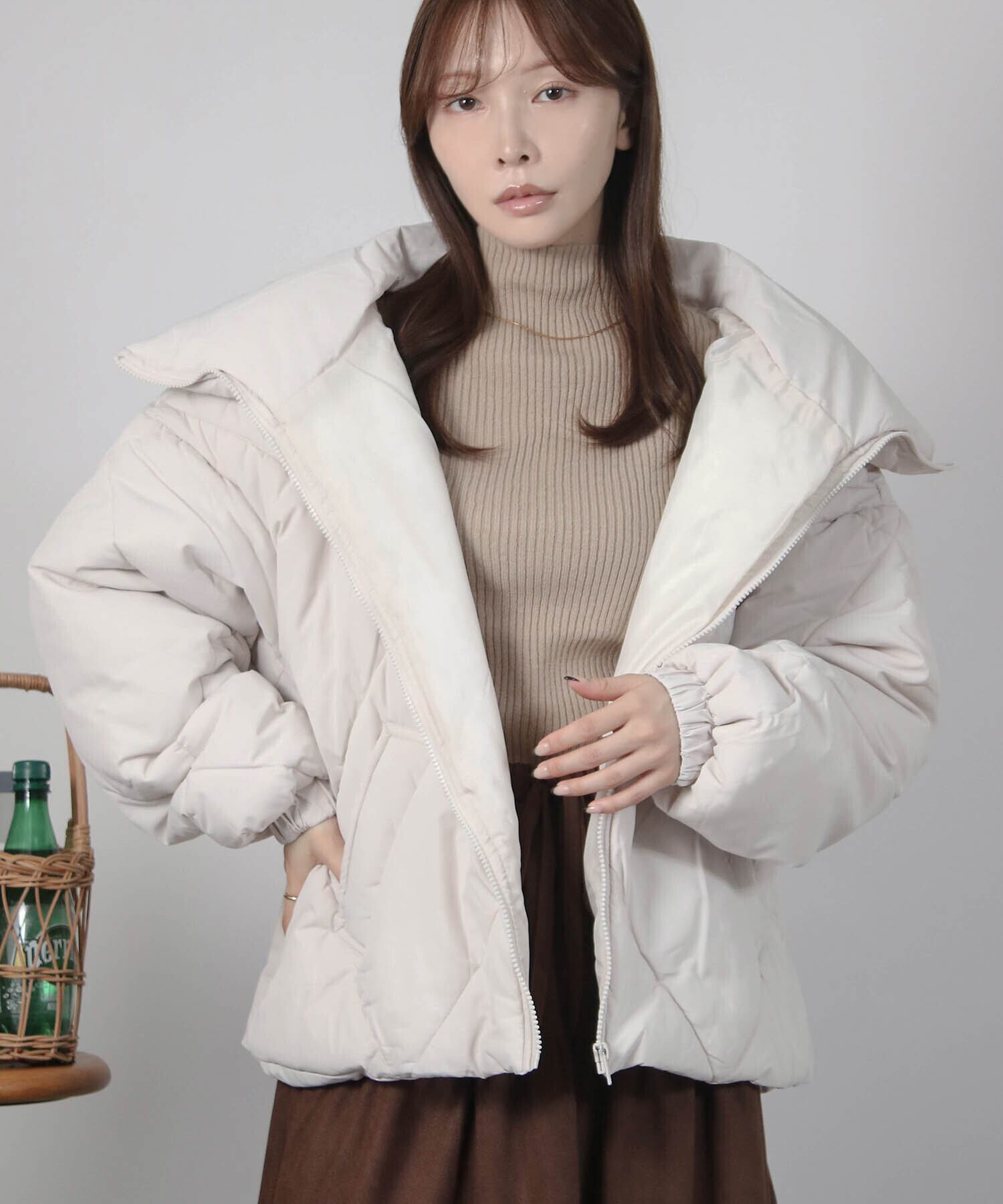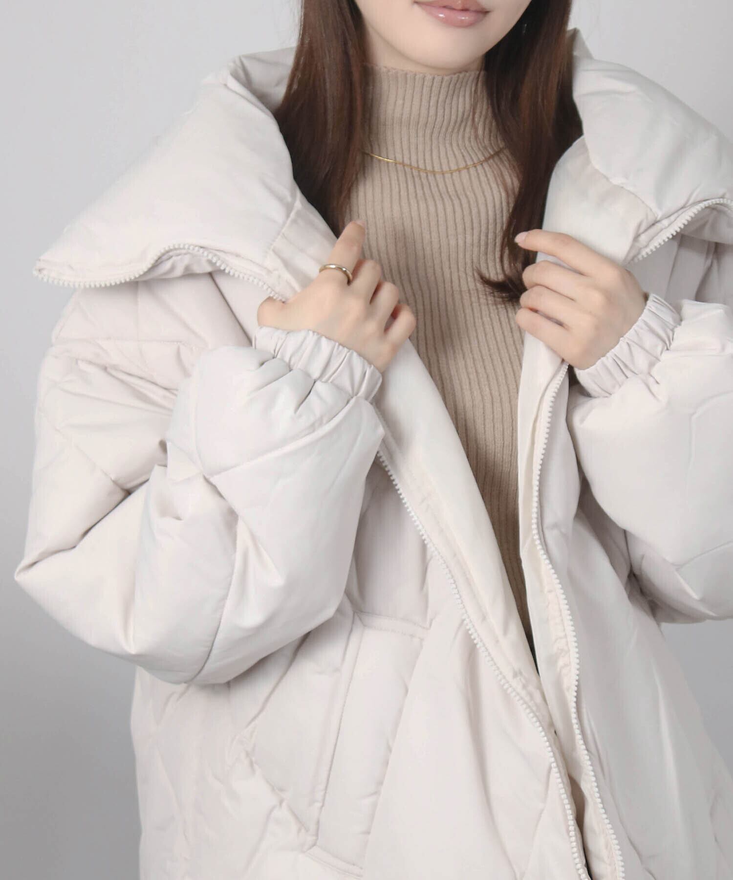 首元まで暖かなスタンドネックデザインで小顔効果も期待!