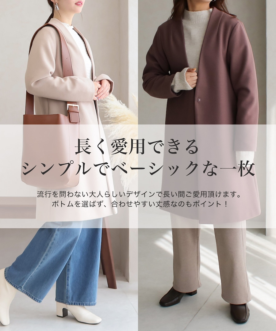 シンプルで魅せるきちんと感抜群なノーカラーコートです!
