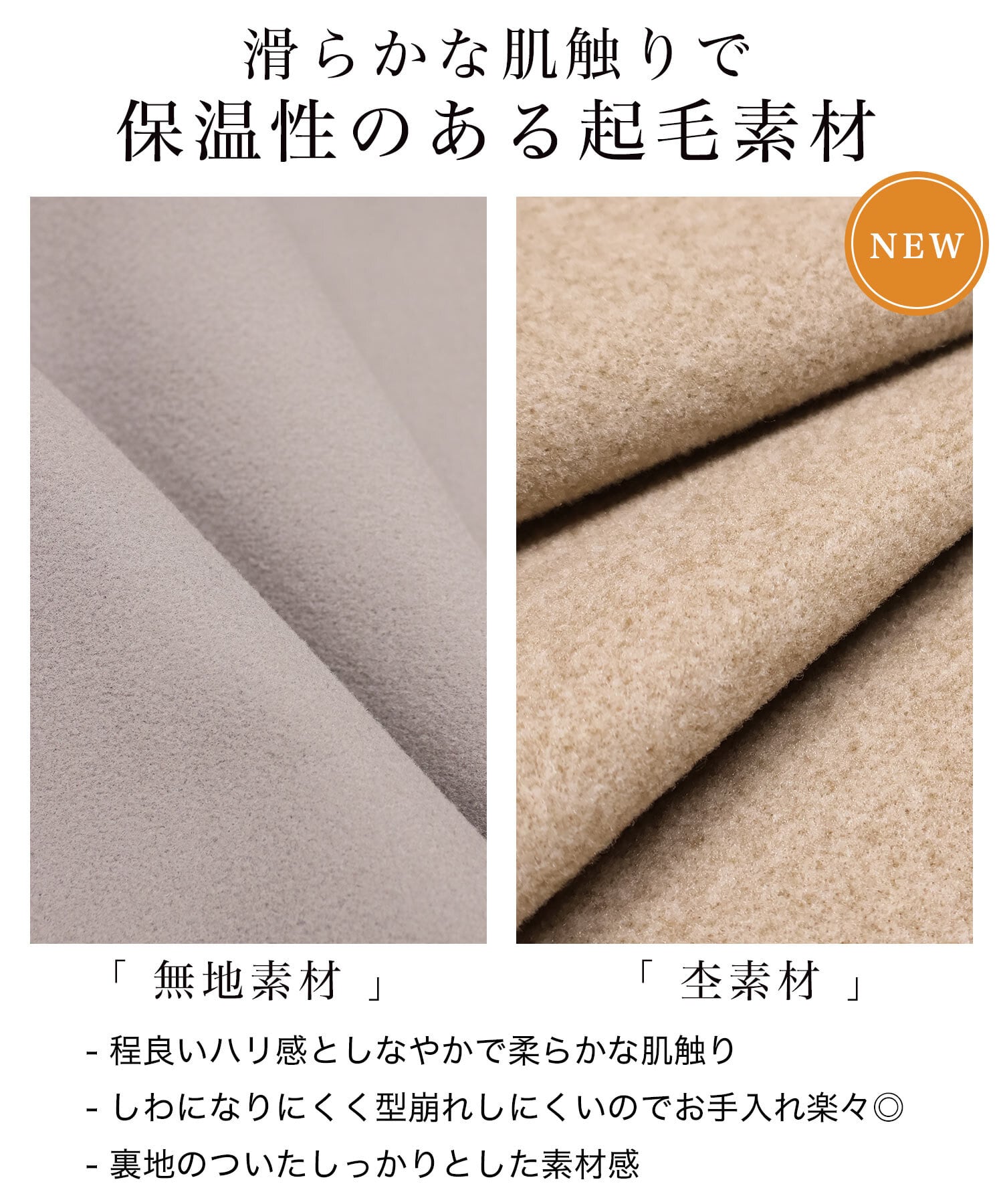 型崩れしにくく、真冬も暖かいしっかりとした素材感です。