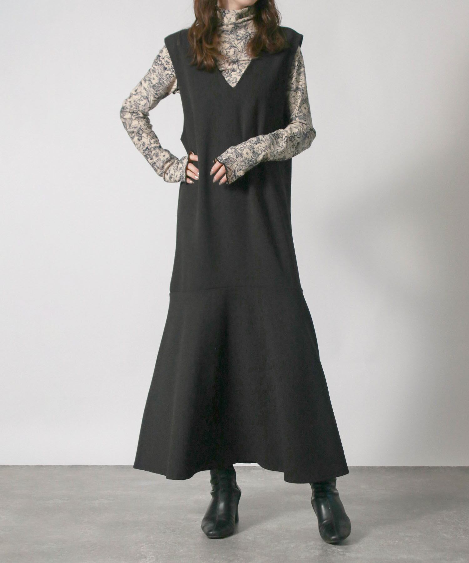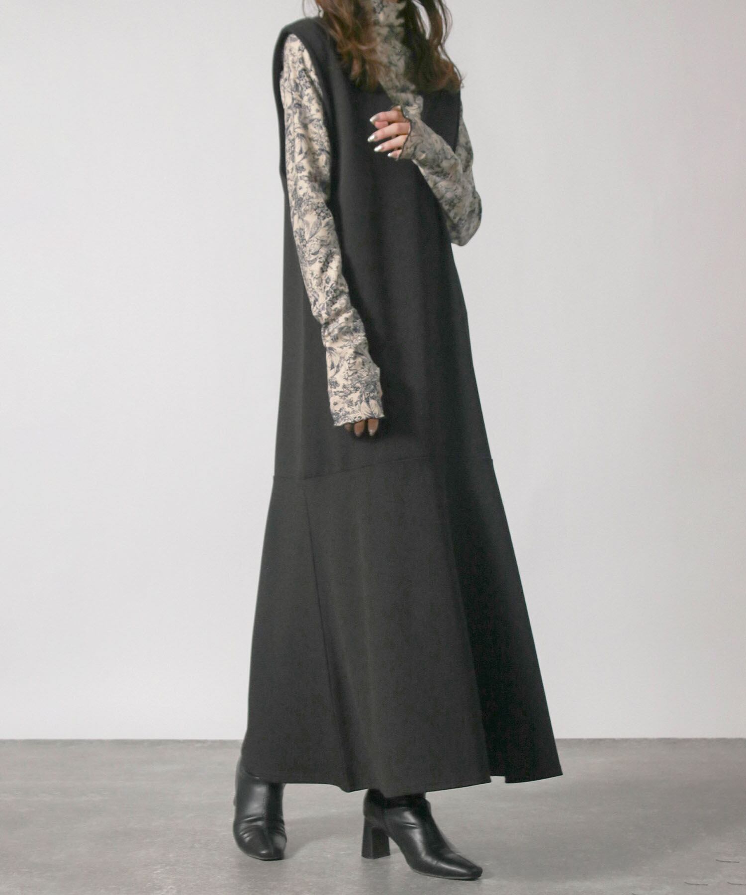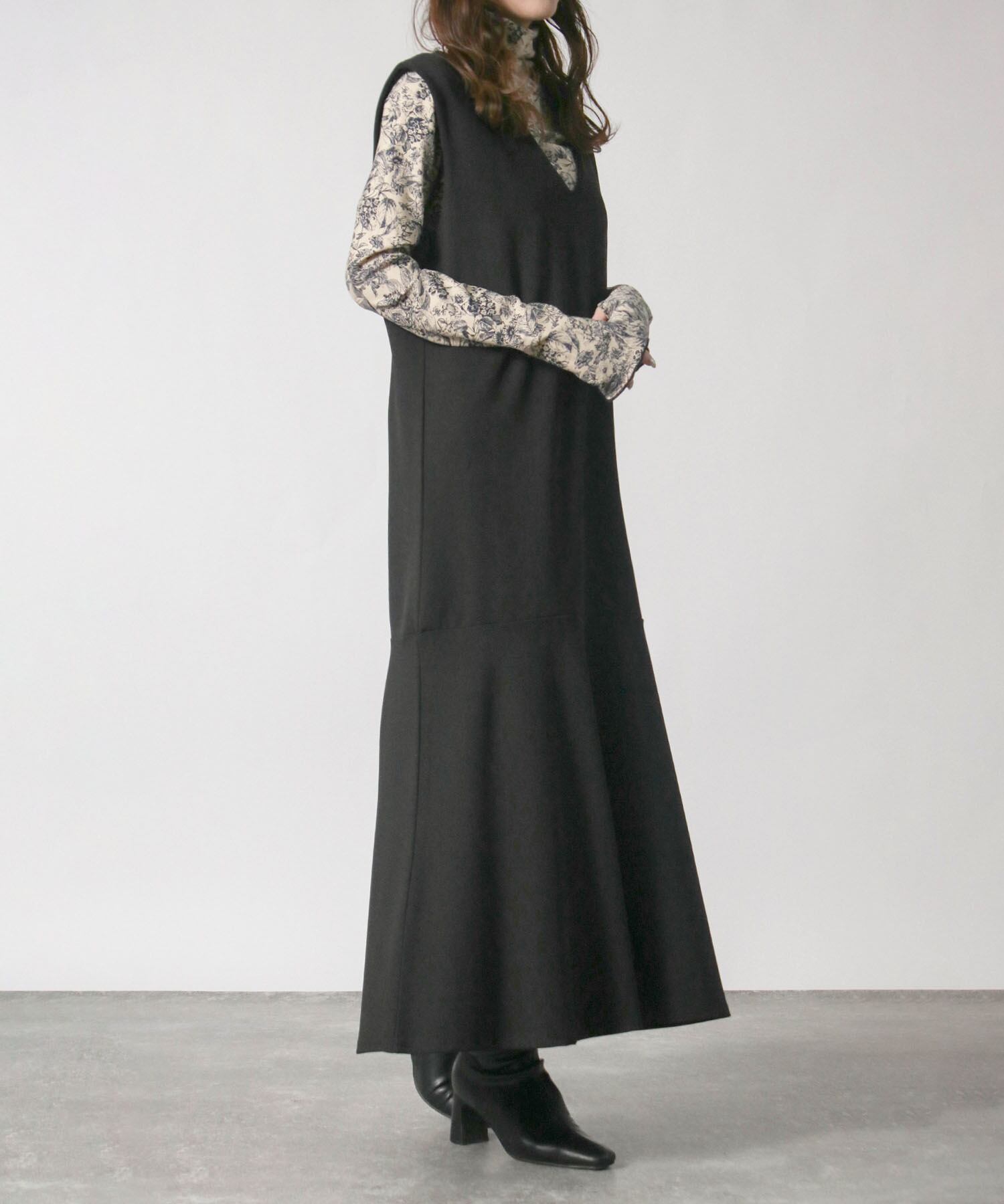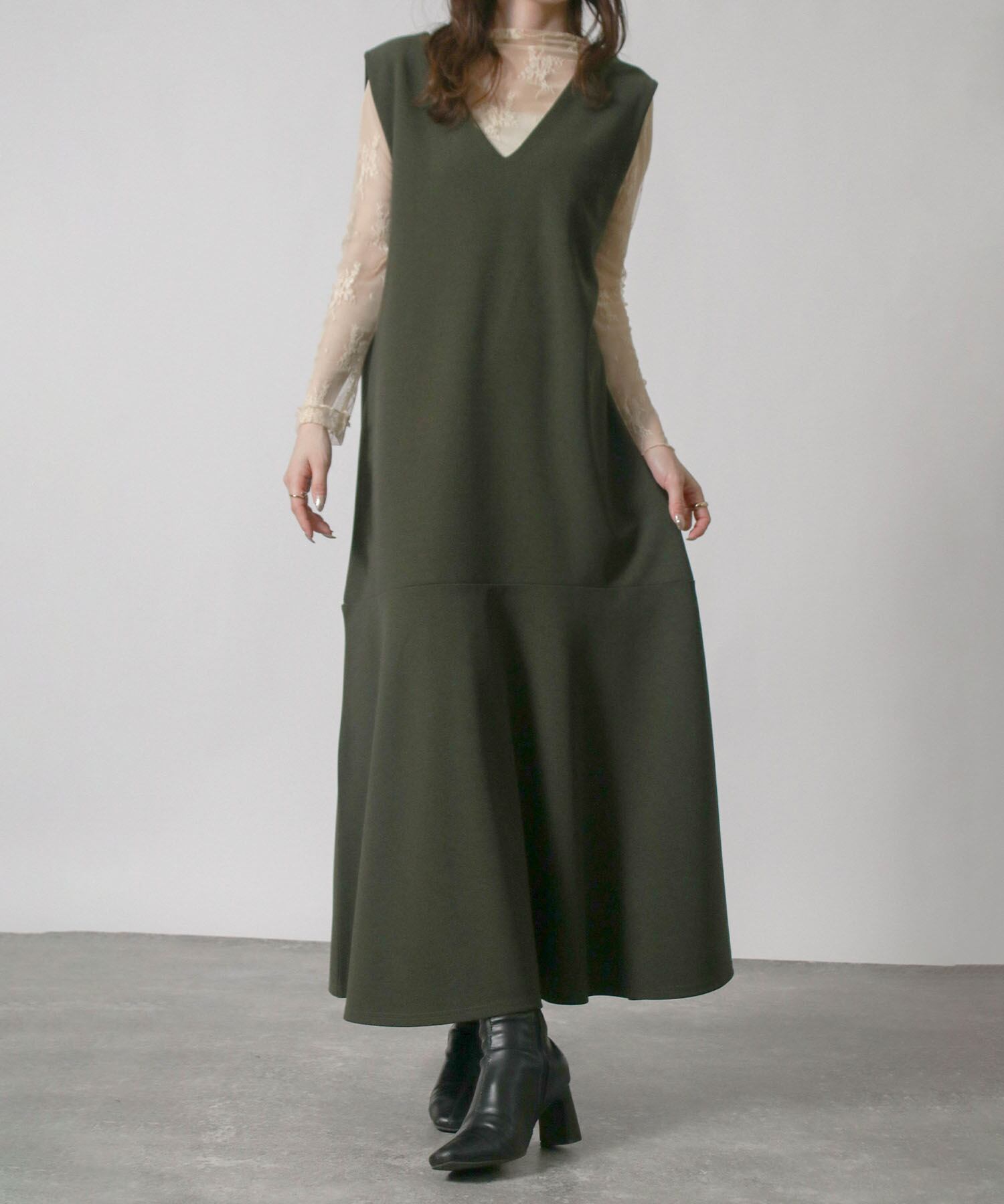 ロング丈 ワンピース レディース ジャンパースカート ノースリーブ ロング マキシ Vネック フレア シームフレア マーメイドシルエット 切り替え 春夏 春服 オールシーズン カジュアル きれいめ S/M/Lサイズ
