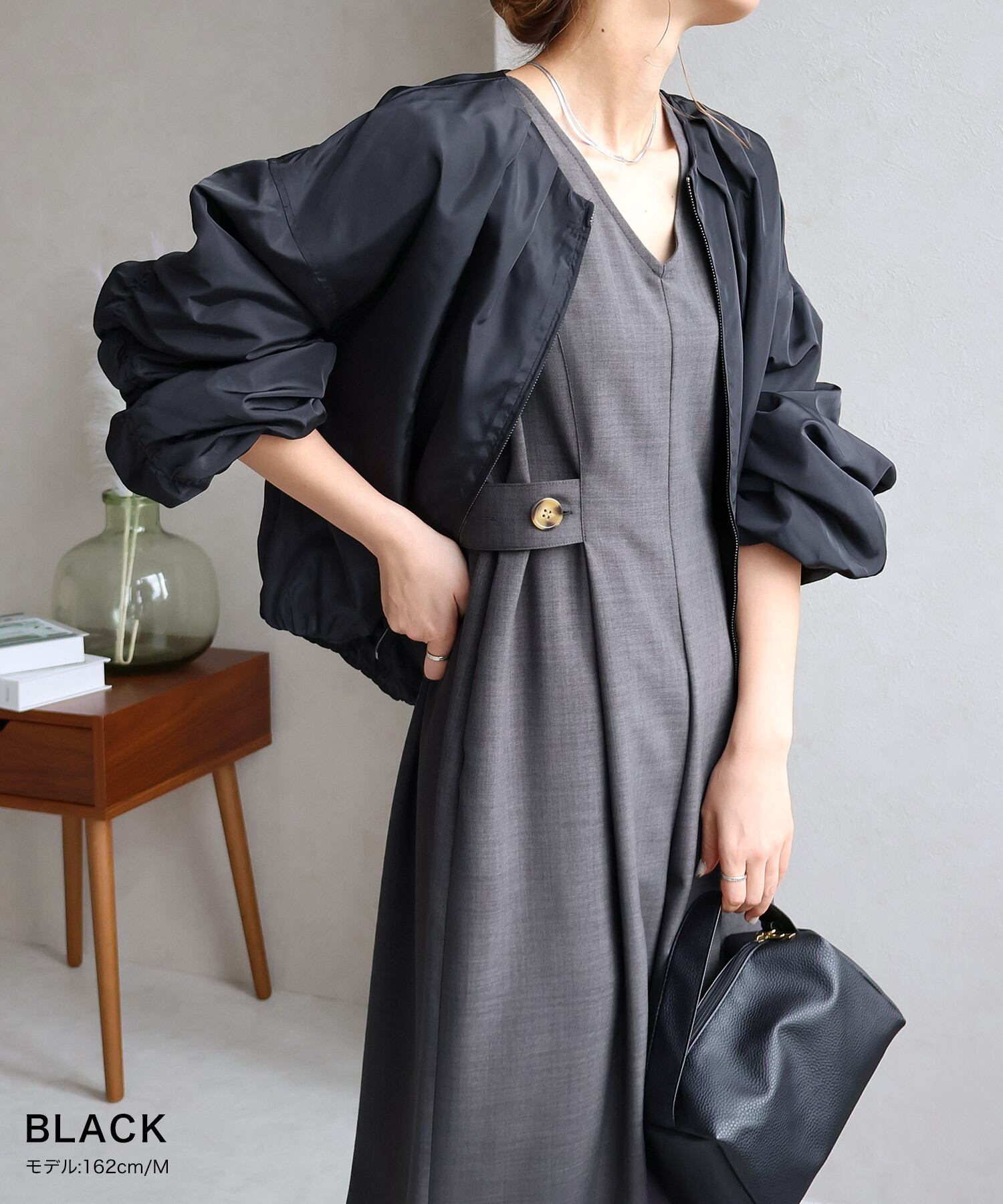 袖のギャザーが女性らしさを引き立てる大人かわいいブルゾン。