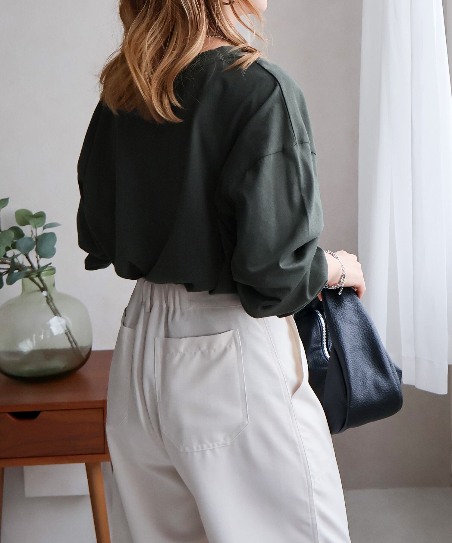無地ベースのシンプルなロングtシャツなので、ボトムスを選ばず、様々な着こなしをお楽しみ頂けます。