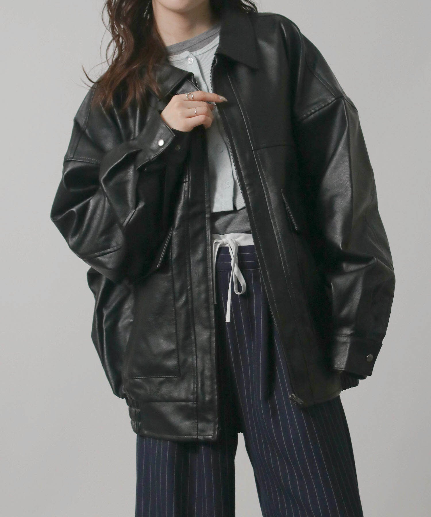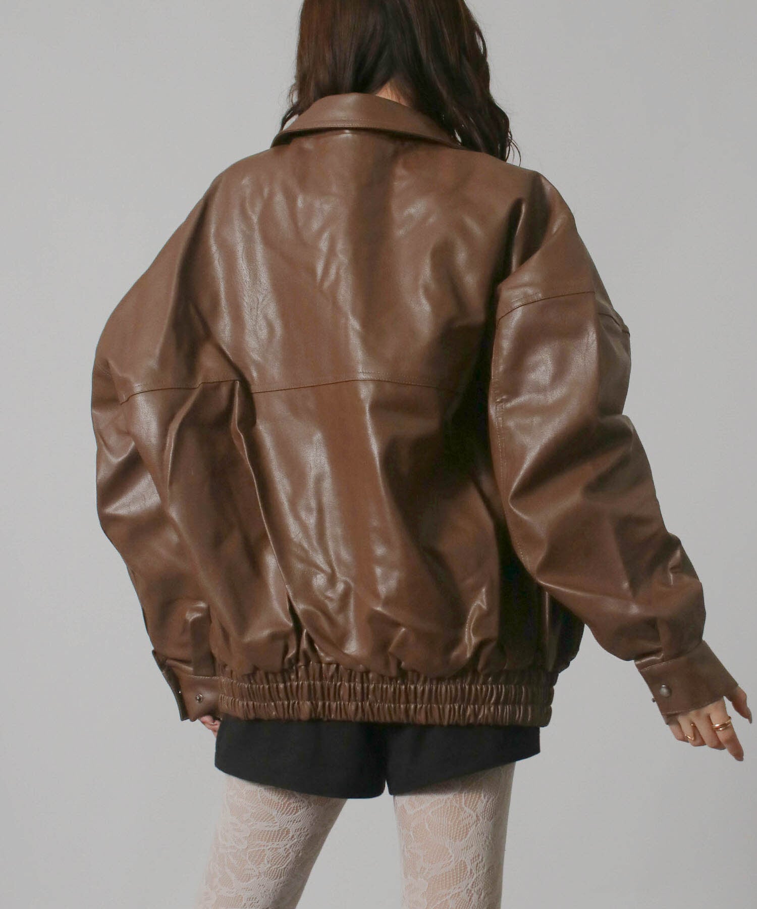 レディース アウター ブルゾン 合皮 フェイクレザー オーバーサイズ 長袖 ジップアップ レギュラーカラー ハイネック 秋 冬 羽織
