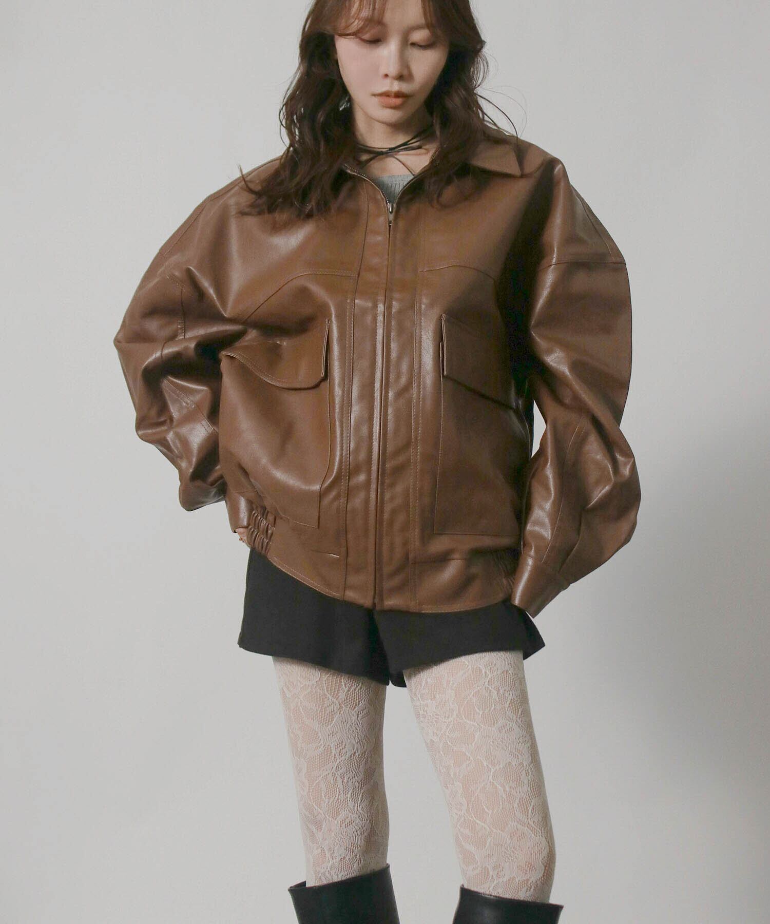 合皮ブルゾンでヴィンテージムードへ引き寄せ。