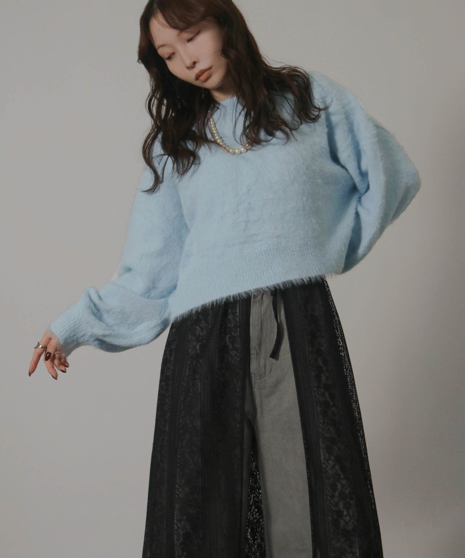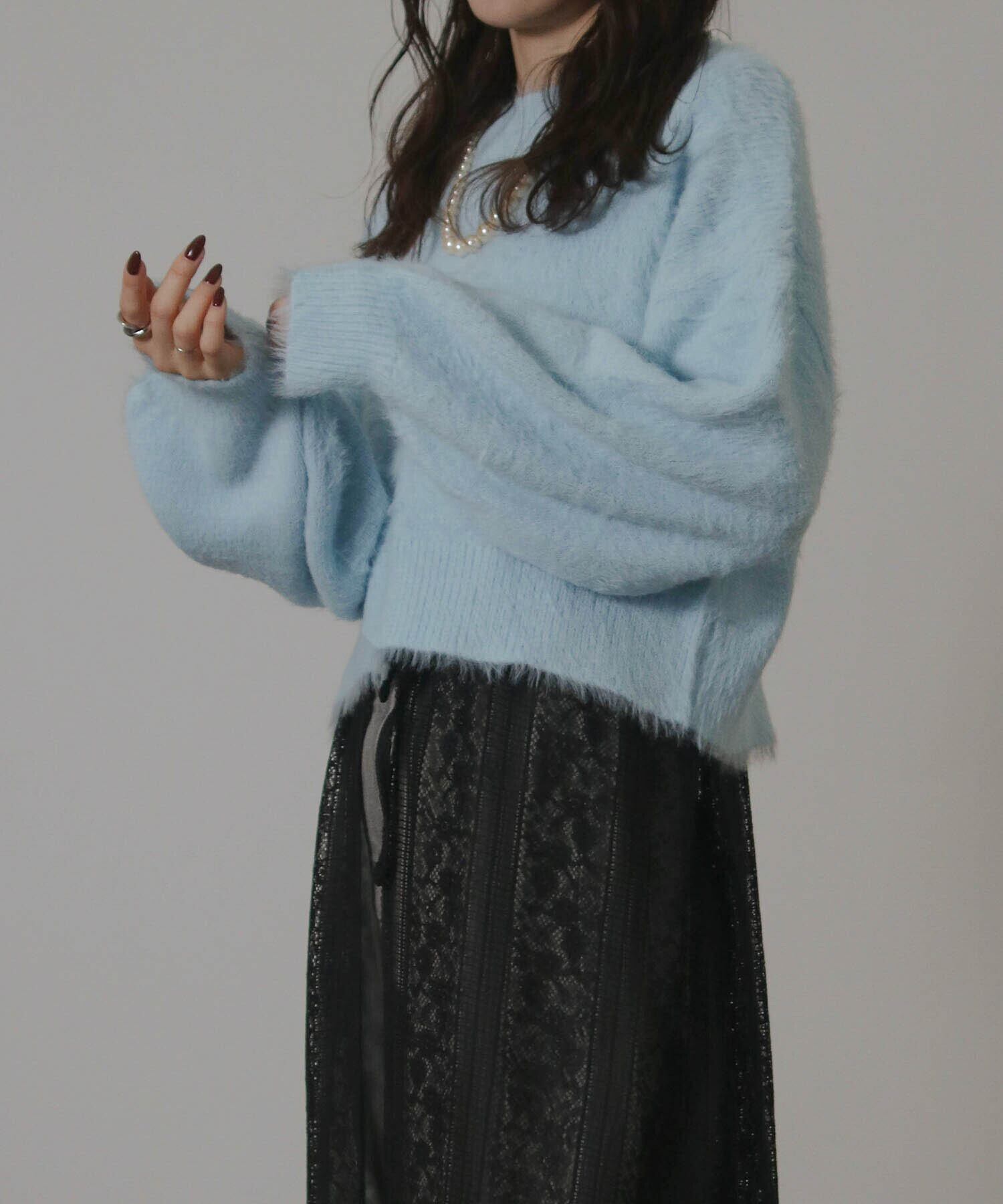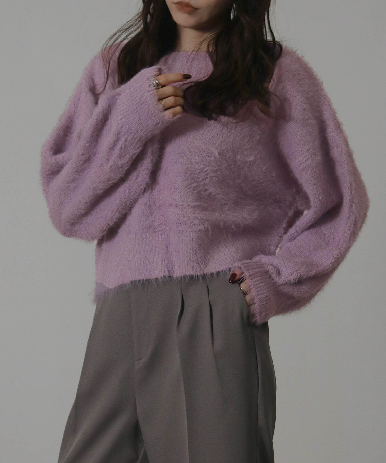 毛足感が特徴的なシャギー素材を使用したニットプルオーバー