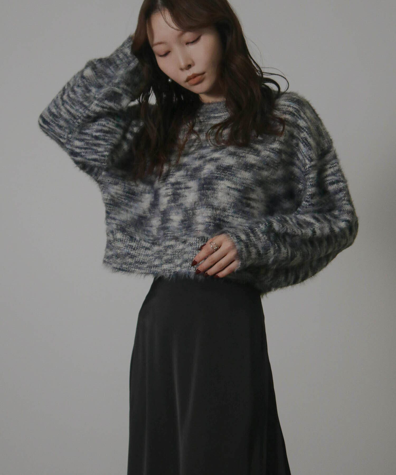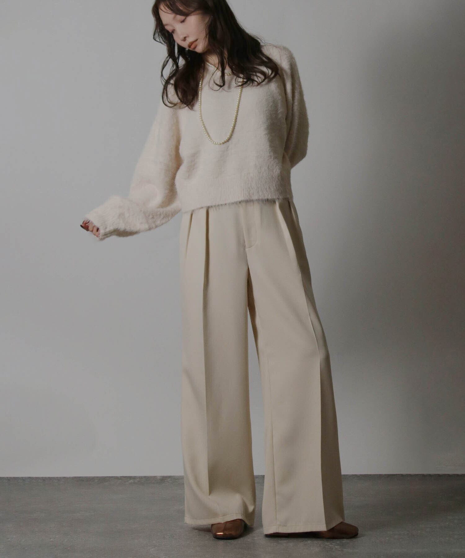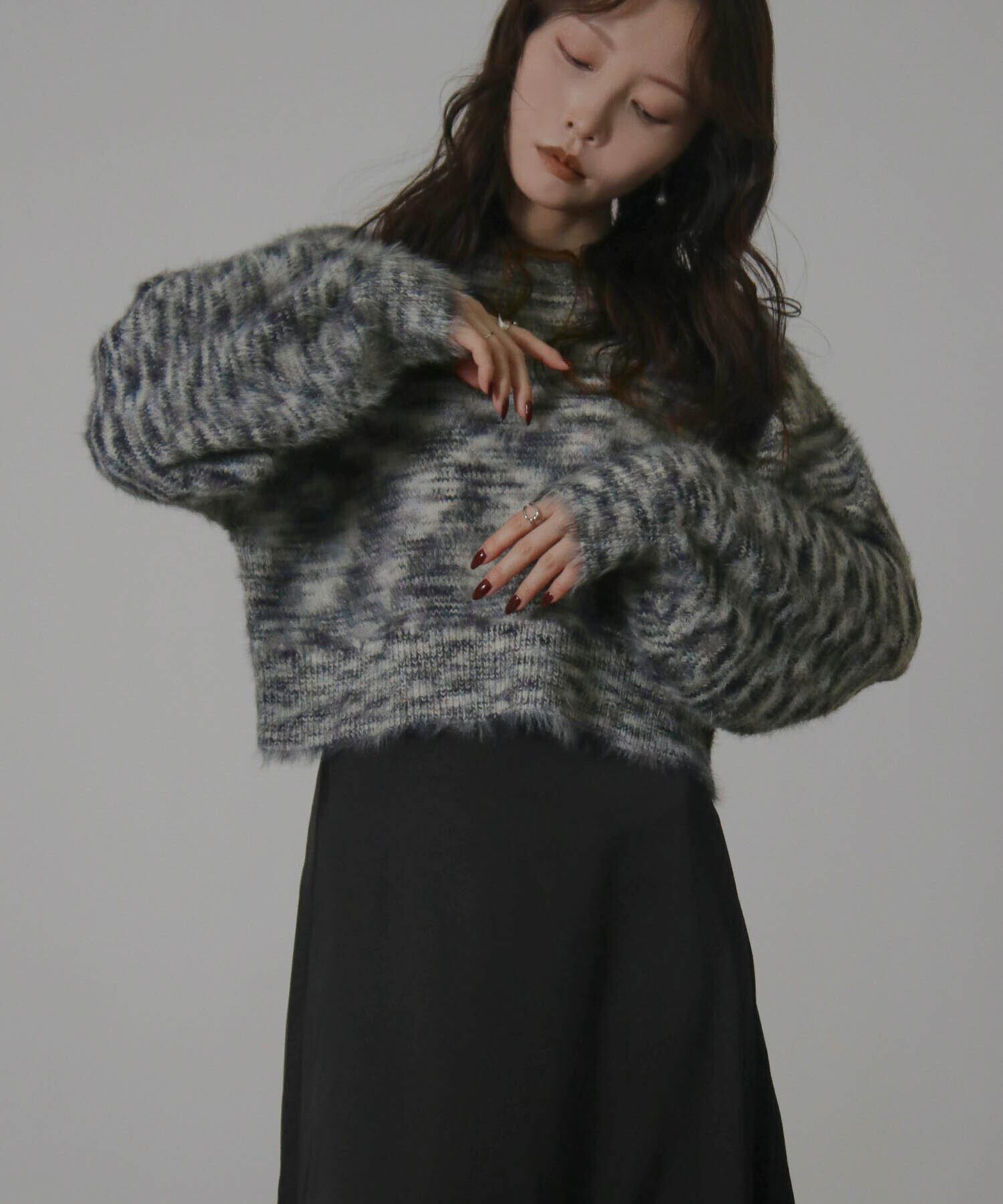 毛足感が特徴的なシャギー素材を使用したニットプルオーバー