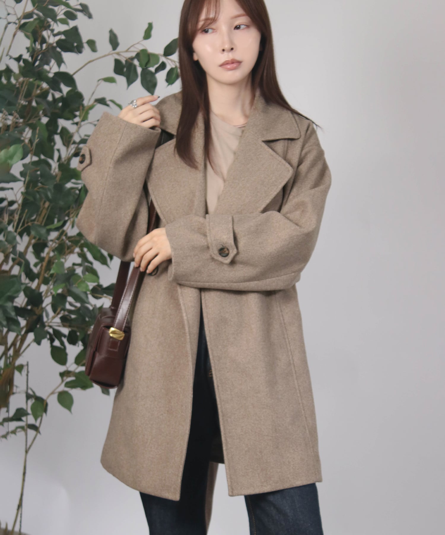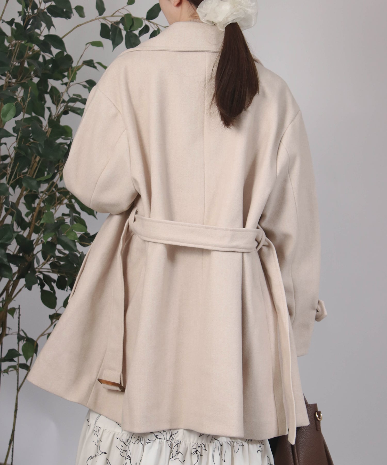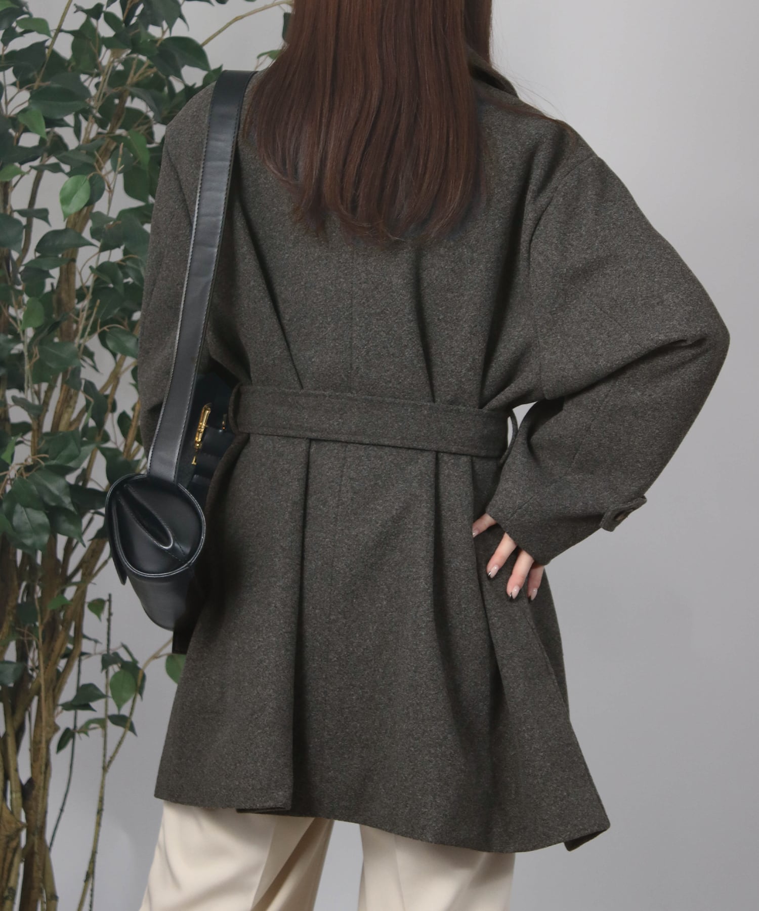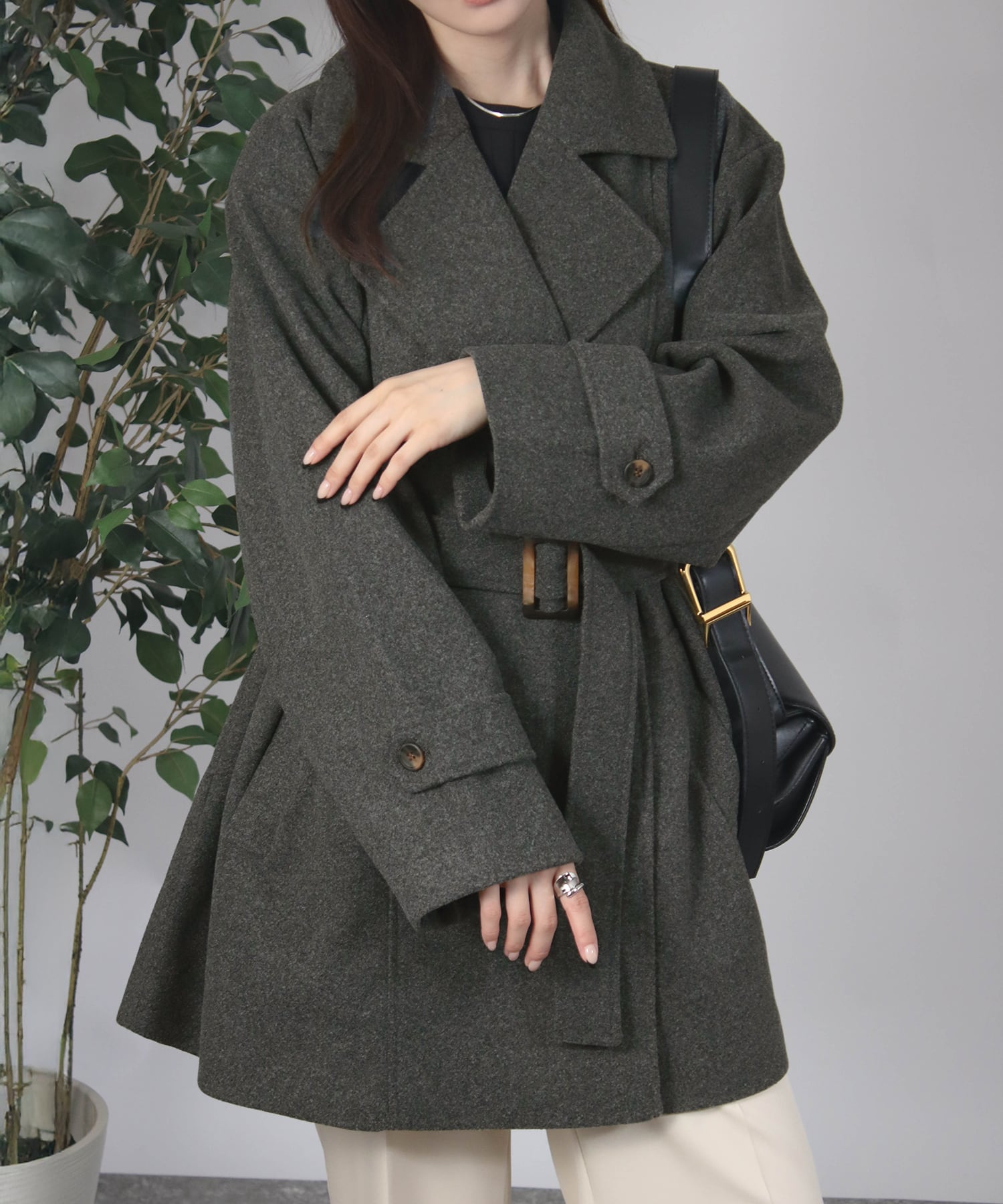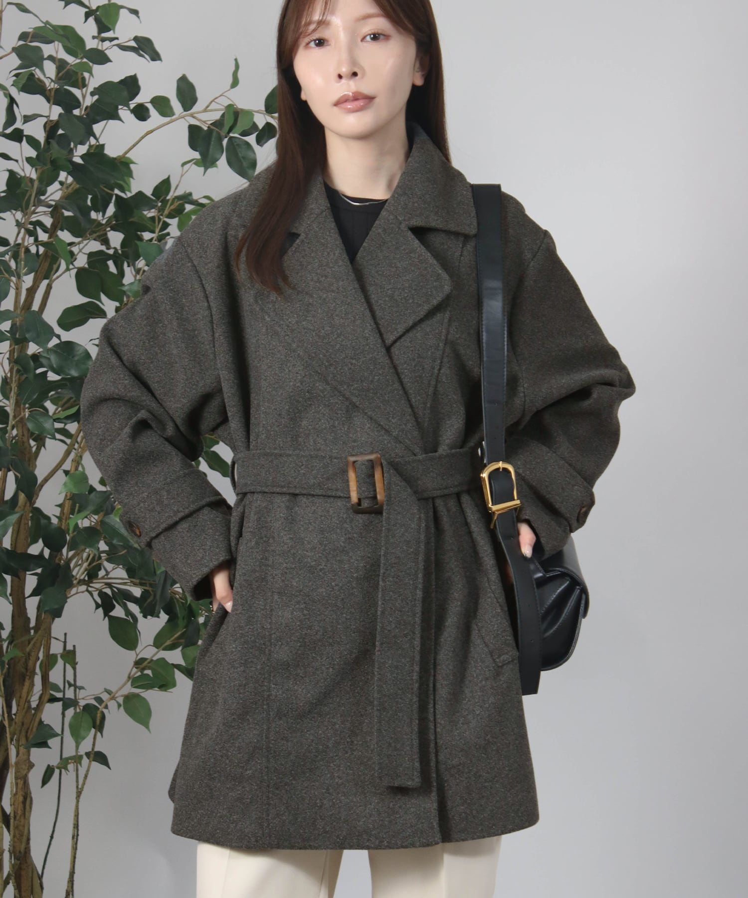 ベルト付きミドル丈コート