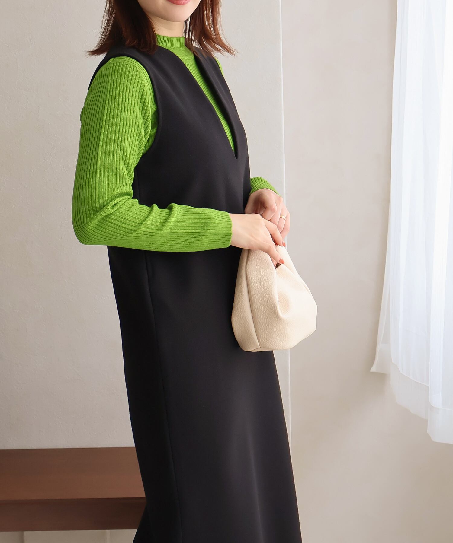 ロング丈 スリット レディース ロングワンピース ジャンバースカート マキシ キーネック Vネック 秋冬 秋服 冬服 オフィス カジュアル きれいめ 20代 30代 40代 50代