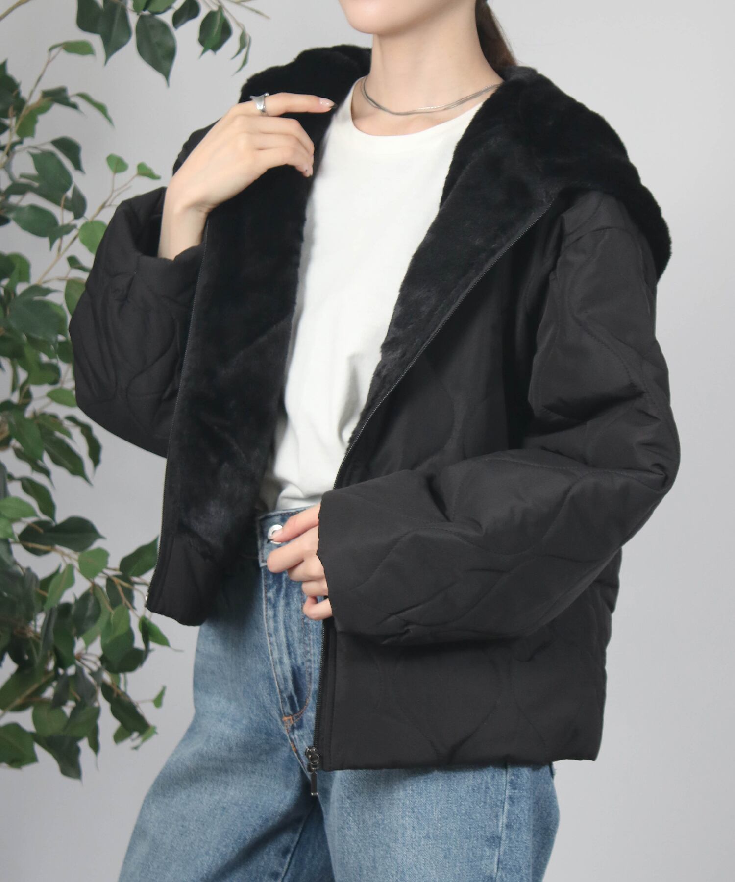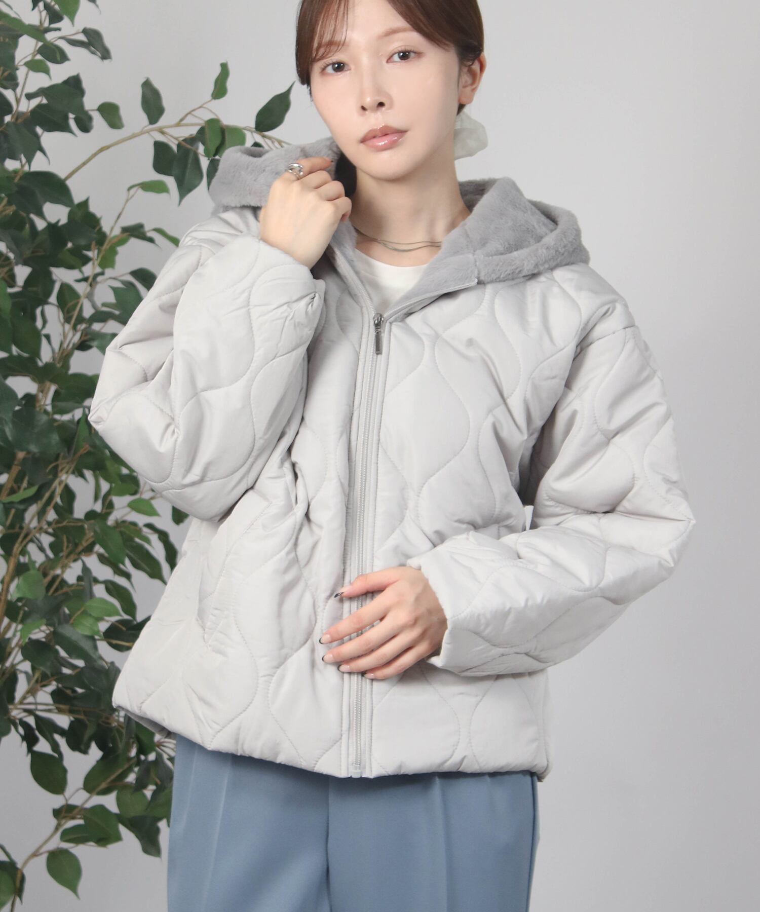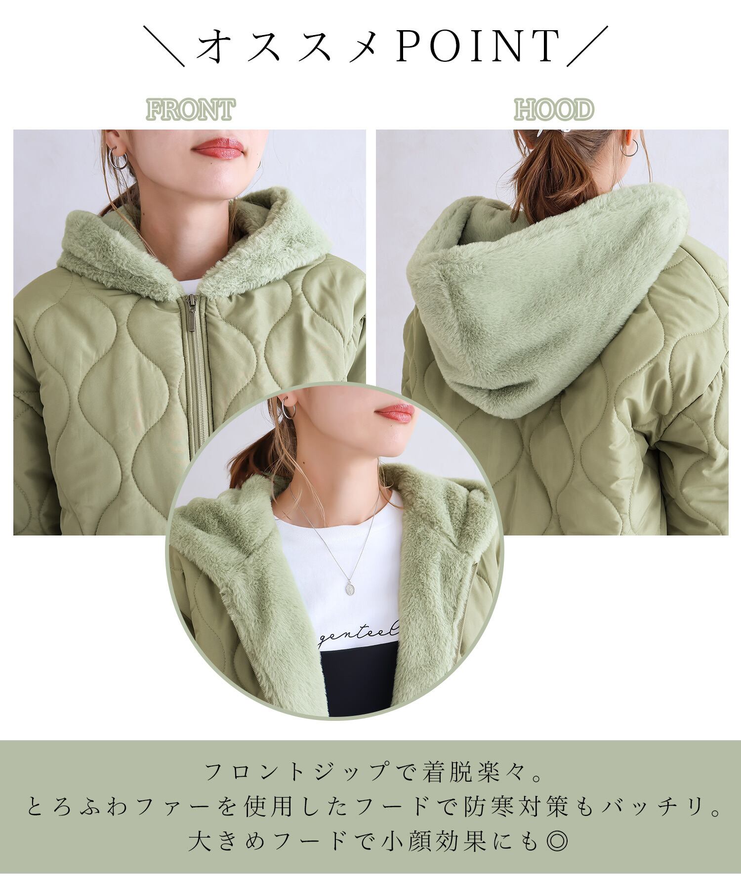 アウター レディース コート ブルゾン ショート丈 フード パーカー 中綿 ファー キルティング キルト オーバーサイズ エコファー フェイクファー ジャンバー ジャケット 秋物 秋服 冬服 秋冬 20代 30代 40代 50代 ママ