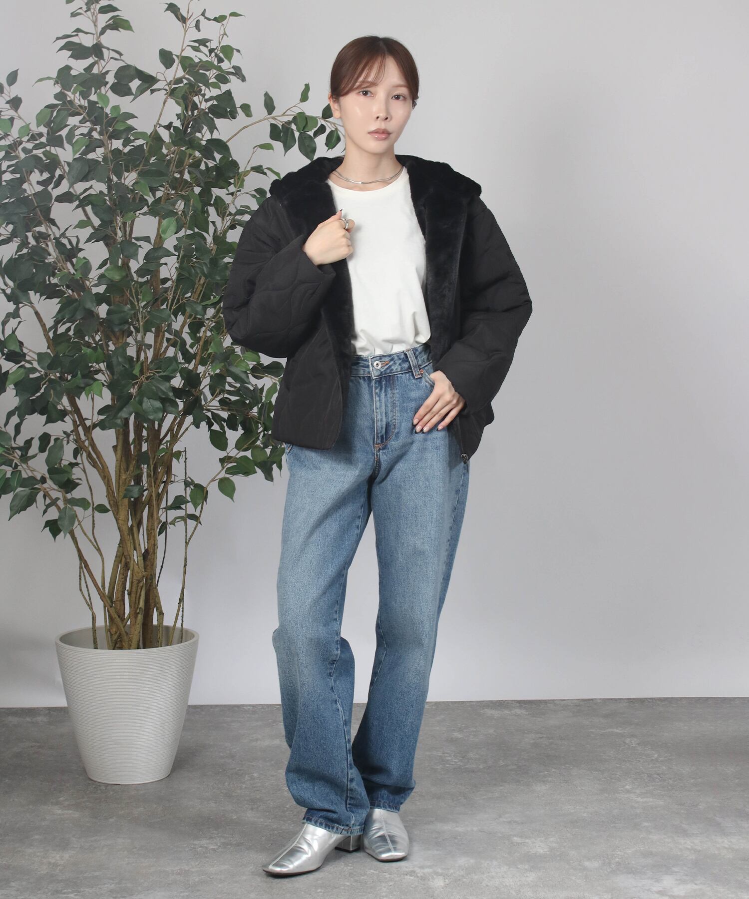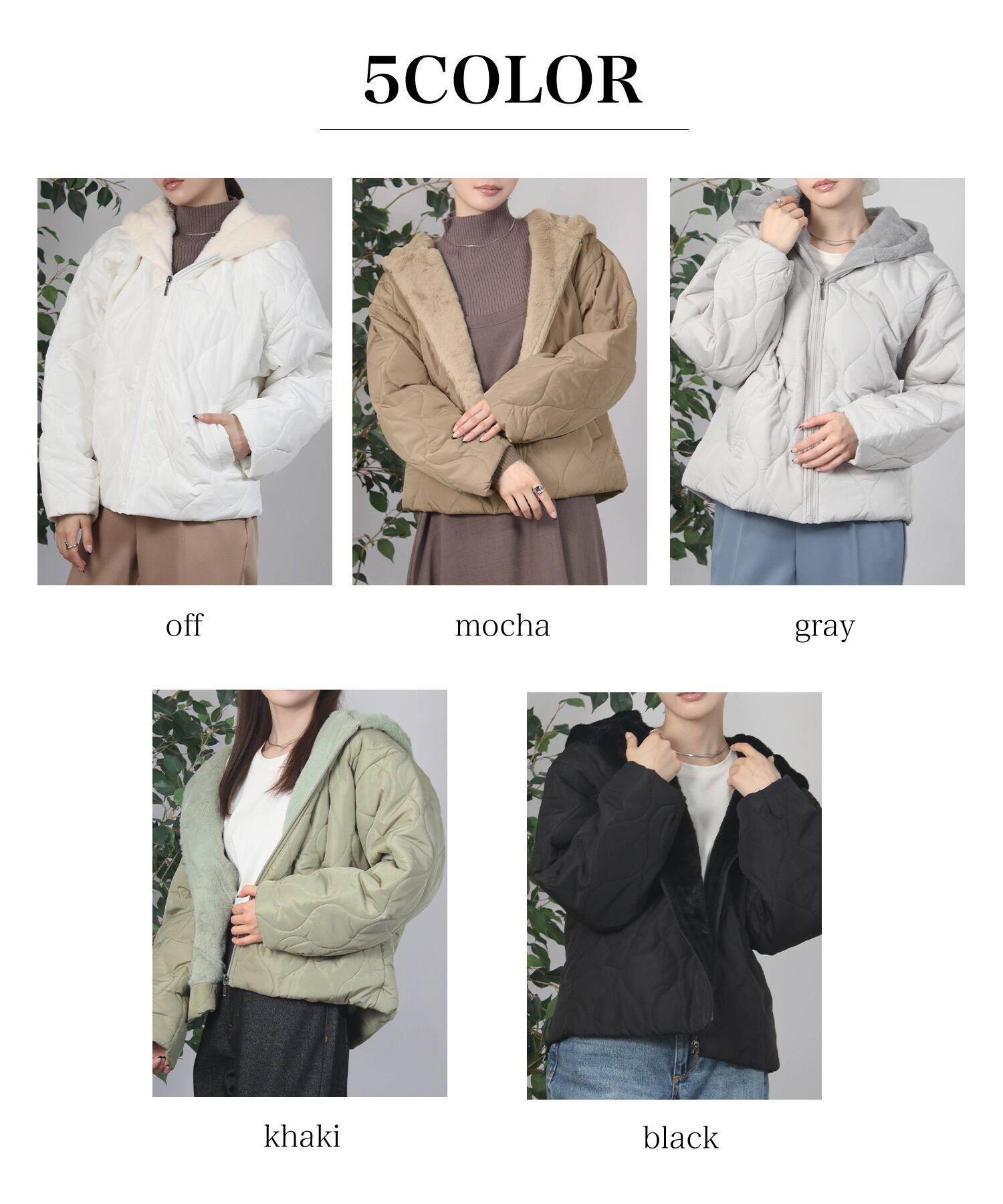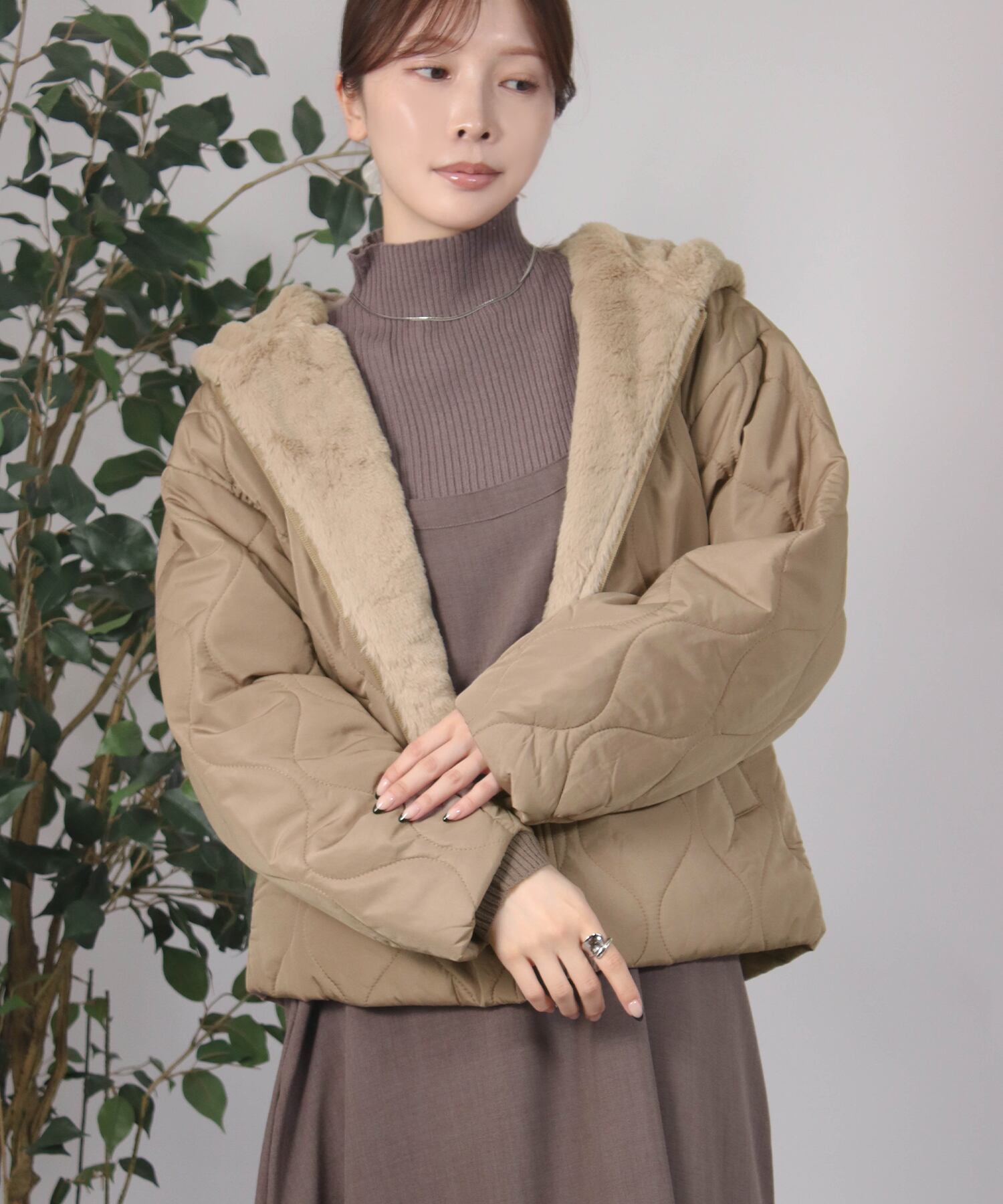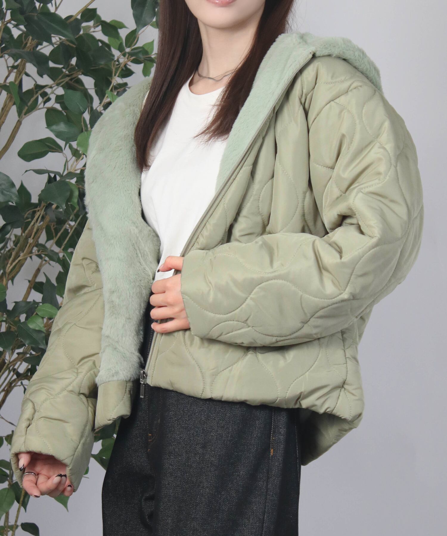 アウター レディース コート ブルゾン ショート丈 フード パーカー 中綿 ファー キルティング キルト オーバーサイズ エコファー フェイクファー ジャンバー ジャケット 秋物 秋服 冬服 秋冬 20代 30代 40代 50代 ママ