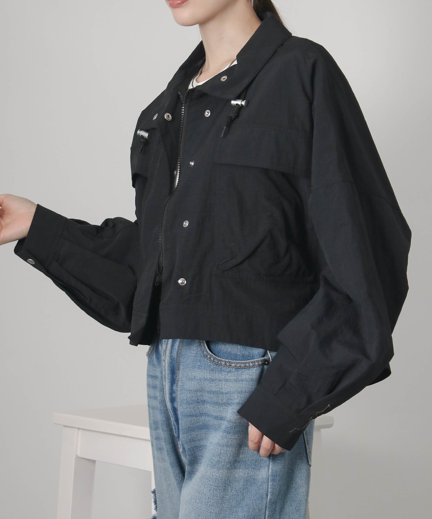 ナイロン カジュアル きれいめ 大人 ファッション ジャケット 春夏 ボリューム袖ドロスト ファスナー スポーツ アウトドア 前後差 体型カバー 20代/30代/40代/50代,