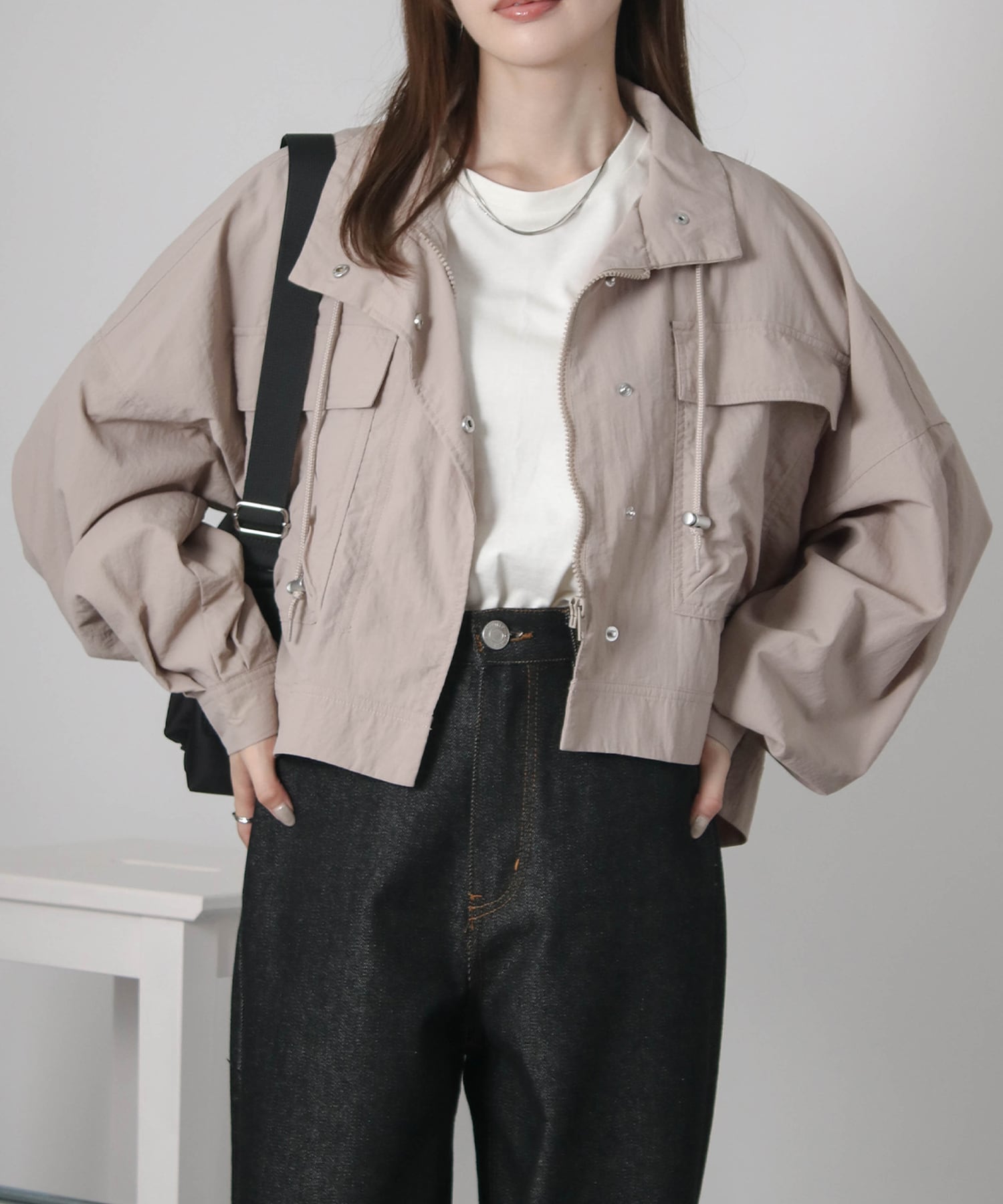 コート レディース アウター ショート丈 ミリタリー スタンドカラー ナイロンジャケット ブルゾン オーバーサイズ 春 春服 春コーデ ゆったり