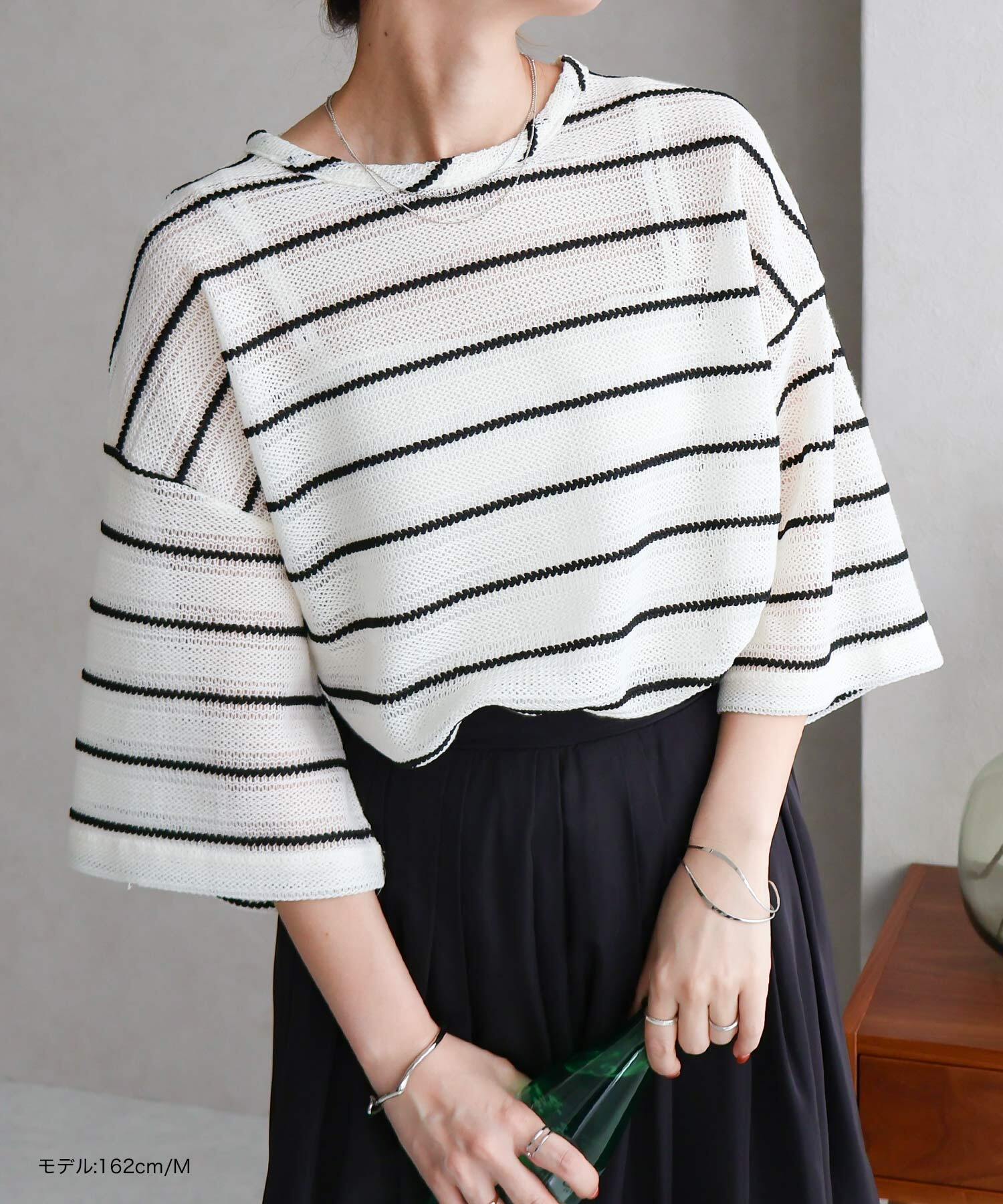 #半袖,#ボーダー,#シア #透け感,