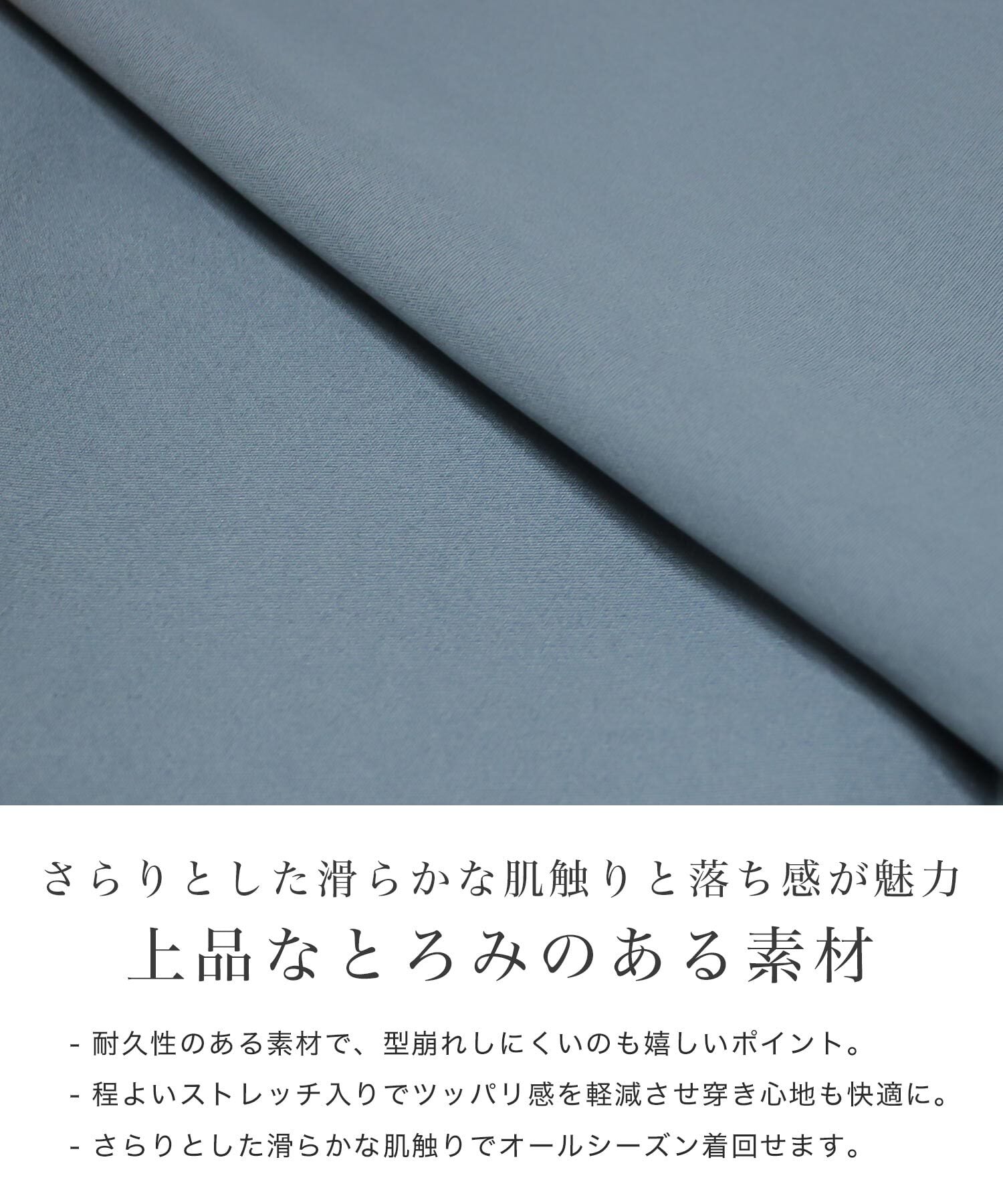 さらりとした滑らかな肌触りでオールシーズン着回せます。