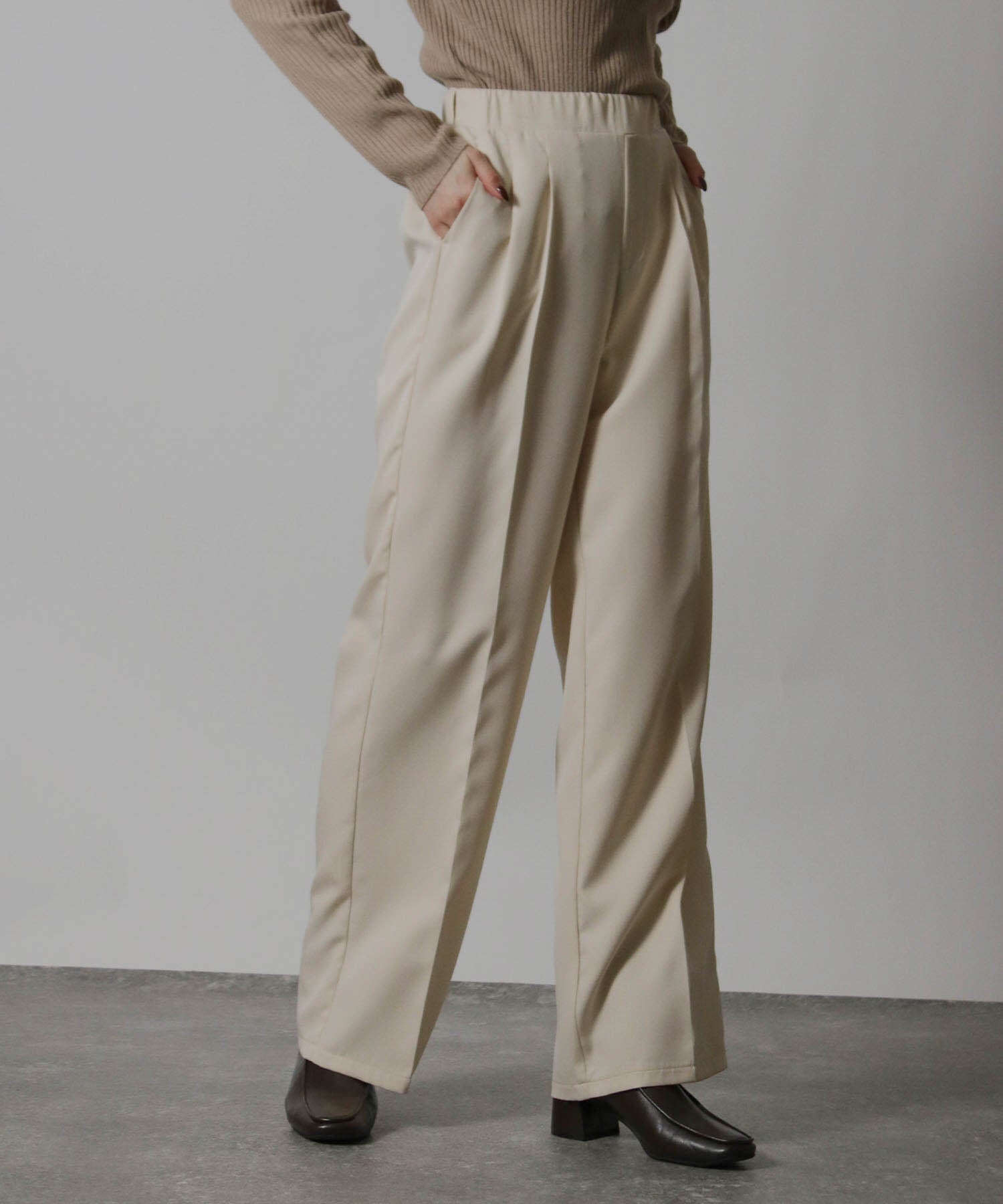 ・穿くだけで脚が綺麗に見えるストレスフリーなイージーパンツです。