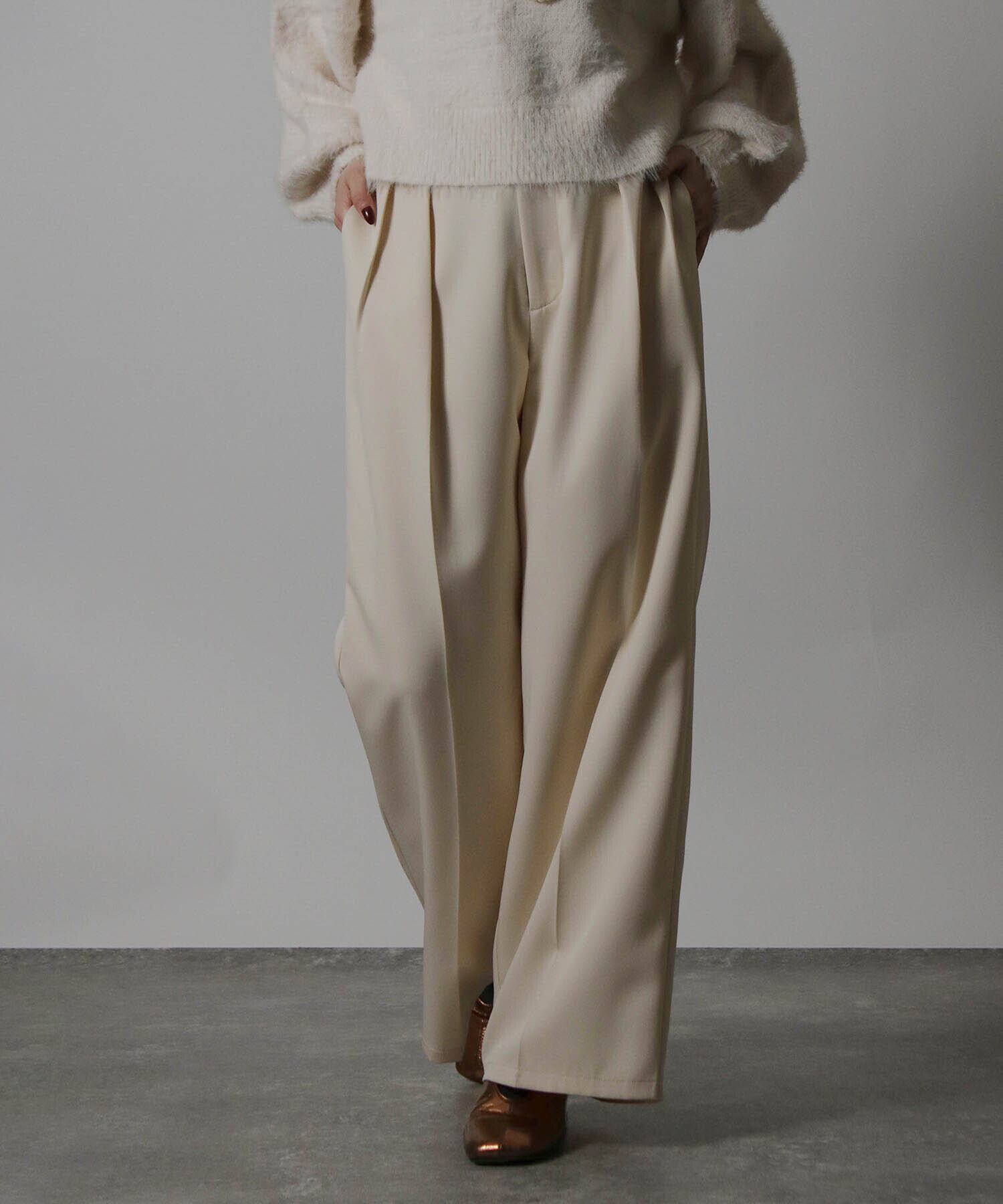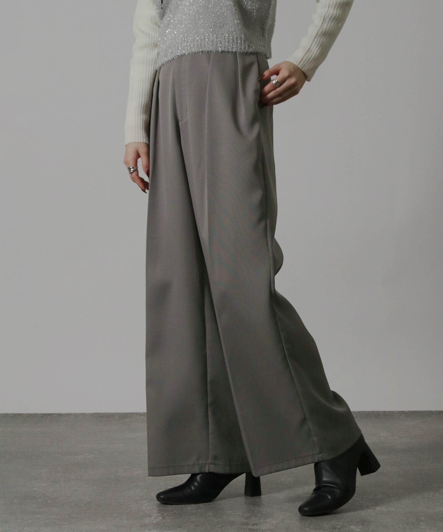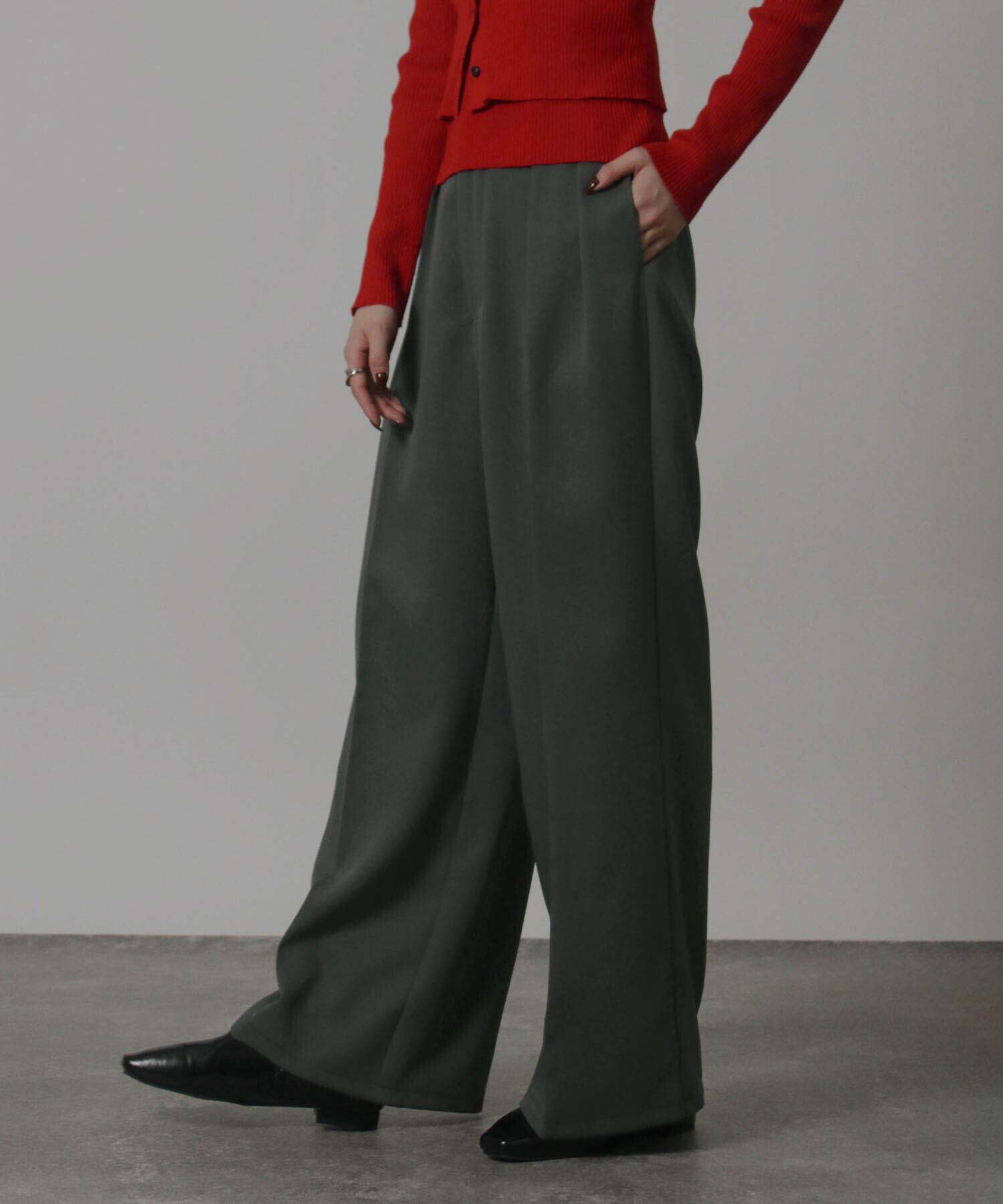 ・ハイウエストで手軽にスタイルアップできるワイドパンツ。