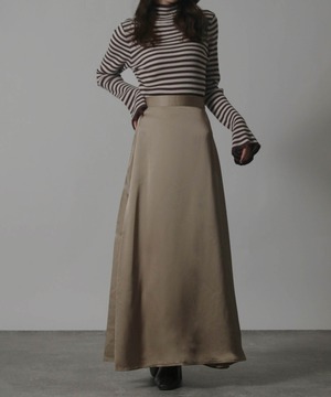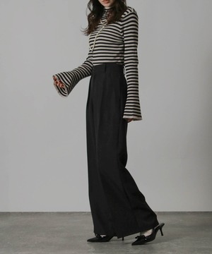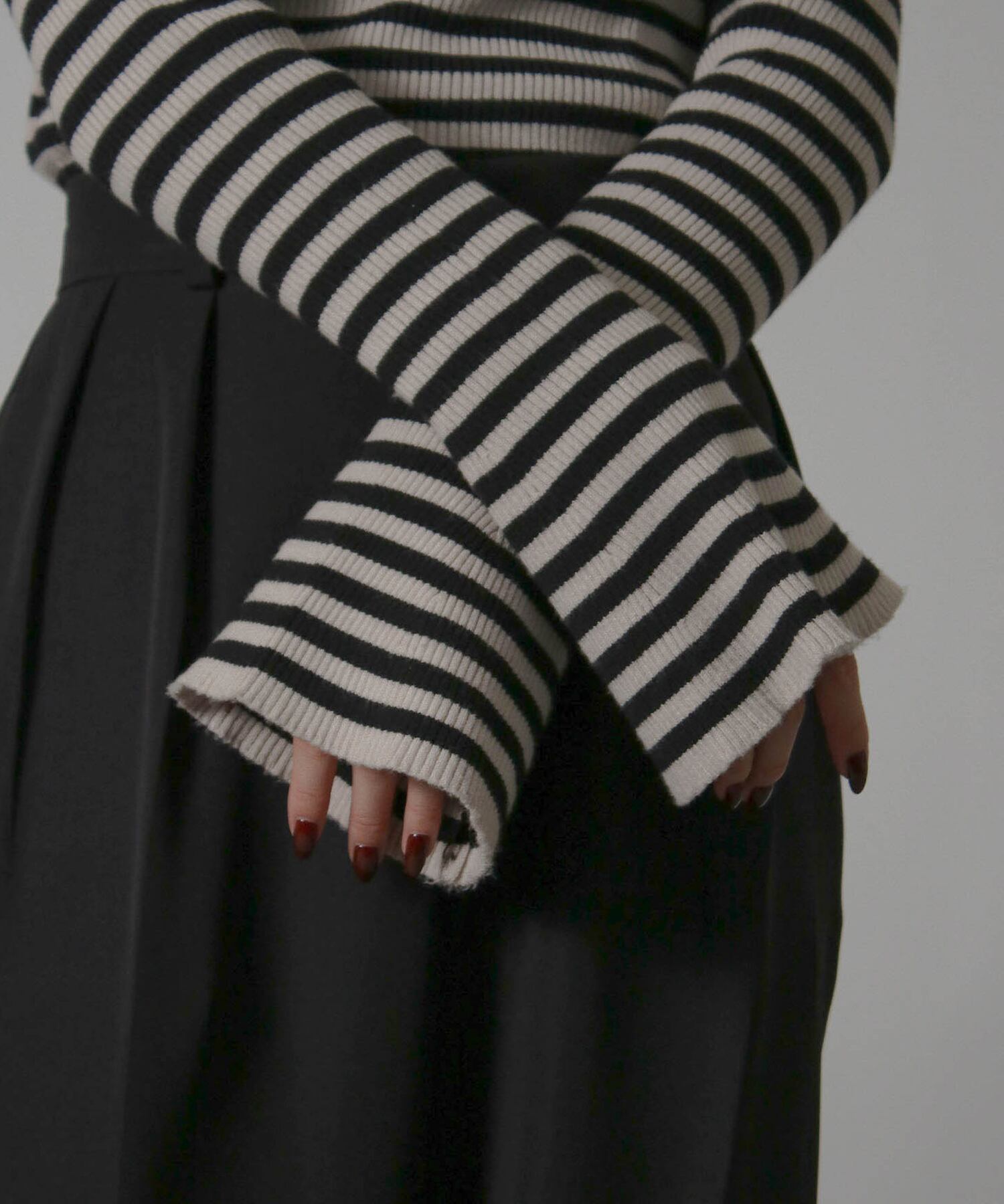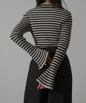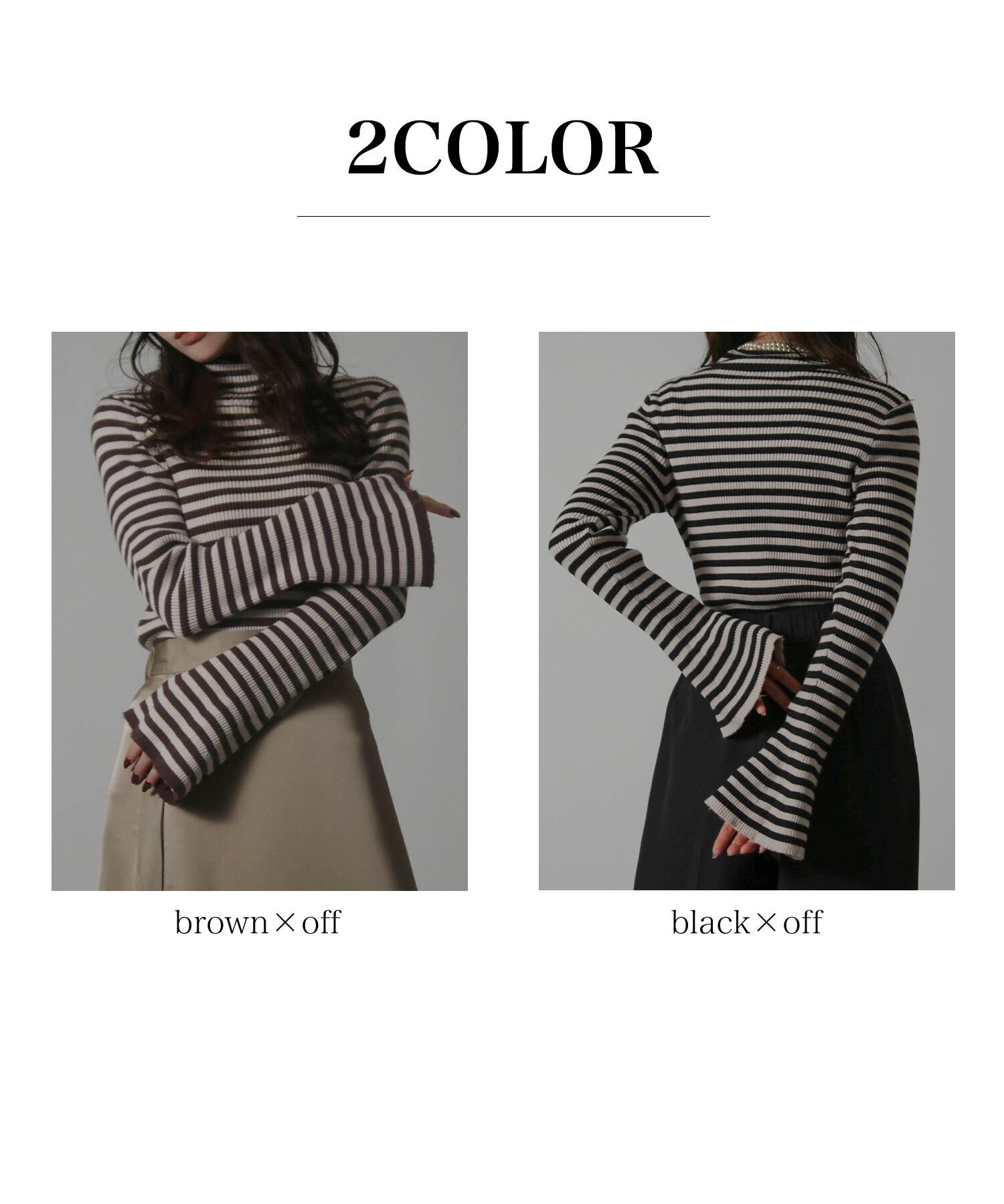 レディース トップス ニット ボーダー セーター ハイネック ベルスリーブ フレアスリーブ 袖フレア リブ ストレッチ性 伸縮性 長袖 インナー 秋冬秋服冬服