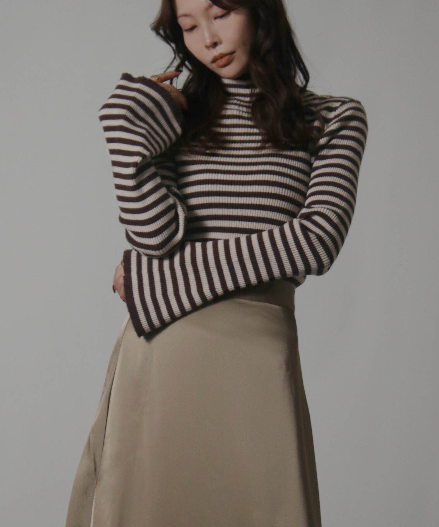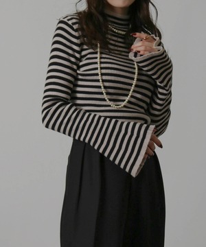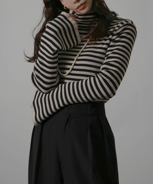 ハイネックボーダーニット