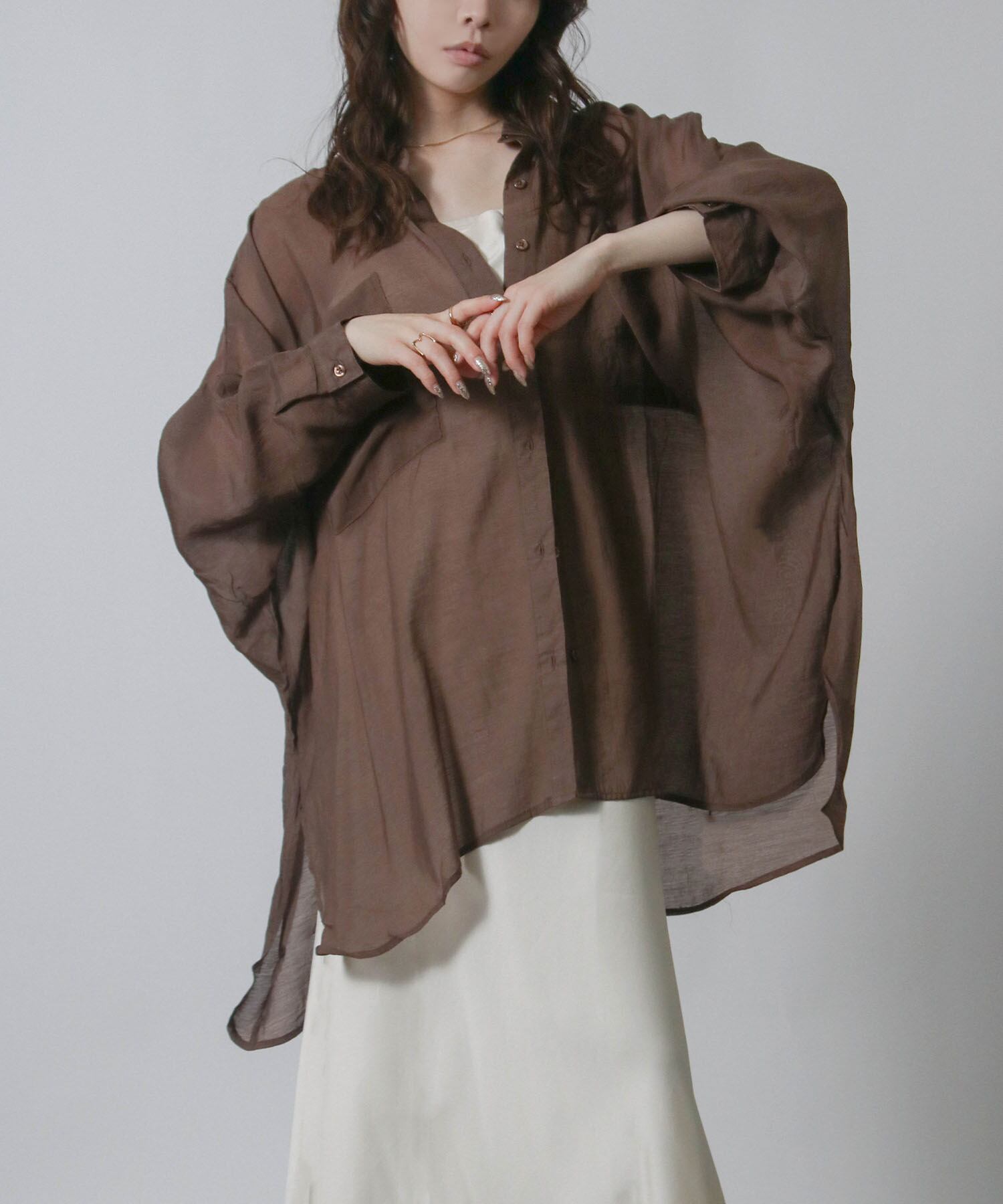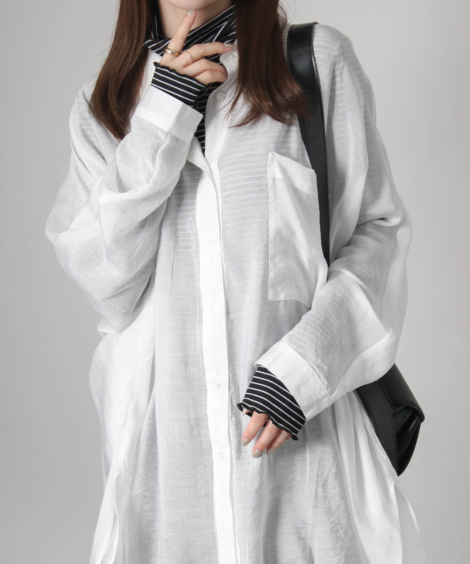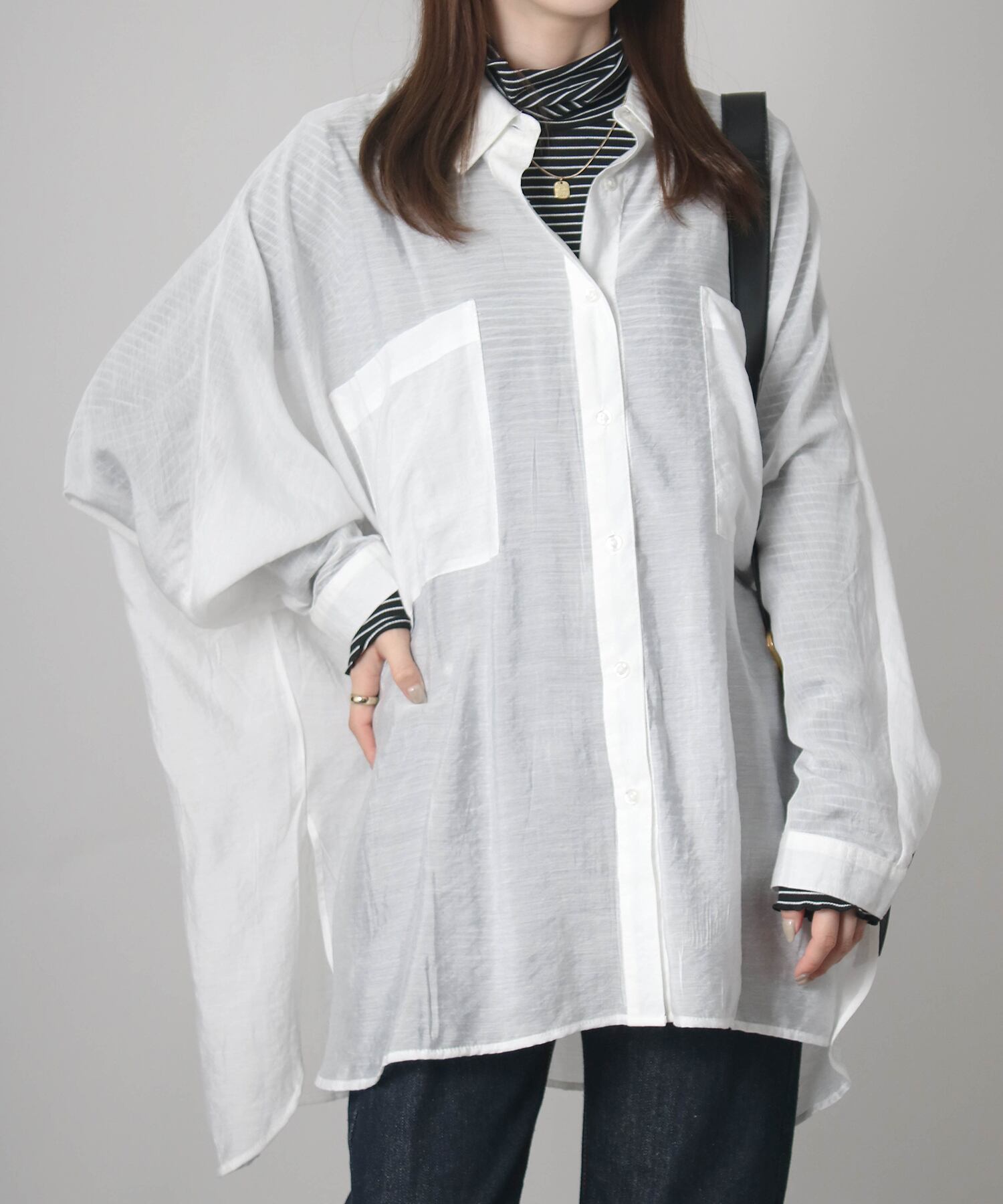 ・ほのかな透け感と余裕のある身幅がこなれた着こなしになる大人のシアーシャツです。