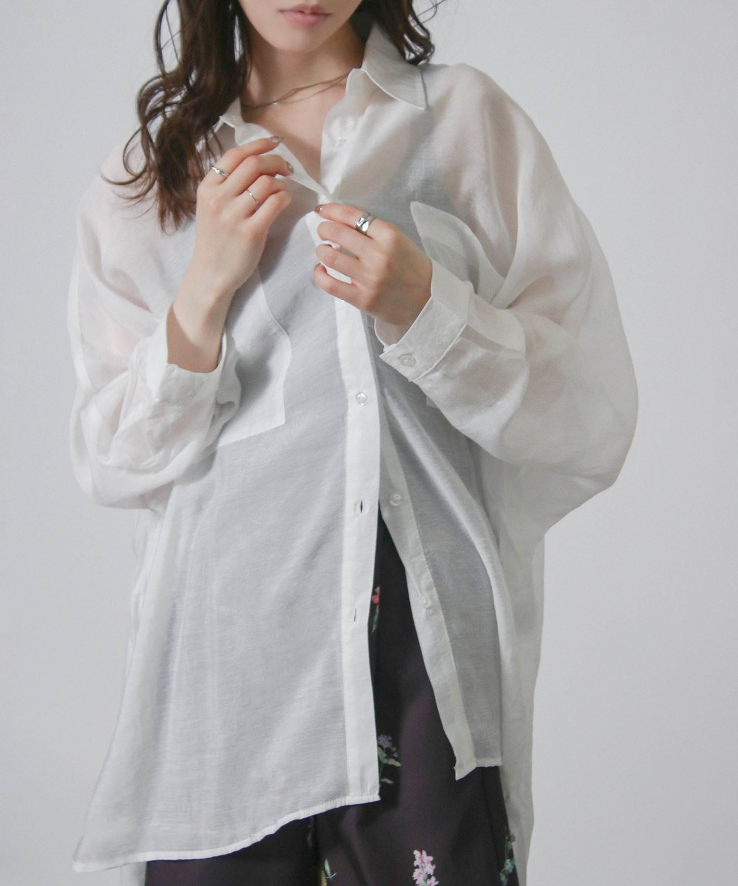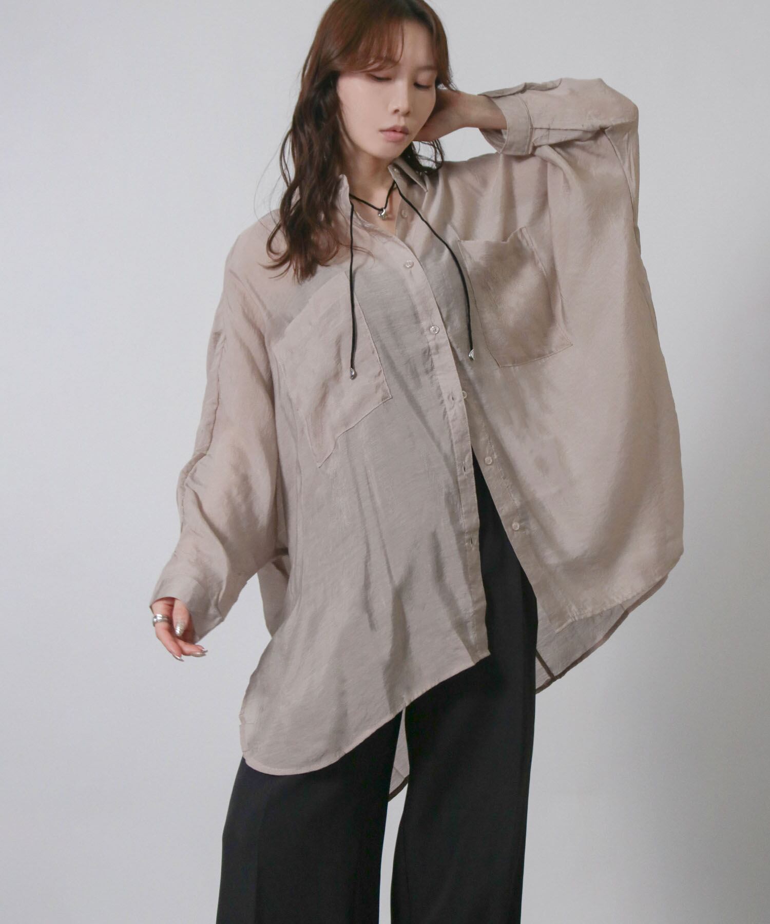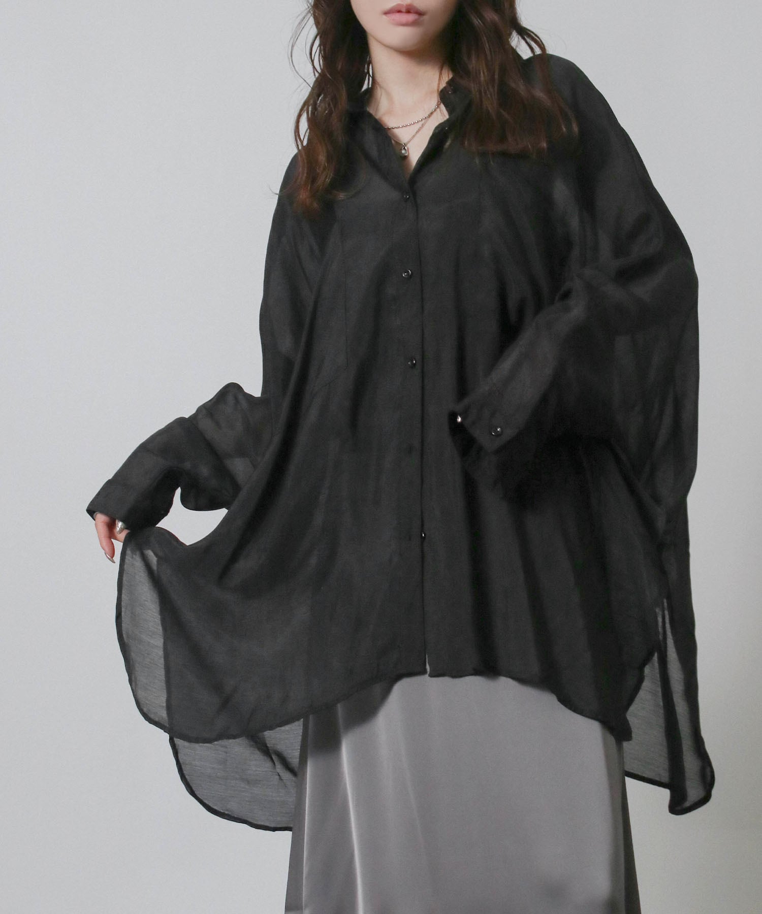 ・ほのかな透け感と余裕のある身幅がこなれた着こなしになる大人のシアーシャツです。