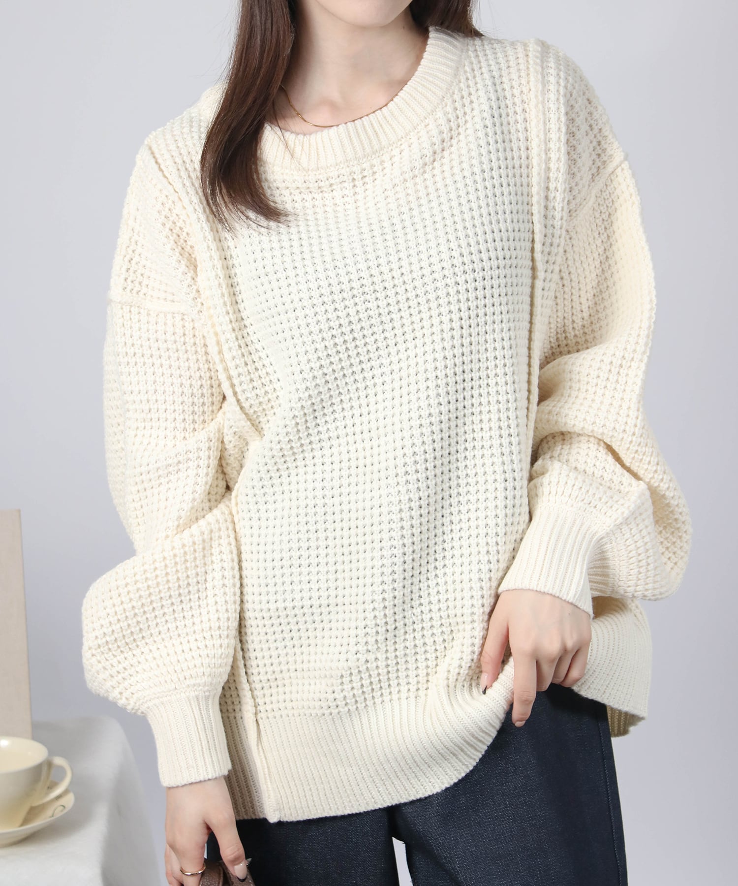 ワッフル編みニットトップス