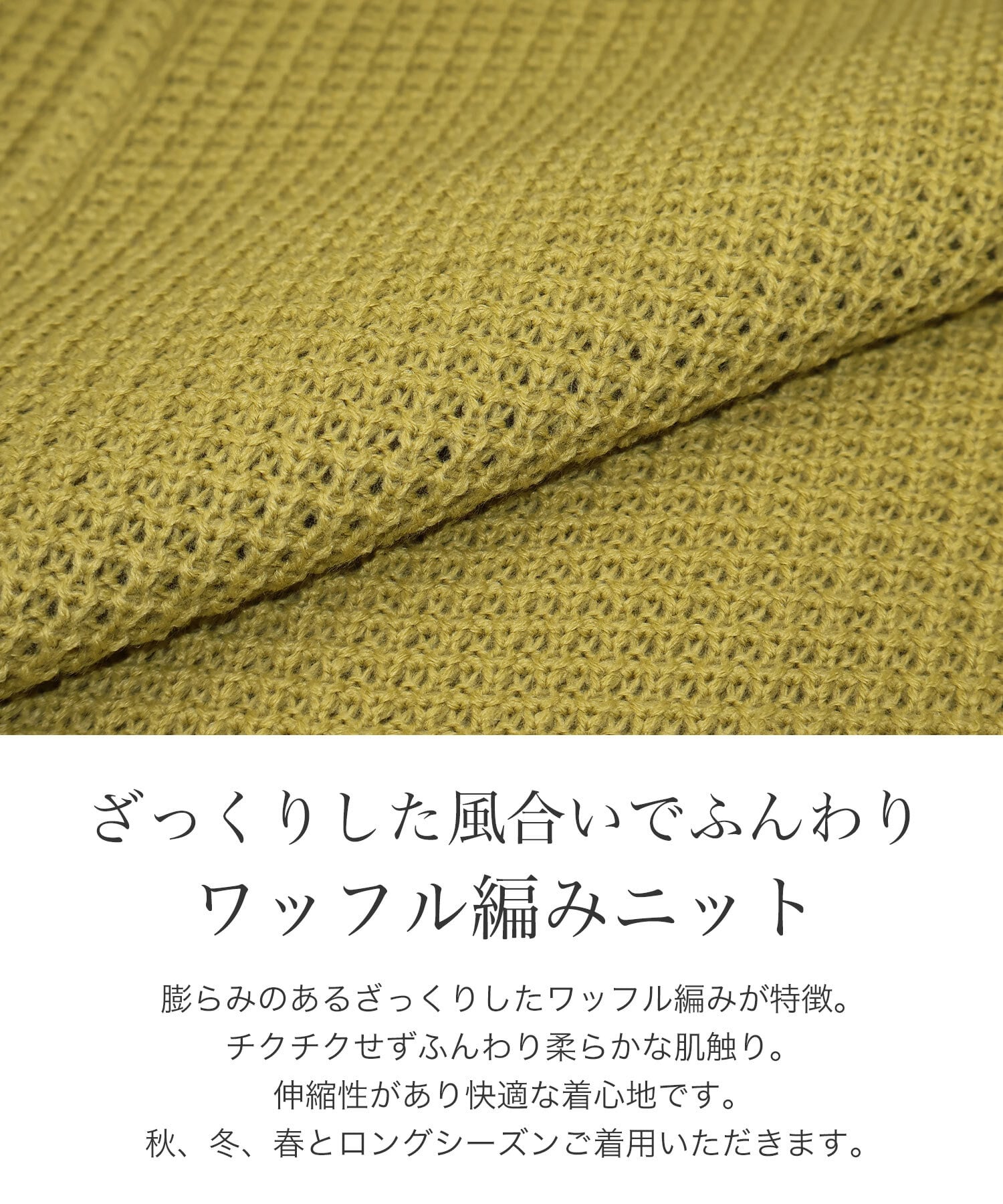 膨らみのあるざっくりしたワッフル編みが特徴。
