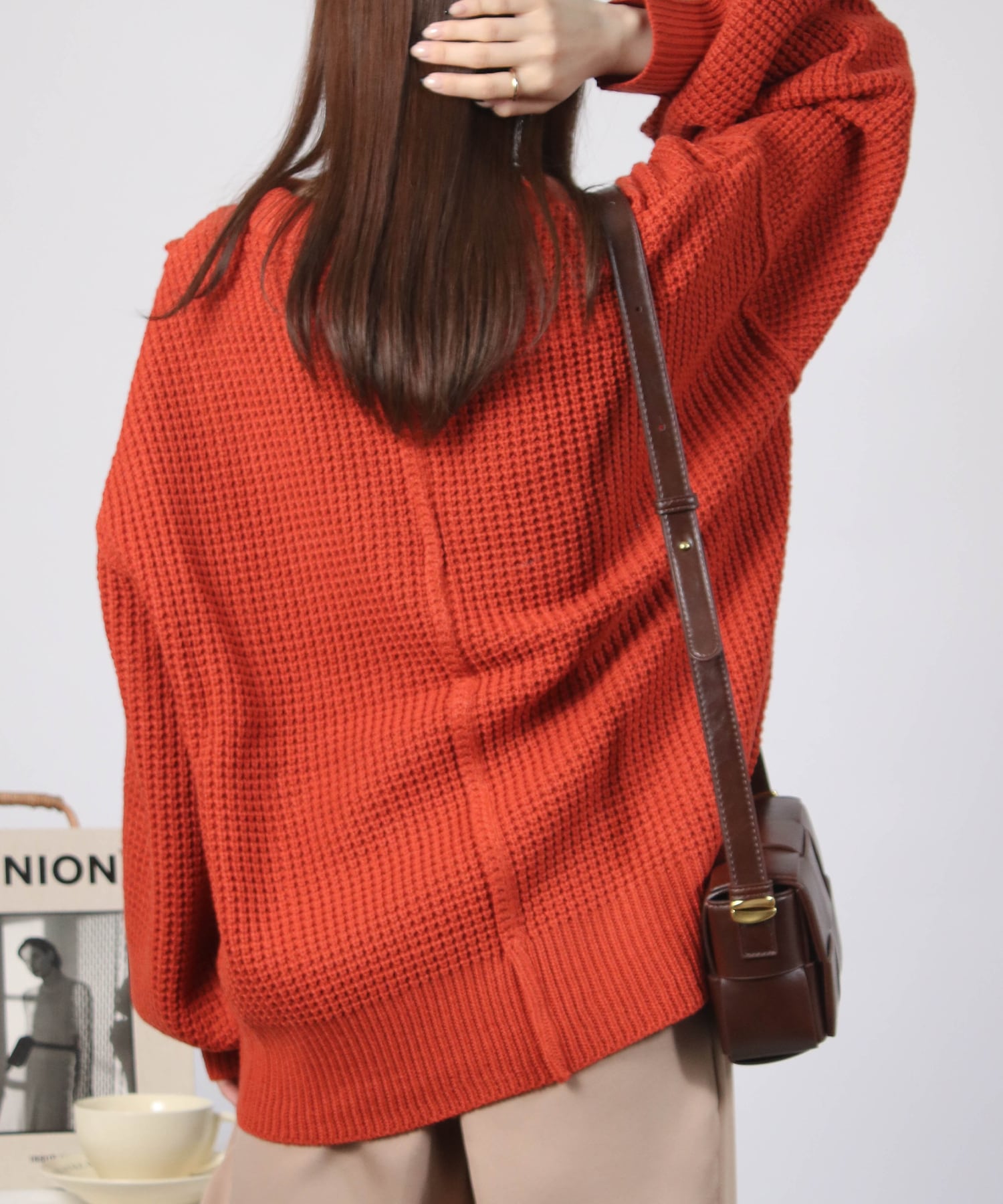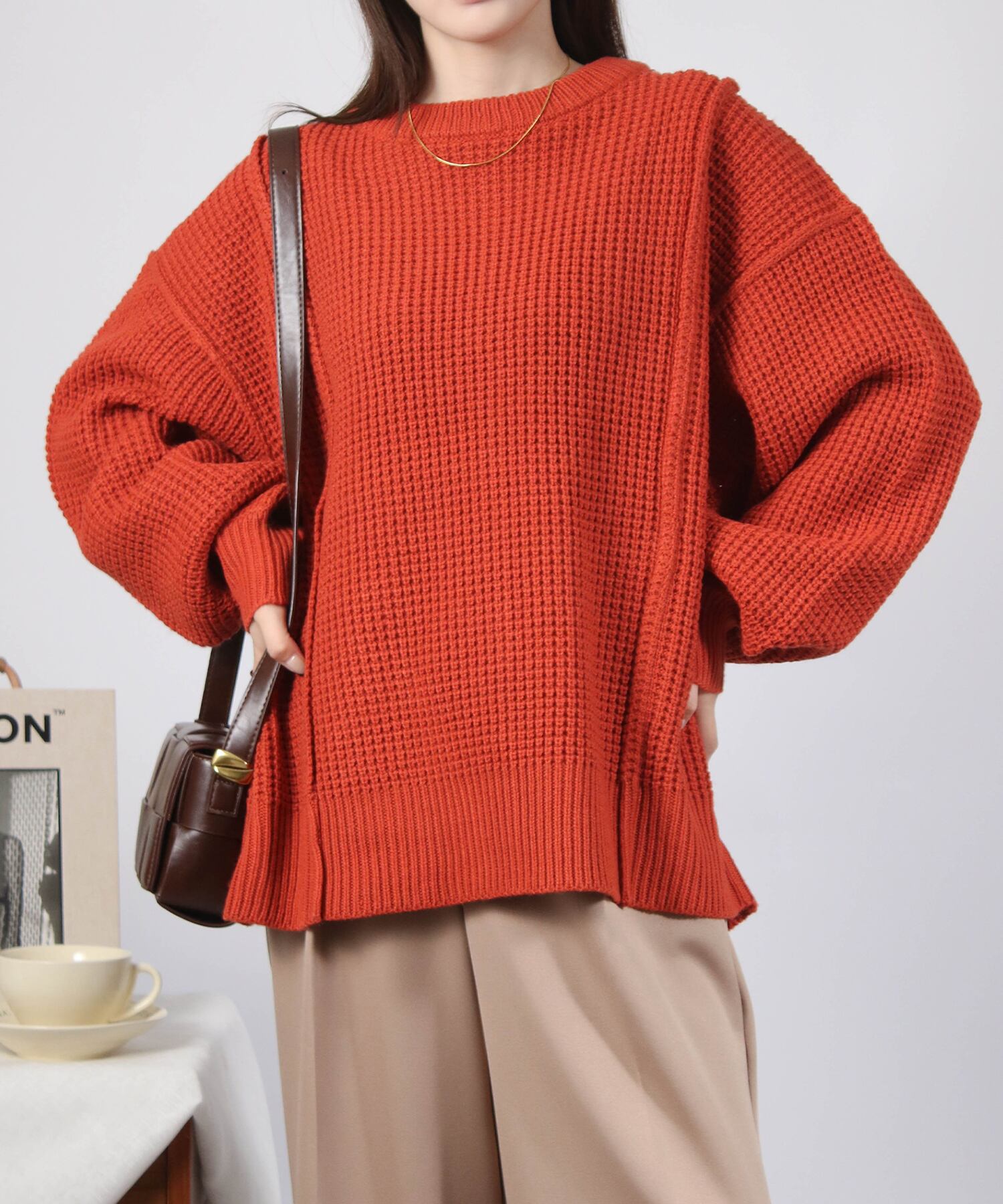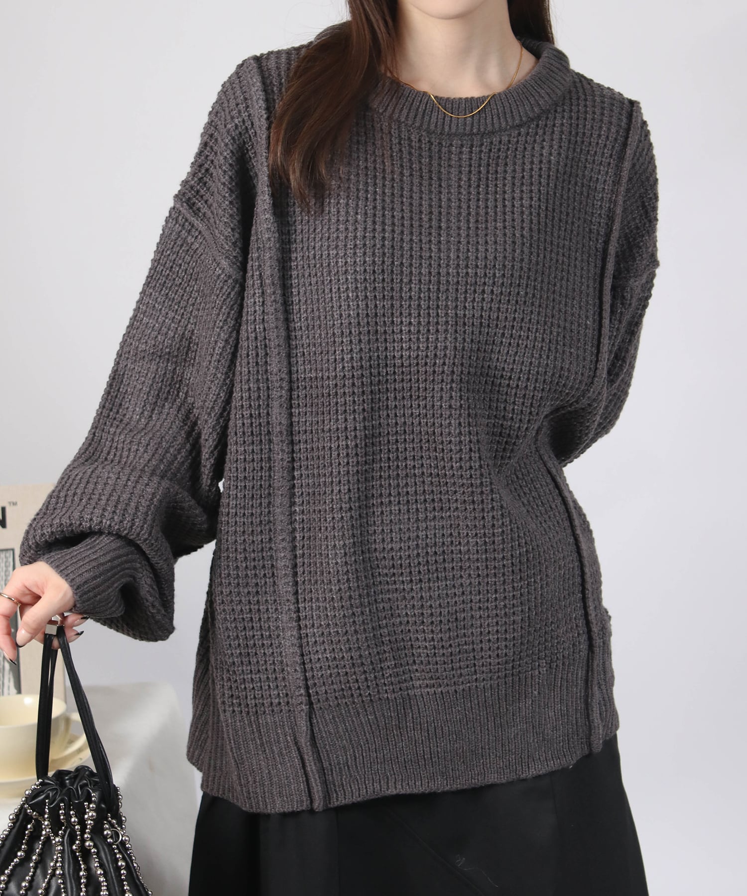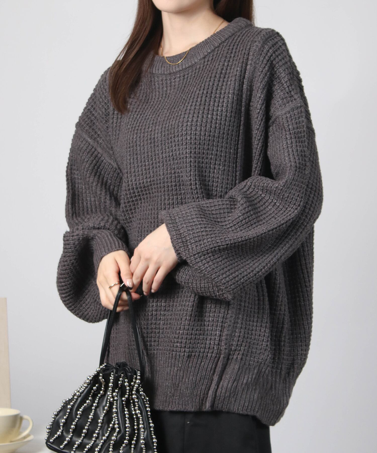 ・立体的なワッフル編みがこなれ見えするニット。