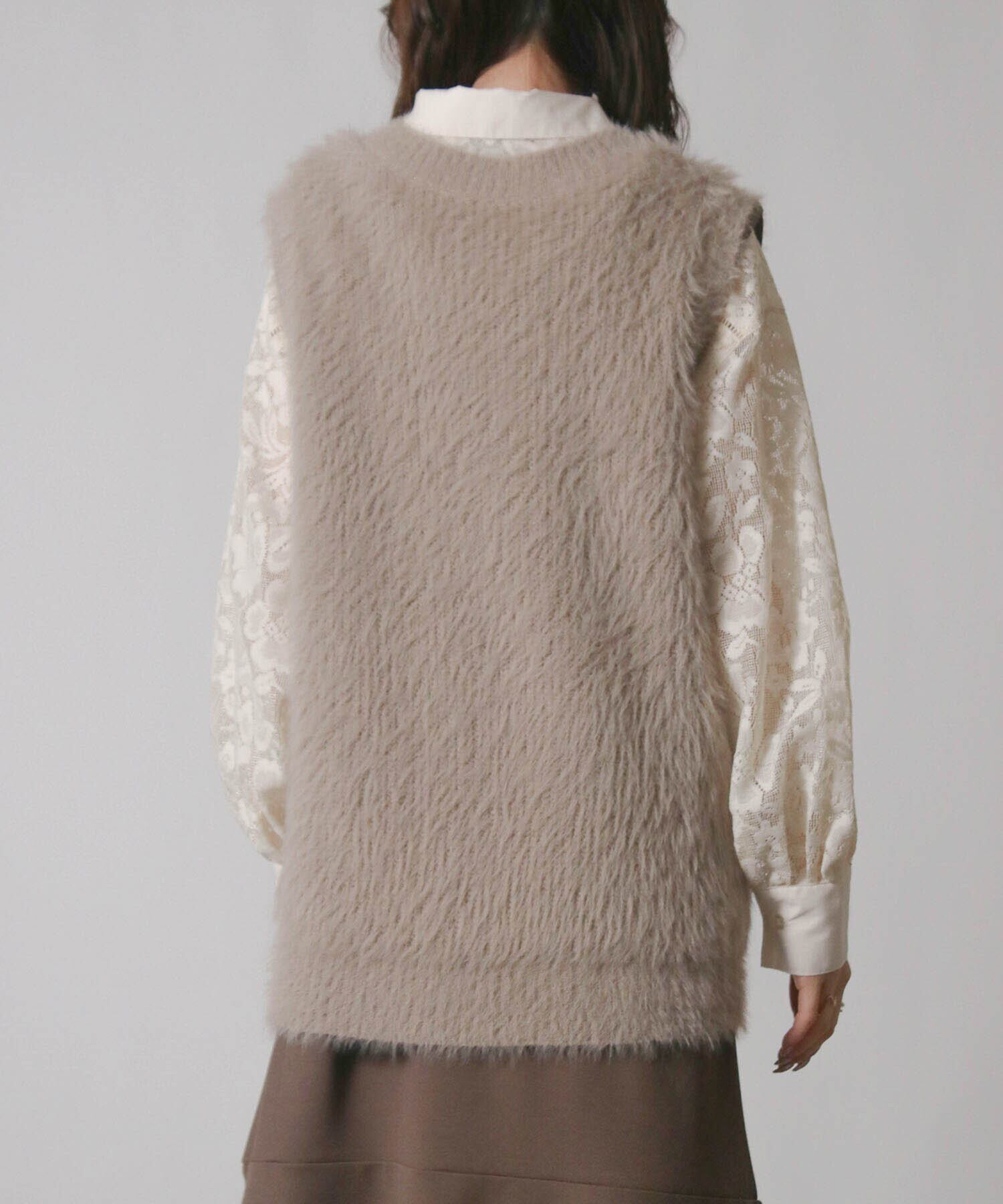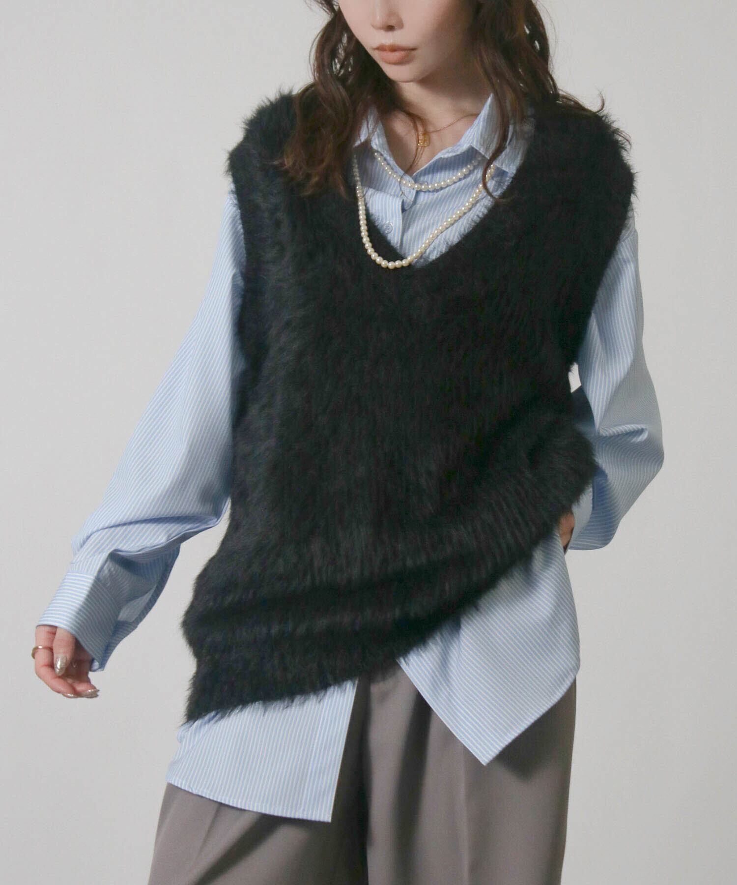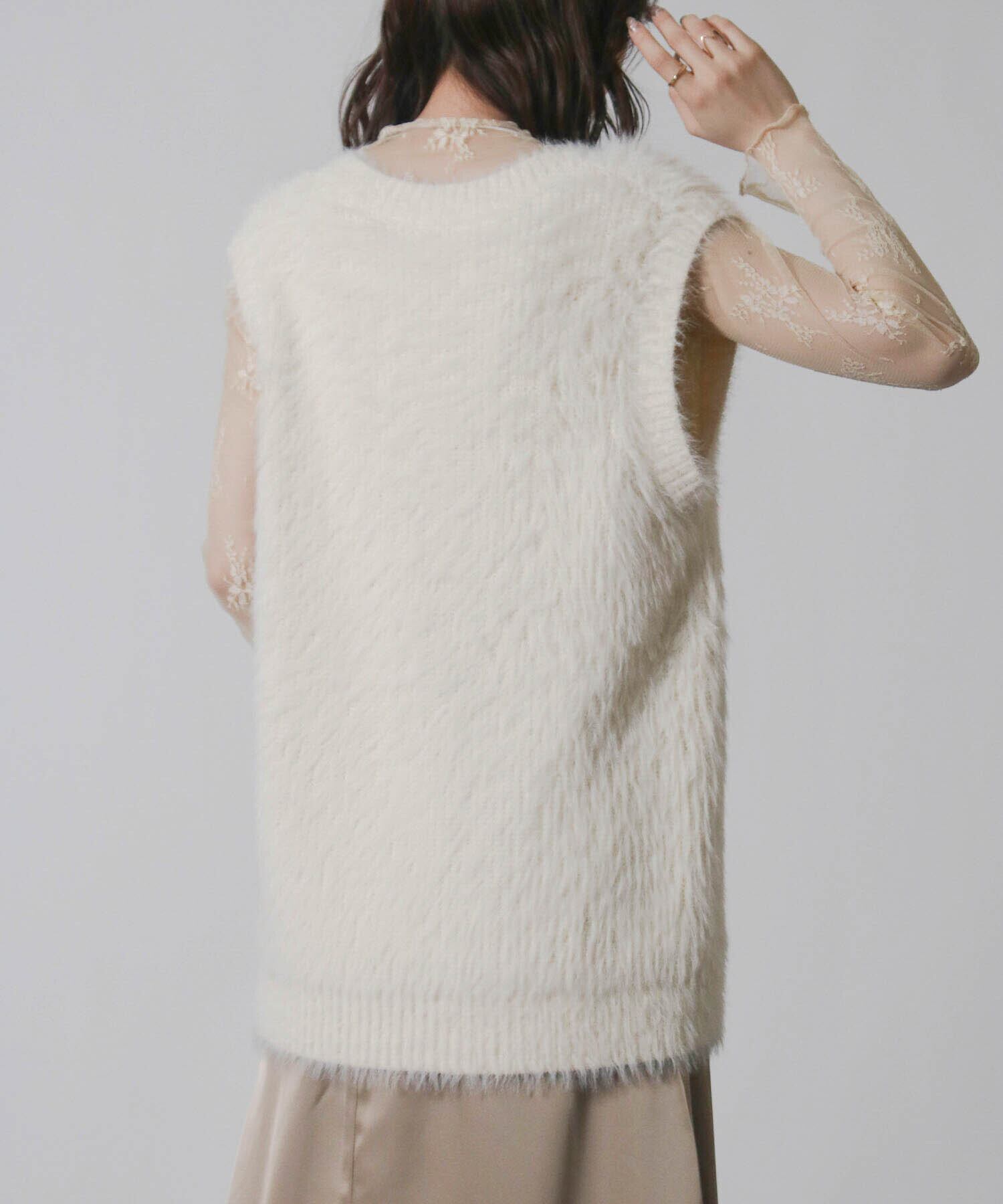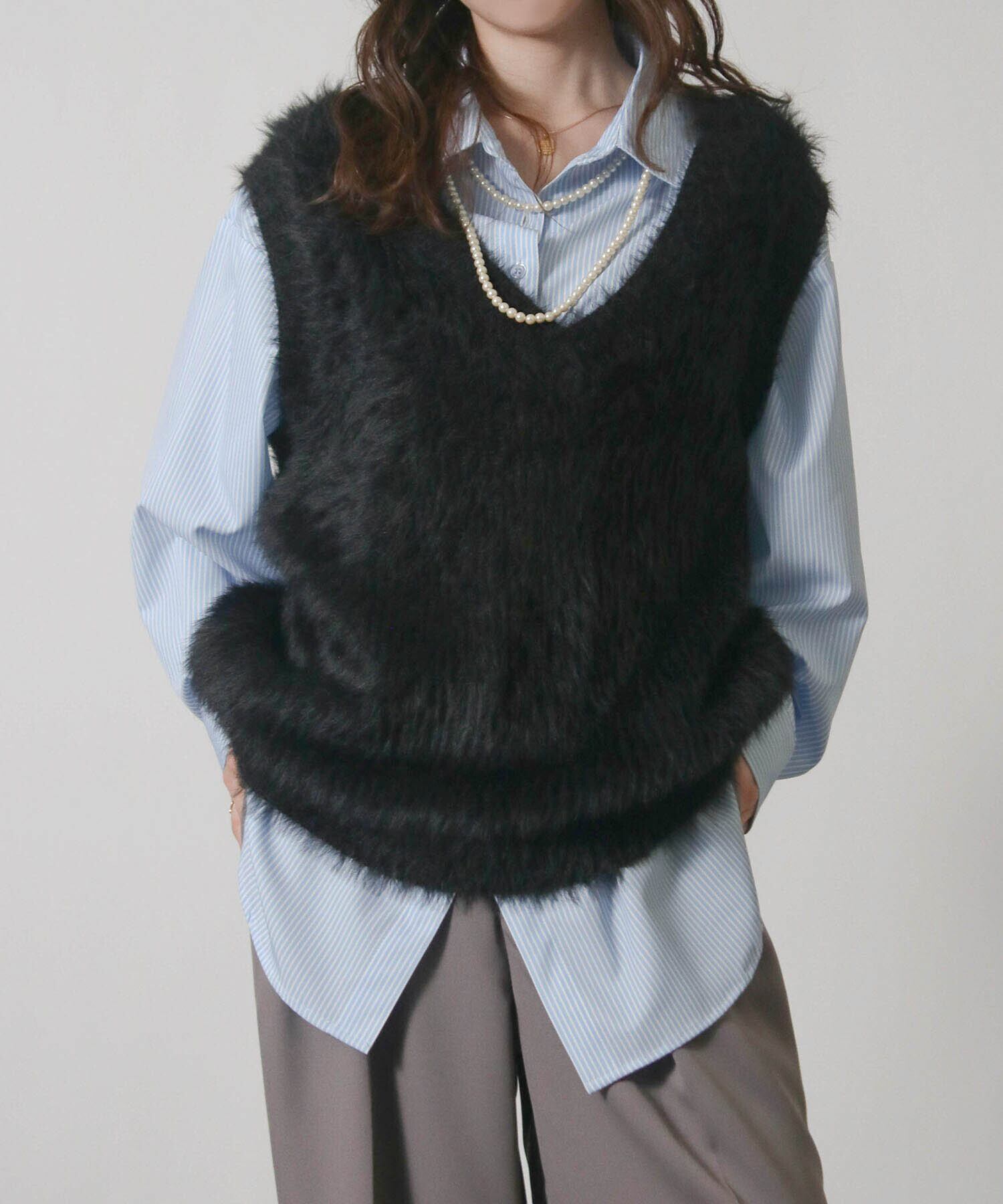 ・毛足の長い素材がトレンド感を演出するニットベスト。