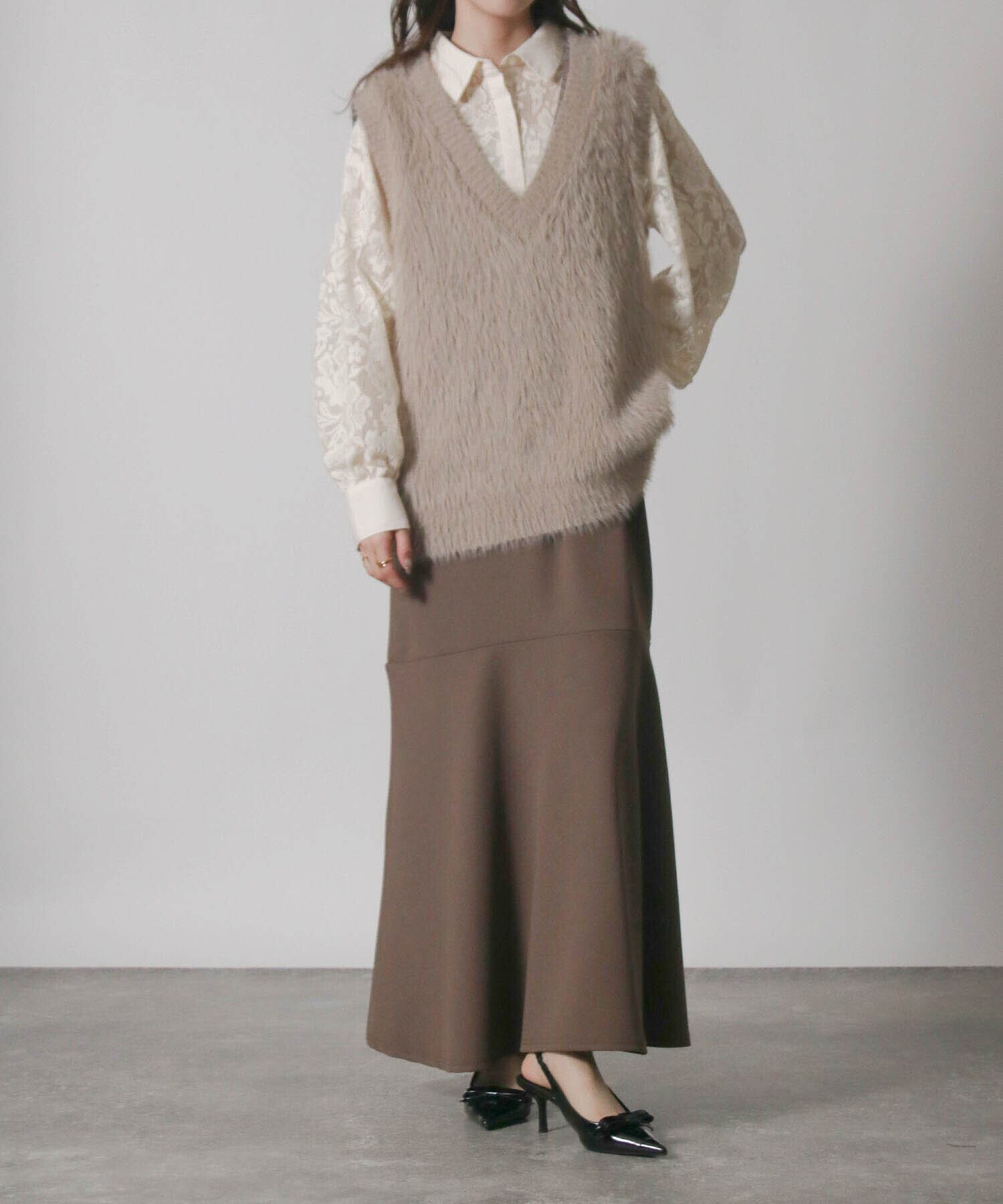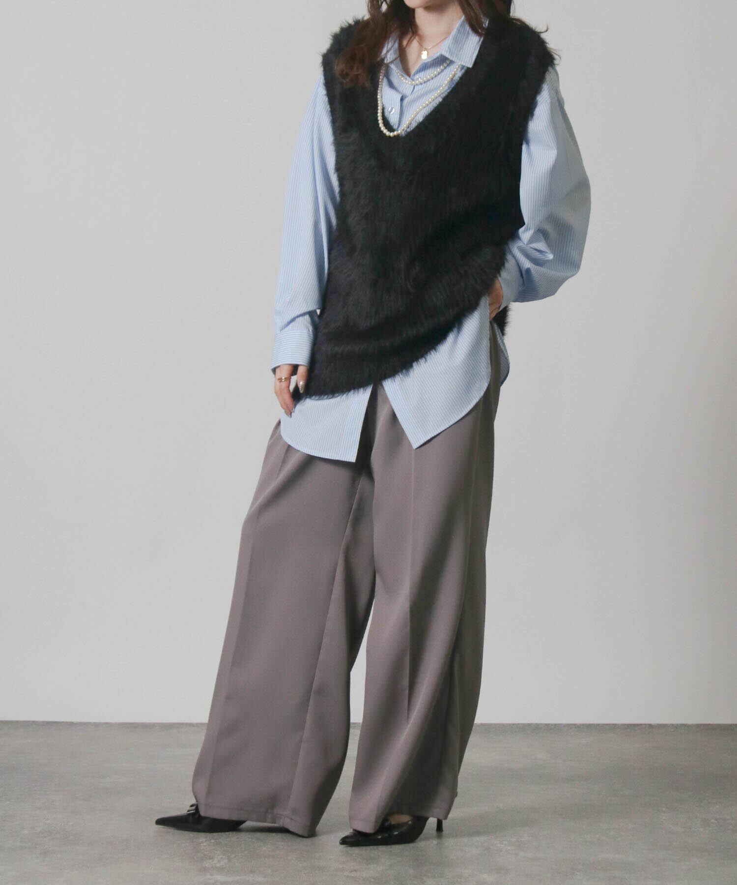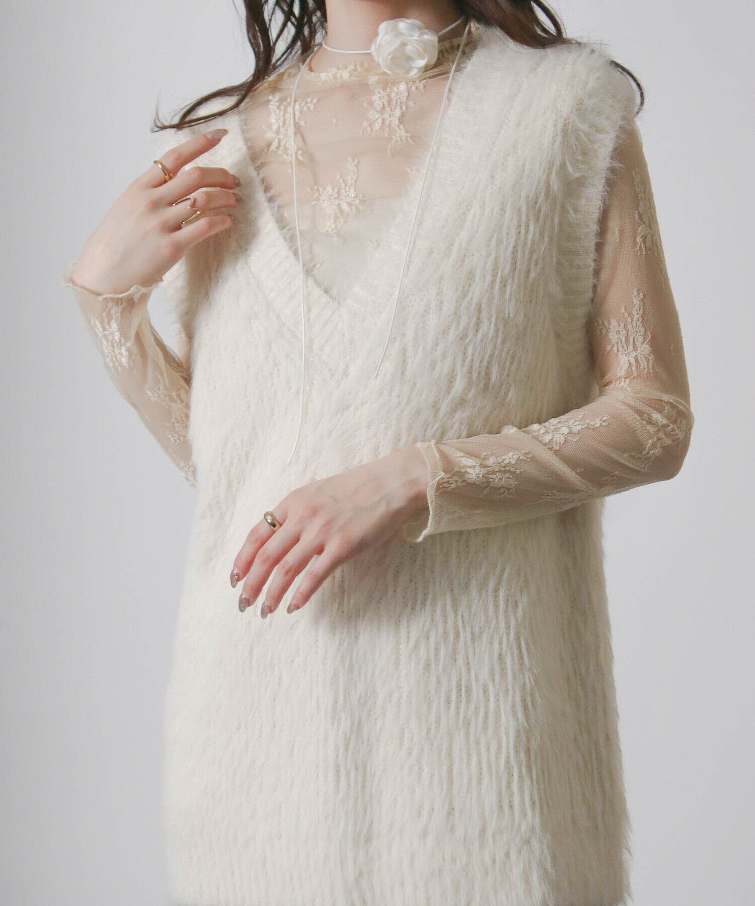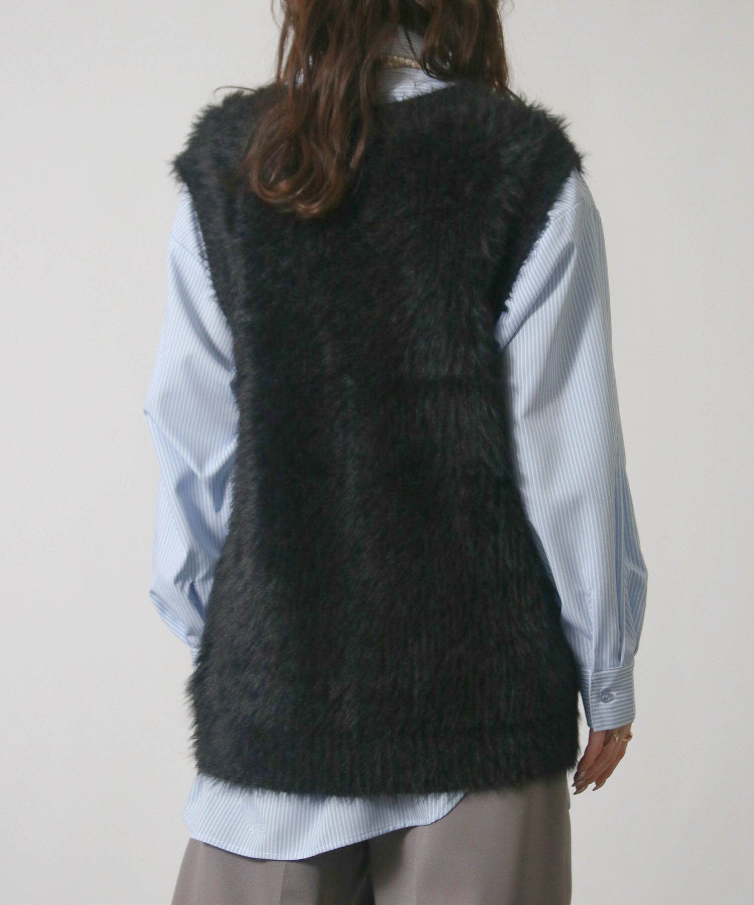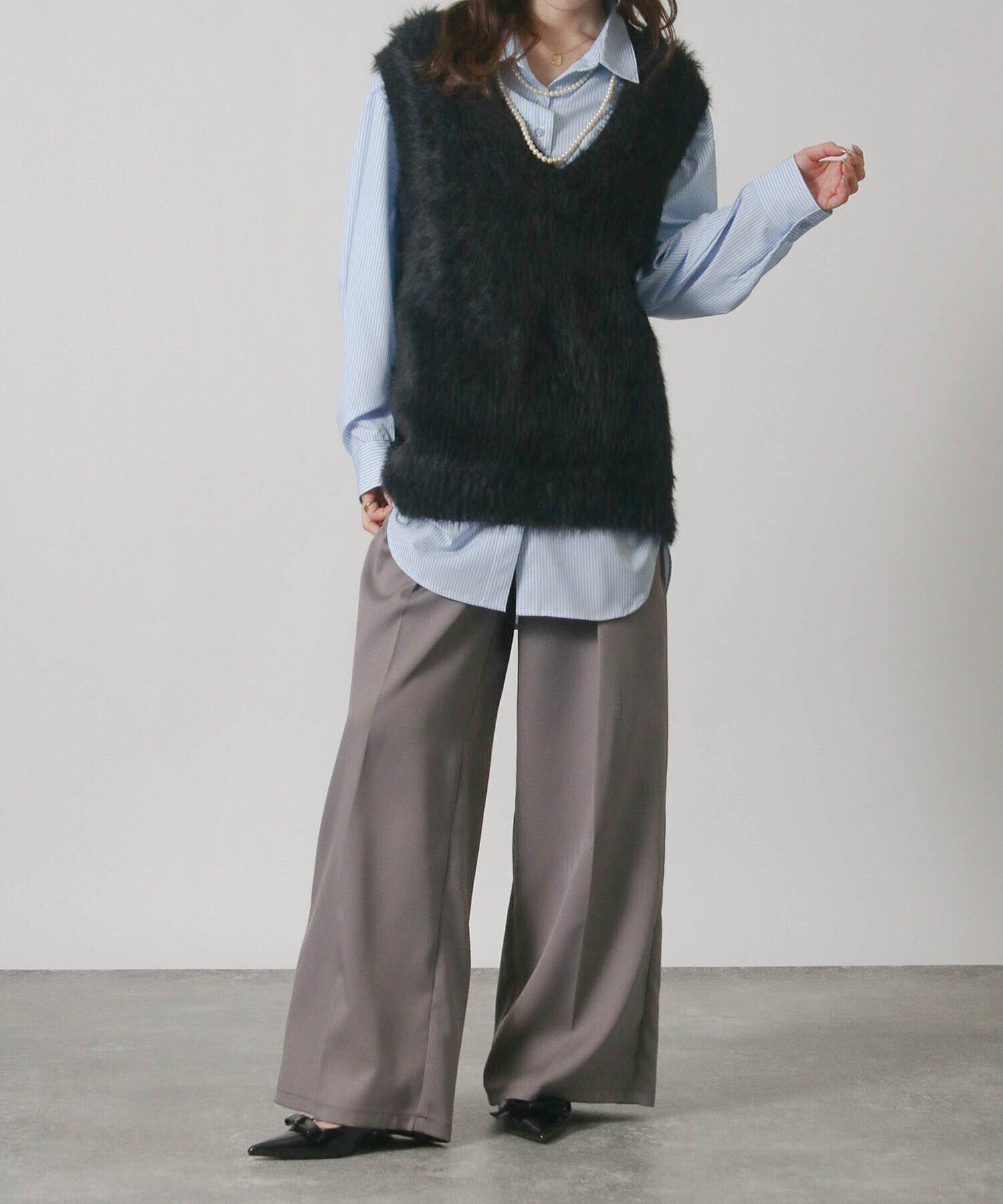 ・毛足の長い素材がトレンド感を演出するニットベスト。