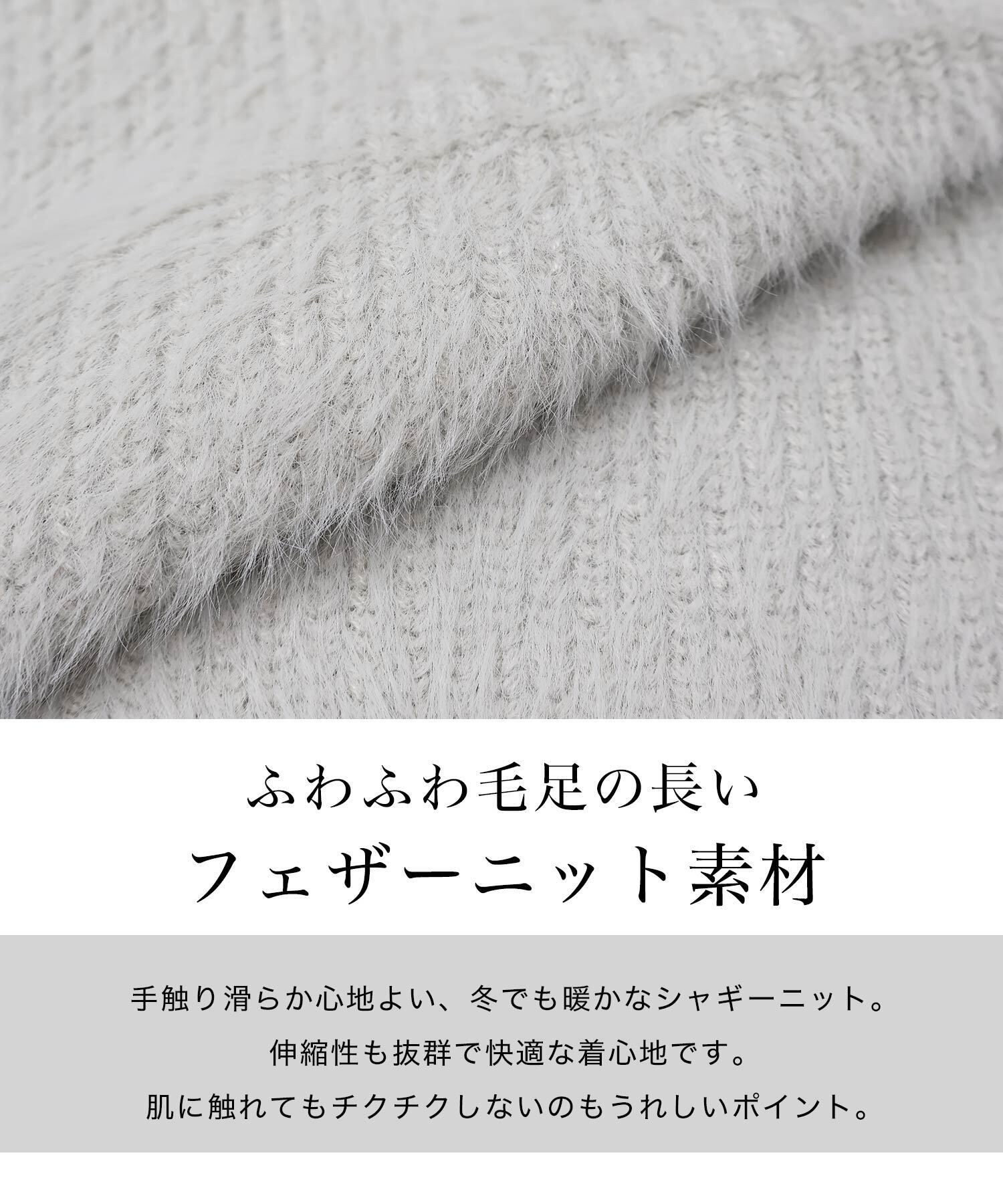 ふわふわ毛足の長いフェザーニット素材。