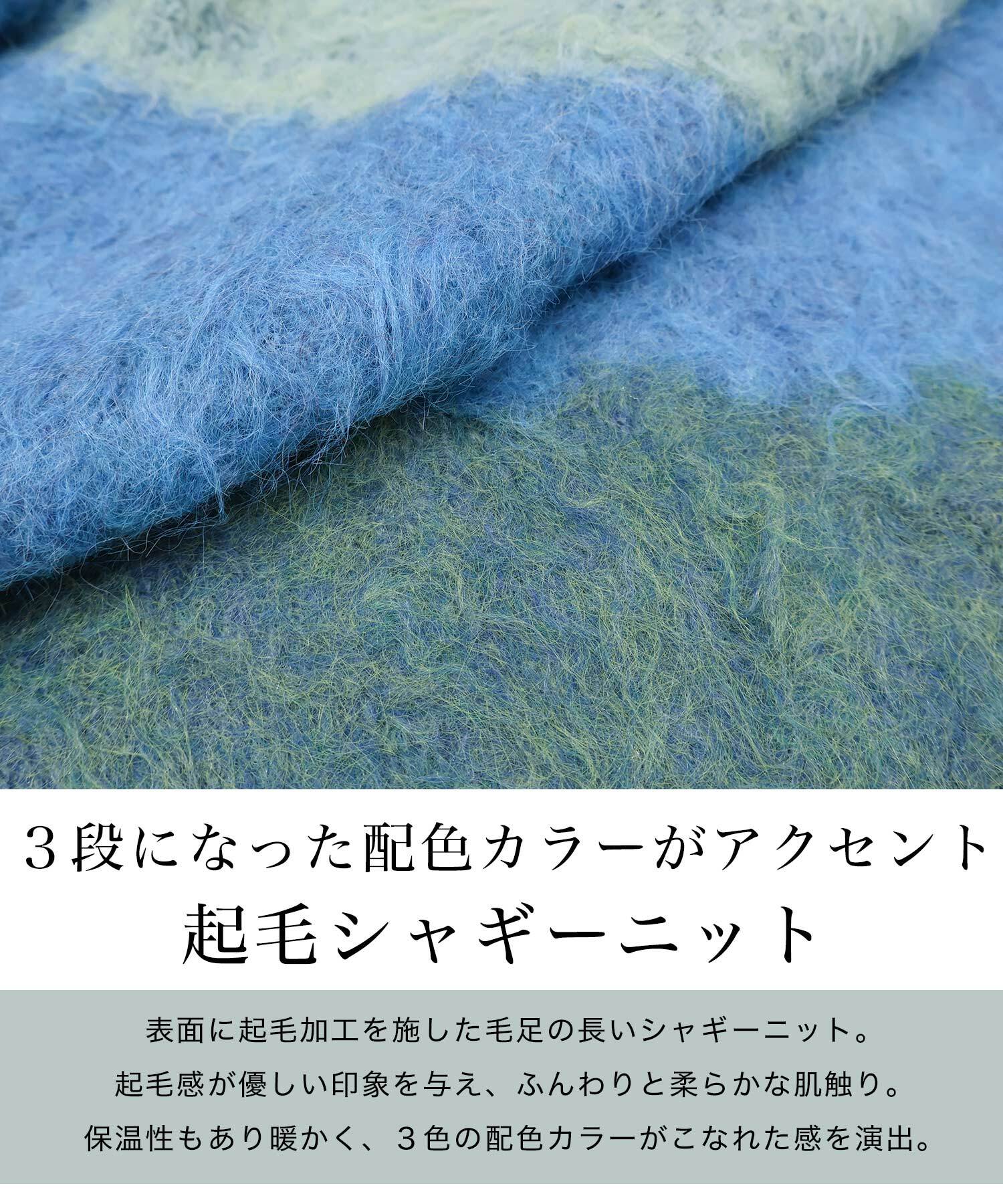 表面に起毛加工を施した毛足の長いシャギーニット。